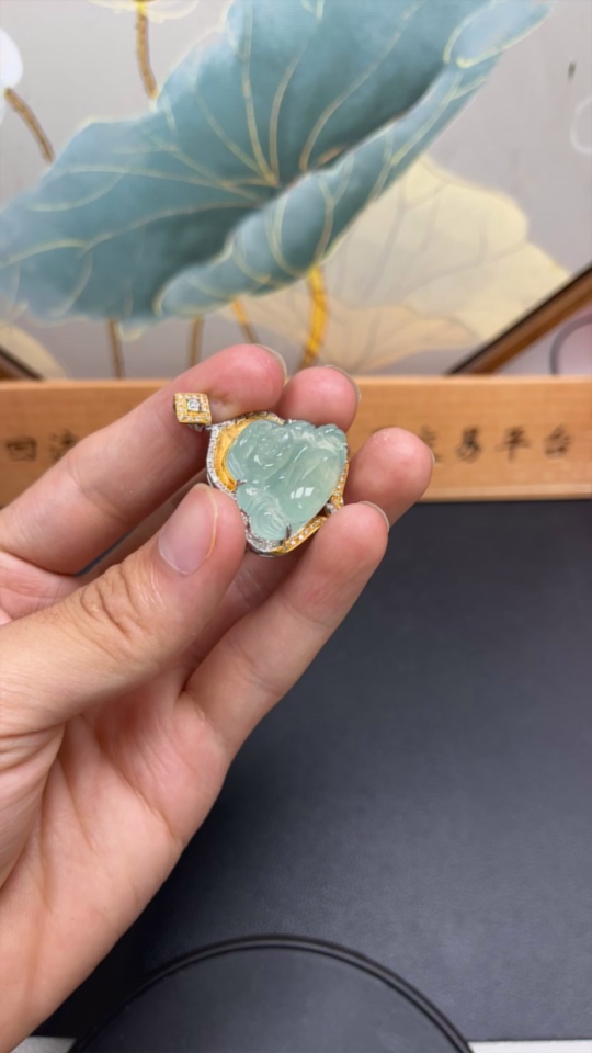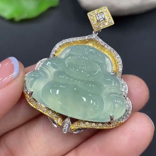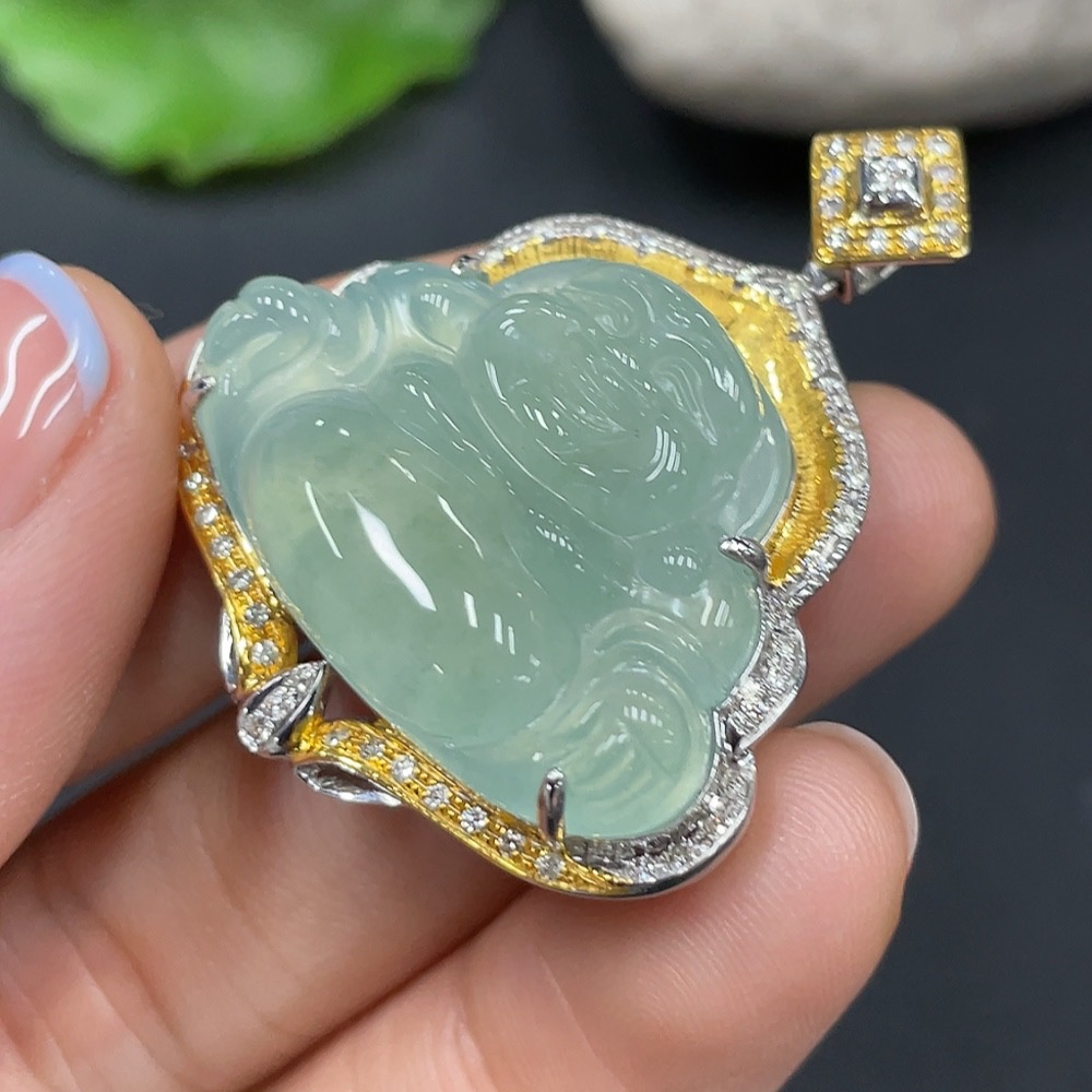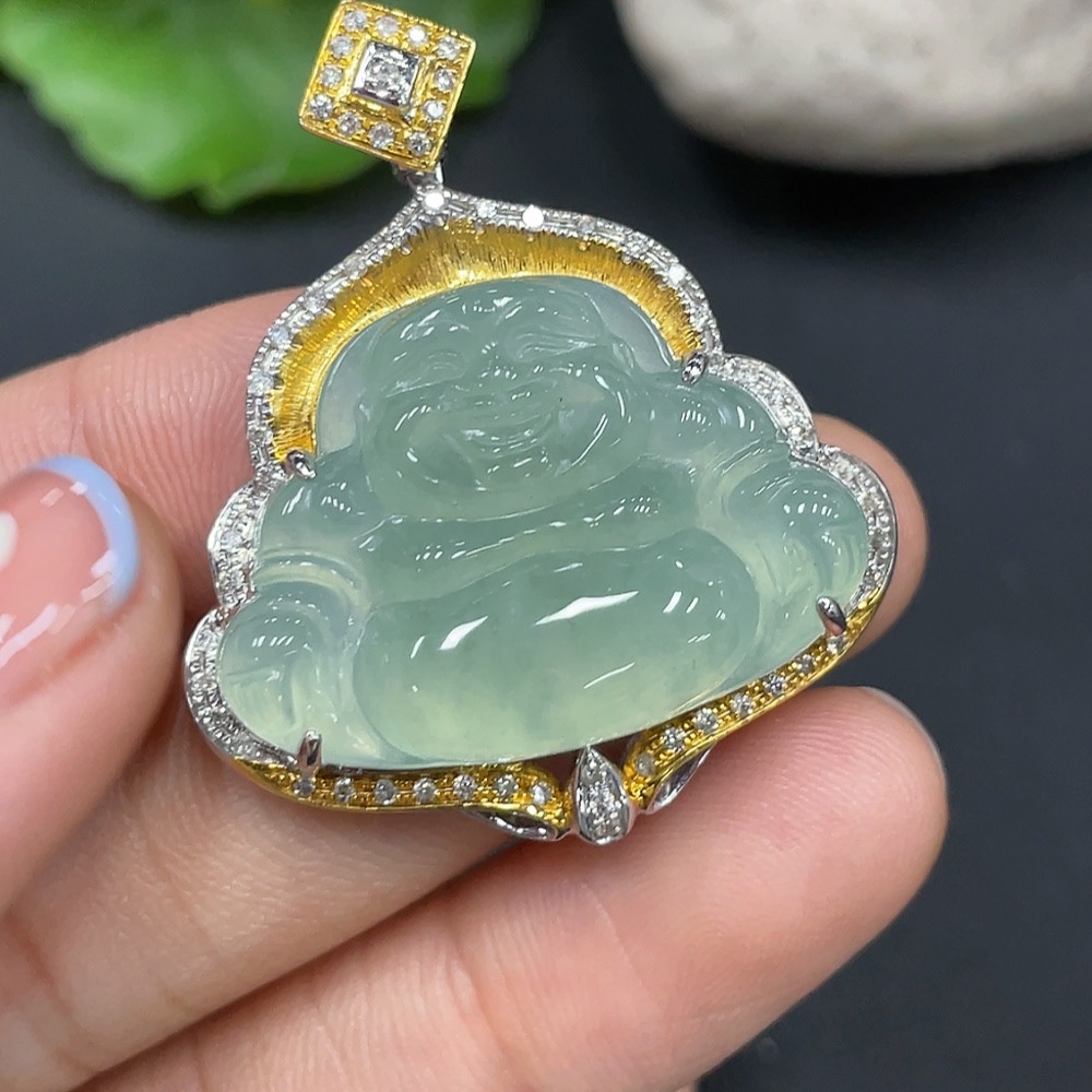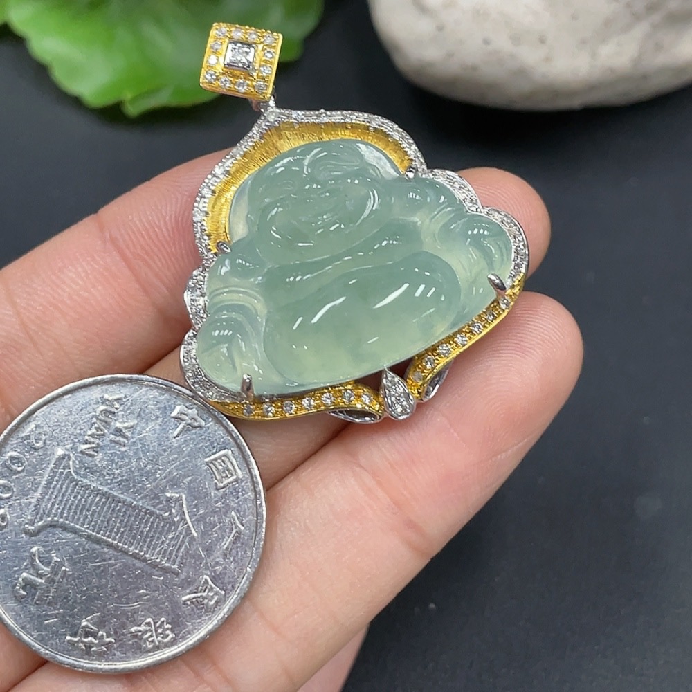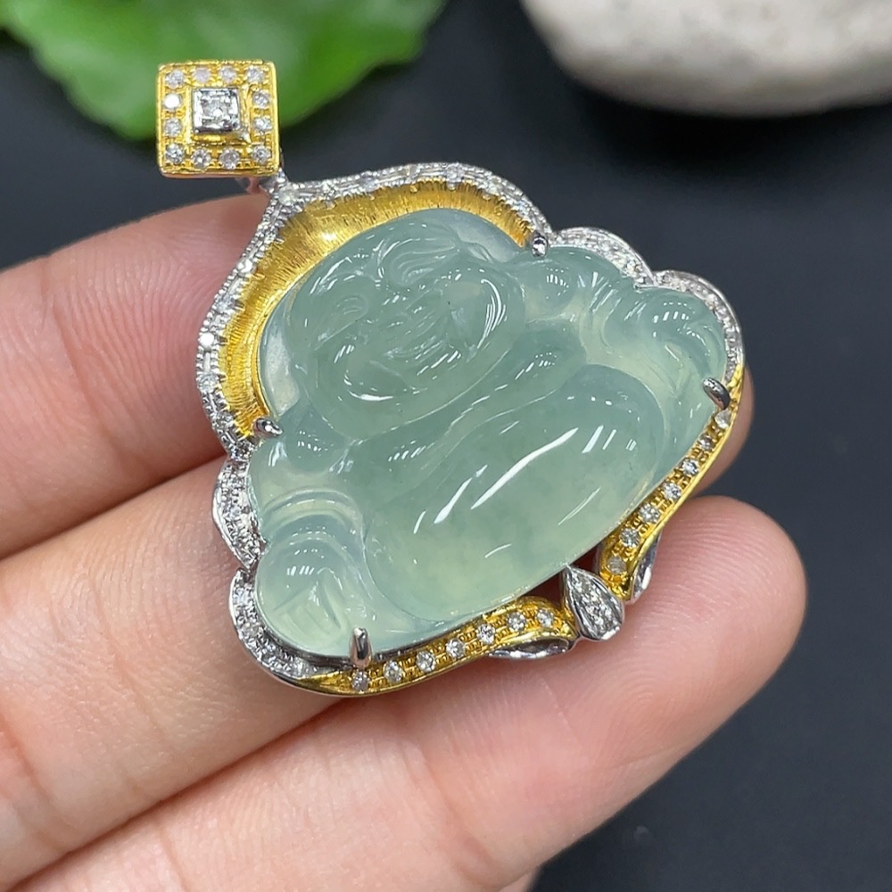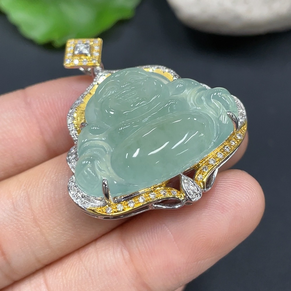 Jadeite Buddha Pendant with 18K Gold Setting, Total Weight Approx. 10.1g