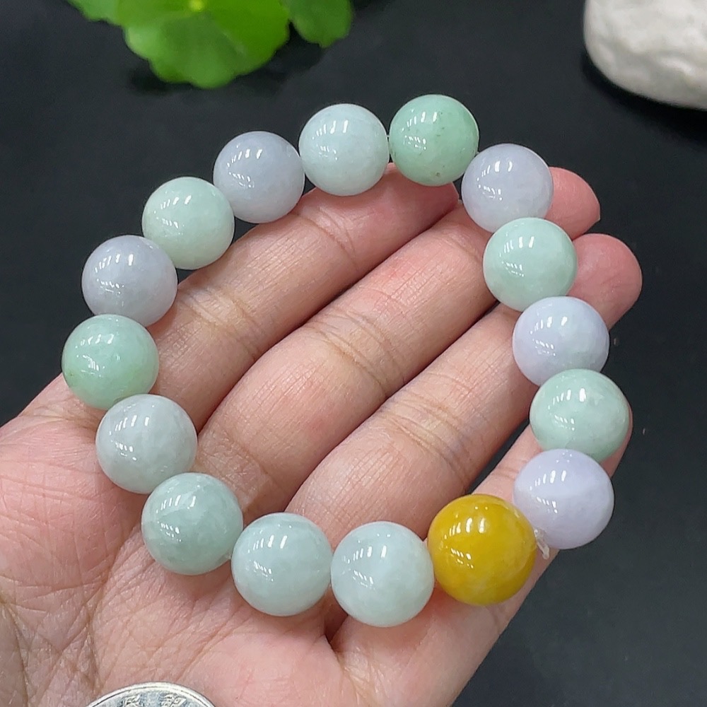 Jadeite Bracelet Size 12.4/13.2mm Yellow Bead Color Origin Undetermined Total Weight 54.223g