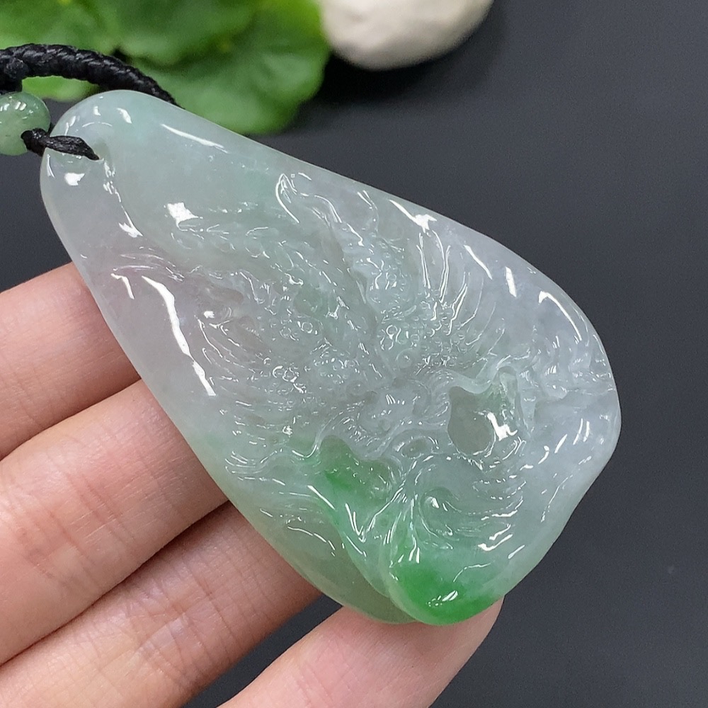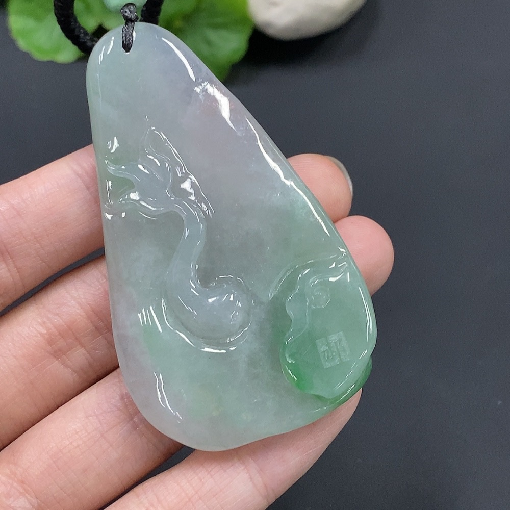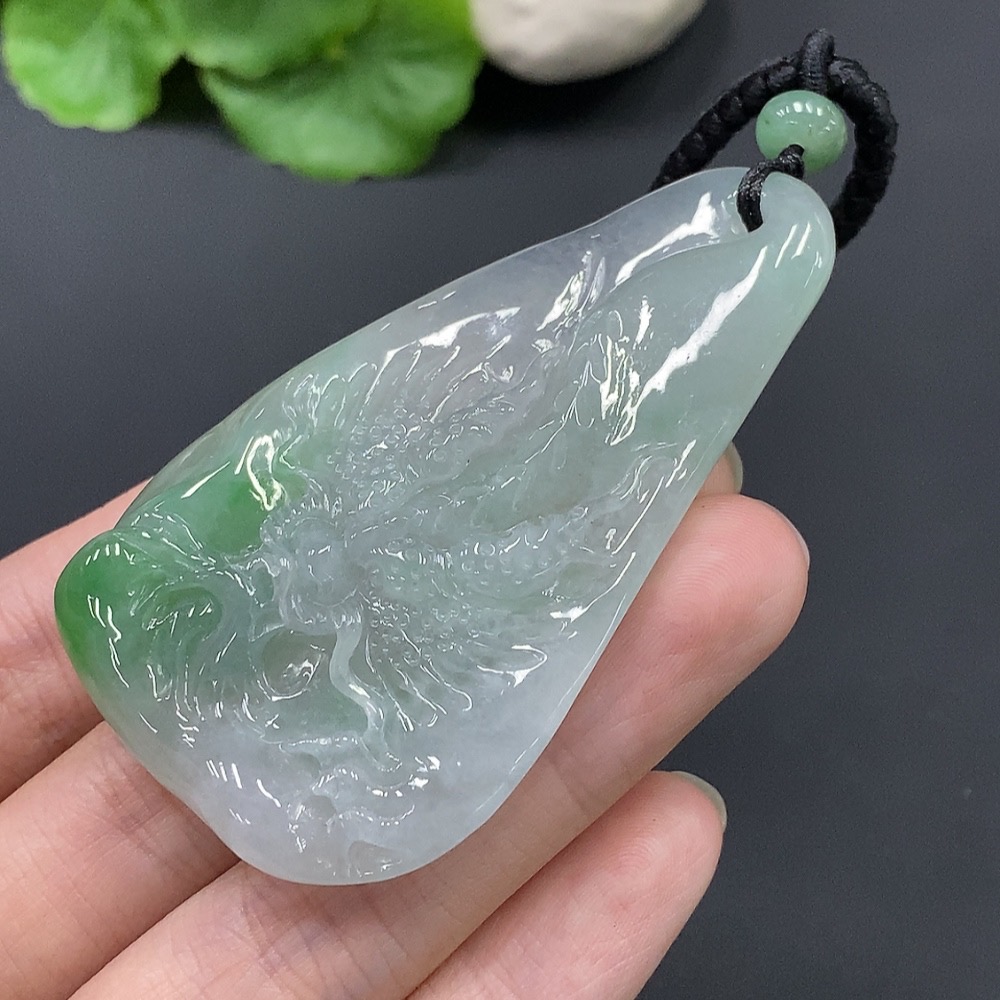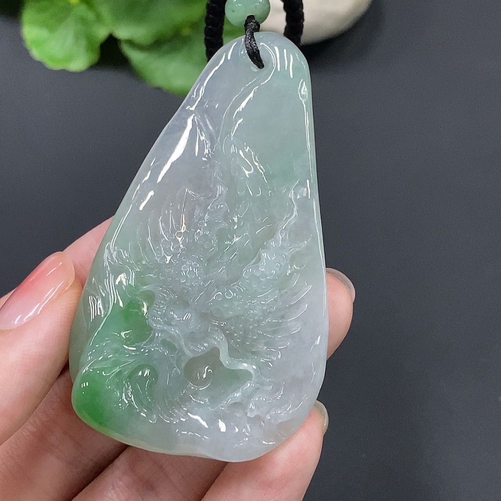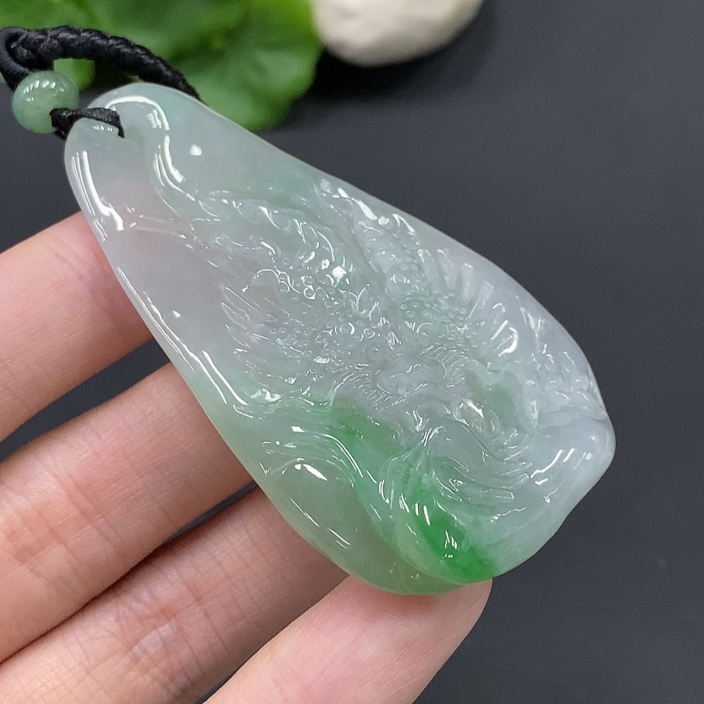 Jadeite Dragon Soaring Across the Seas Pendant Total Weight 45.490g