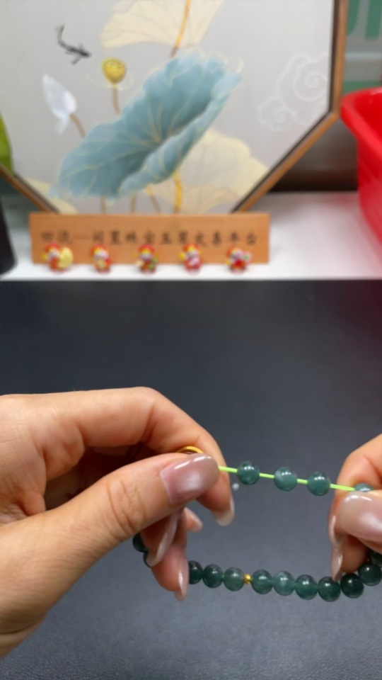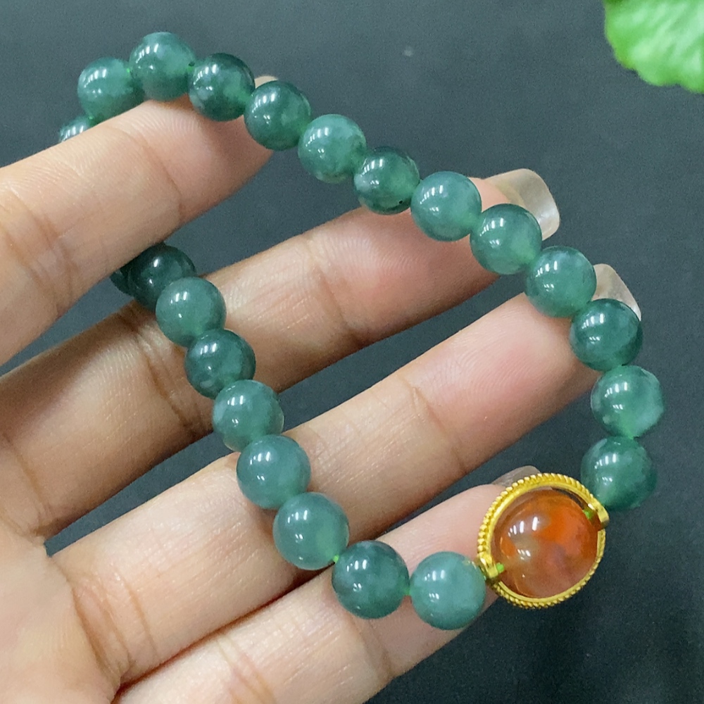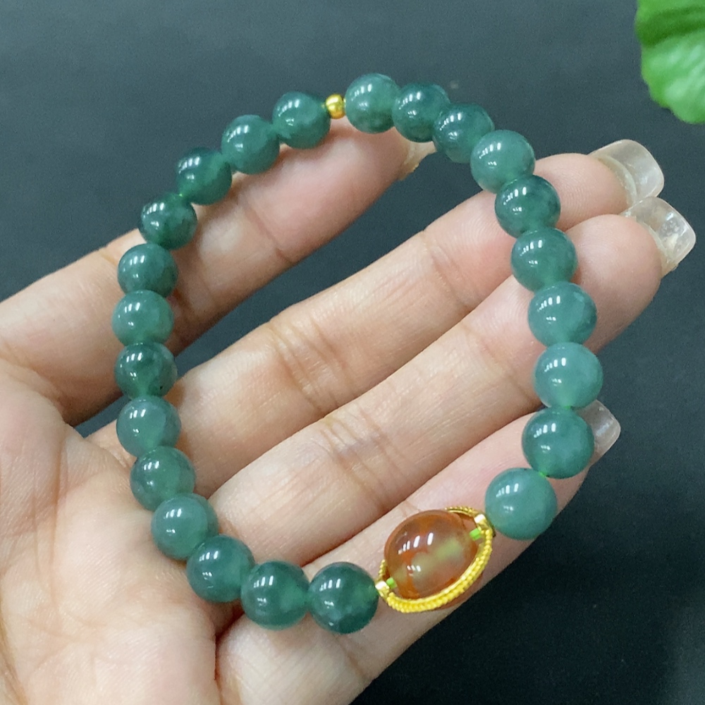 Jadeite Bracelet with approximately 7mm beads (small round beads Au99%, non-gold for the rest, non-A grade accessory stones) Total weight: 16.008g