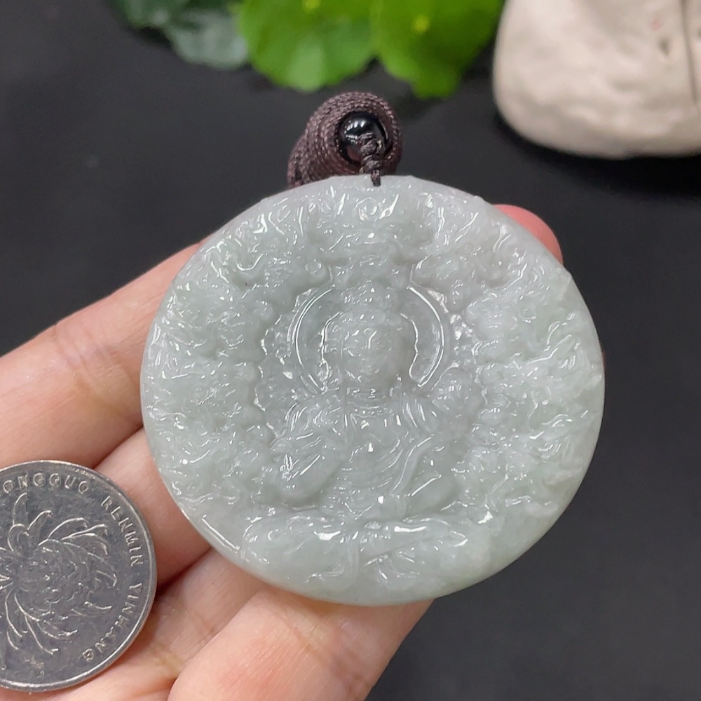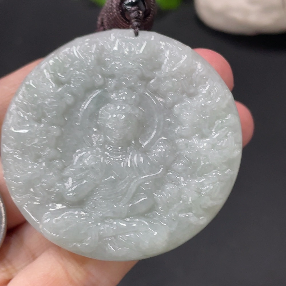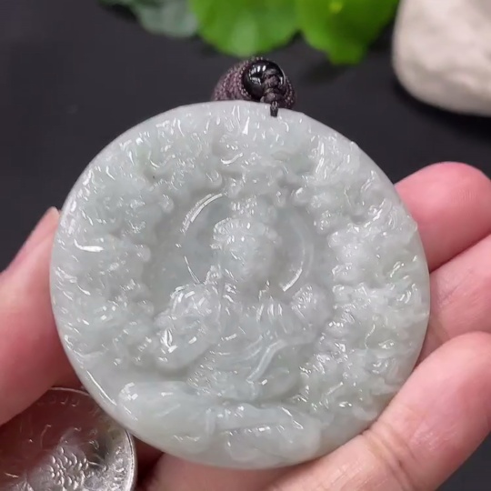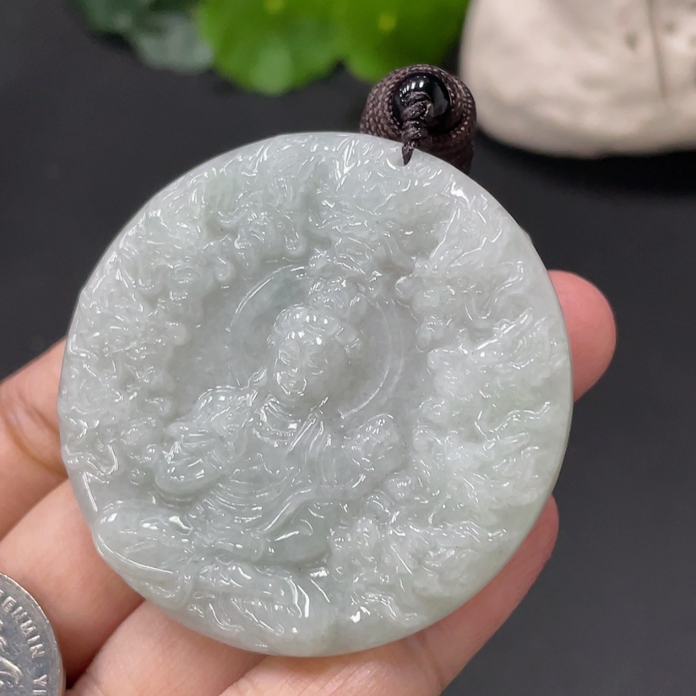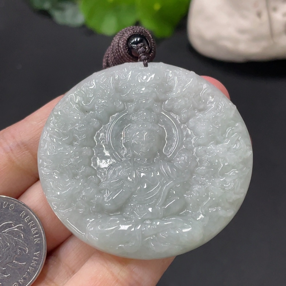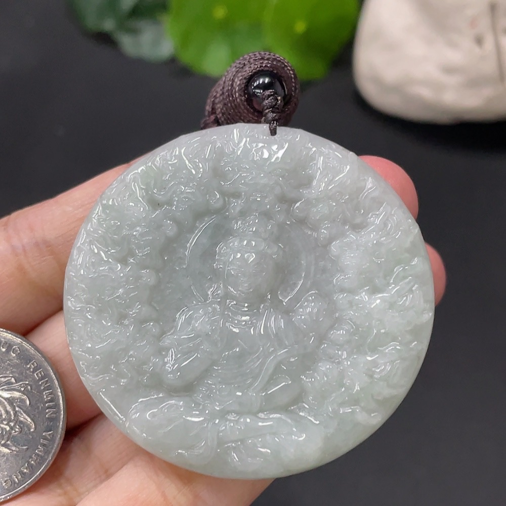 Jadeite Nine Dragons Protecting the Master Pendant, Total Weight 34.471g
