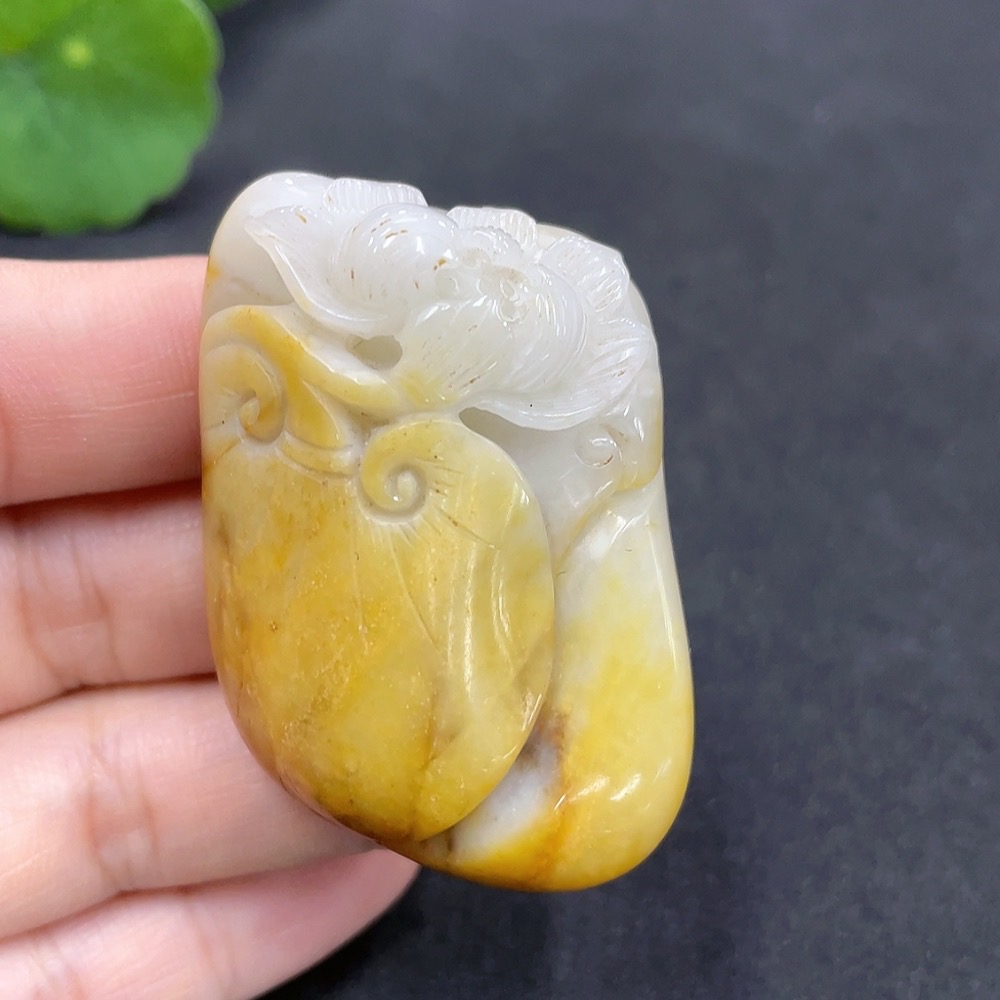 Hetian Jade Pendant Lotus Total Weight Approx. 47.1g Undetermined Skin Color Origin