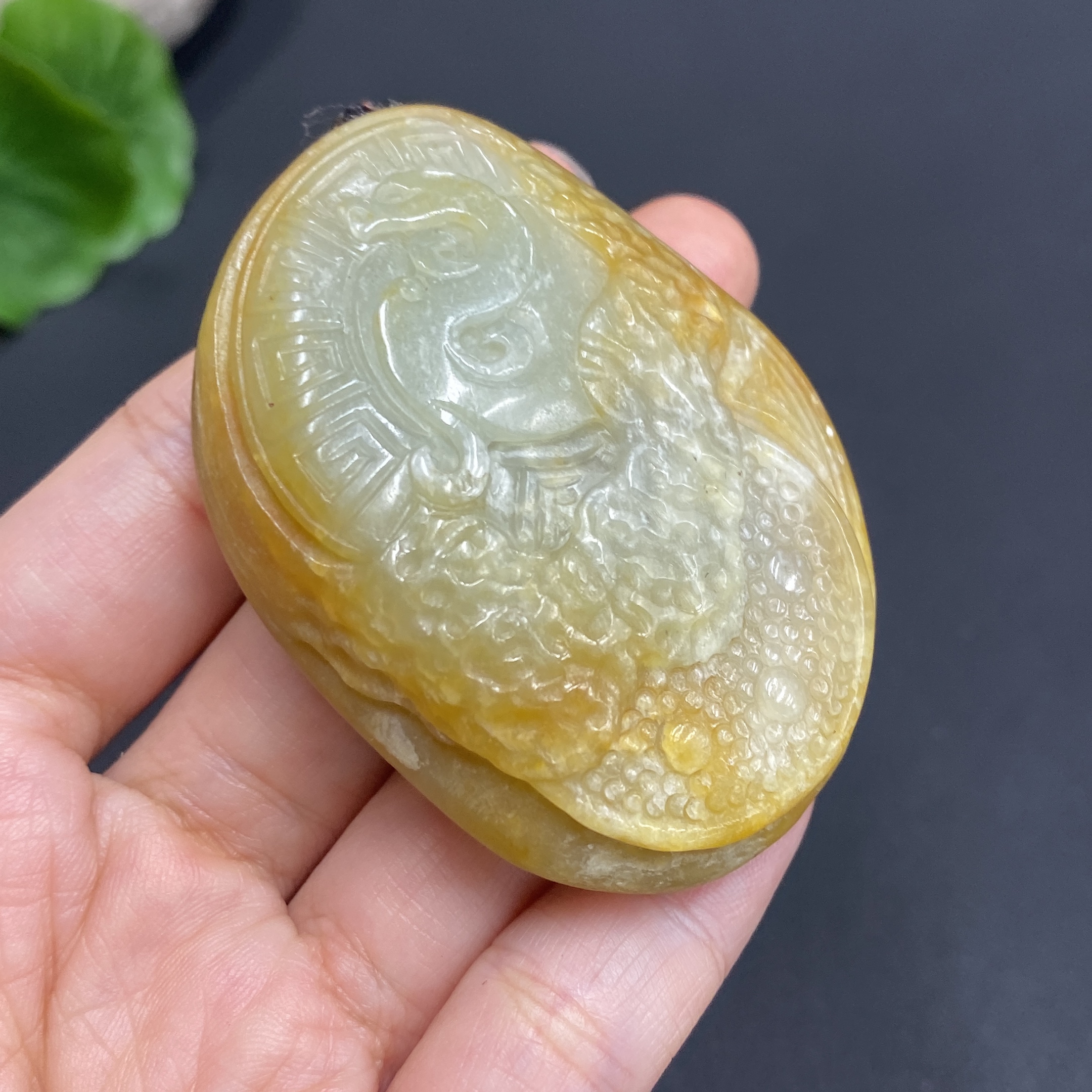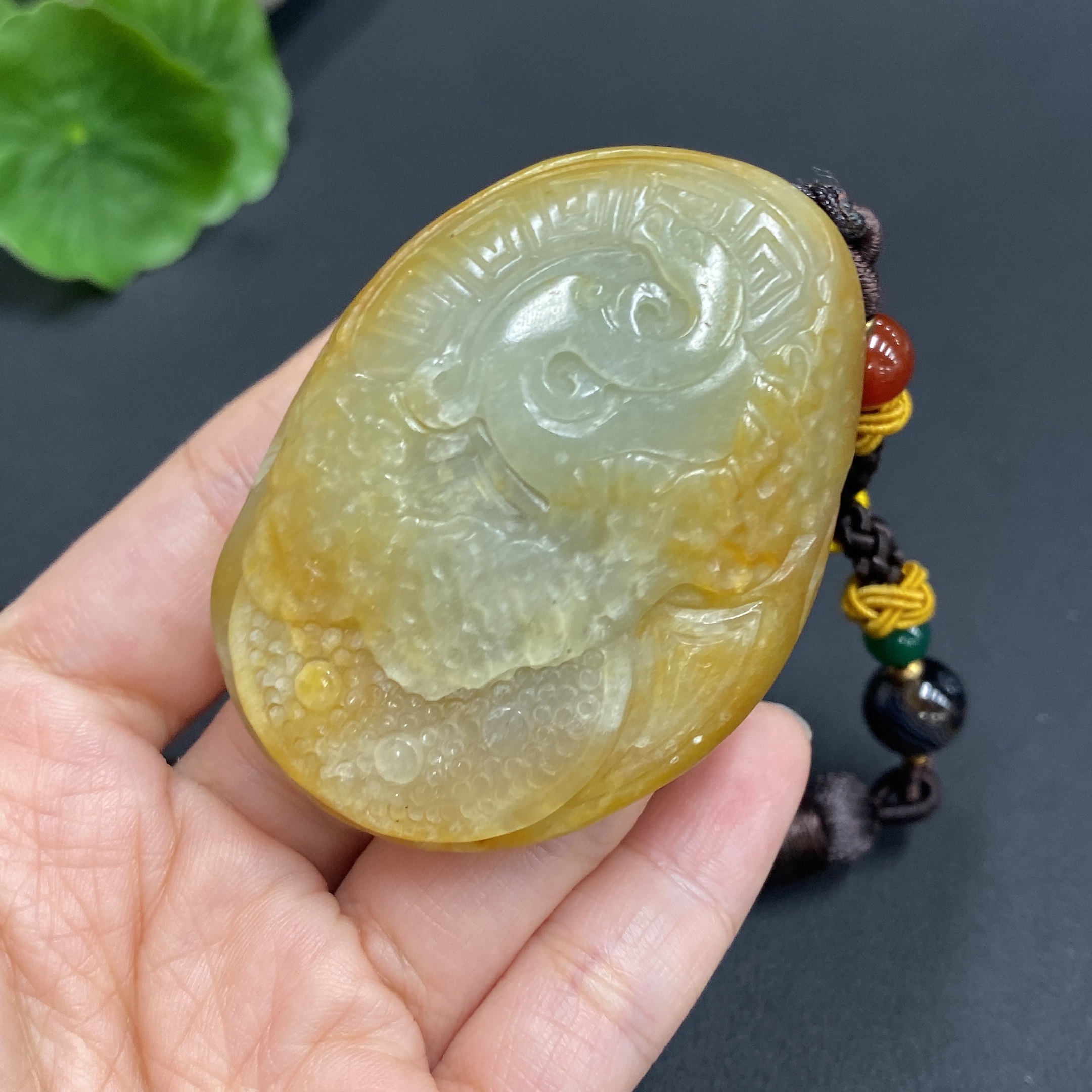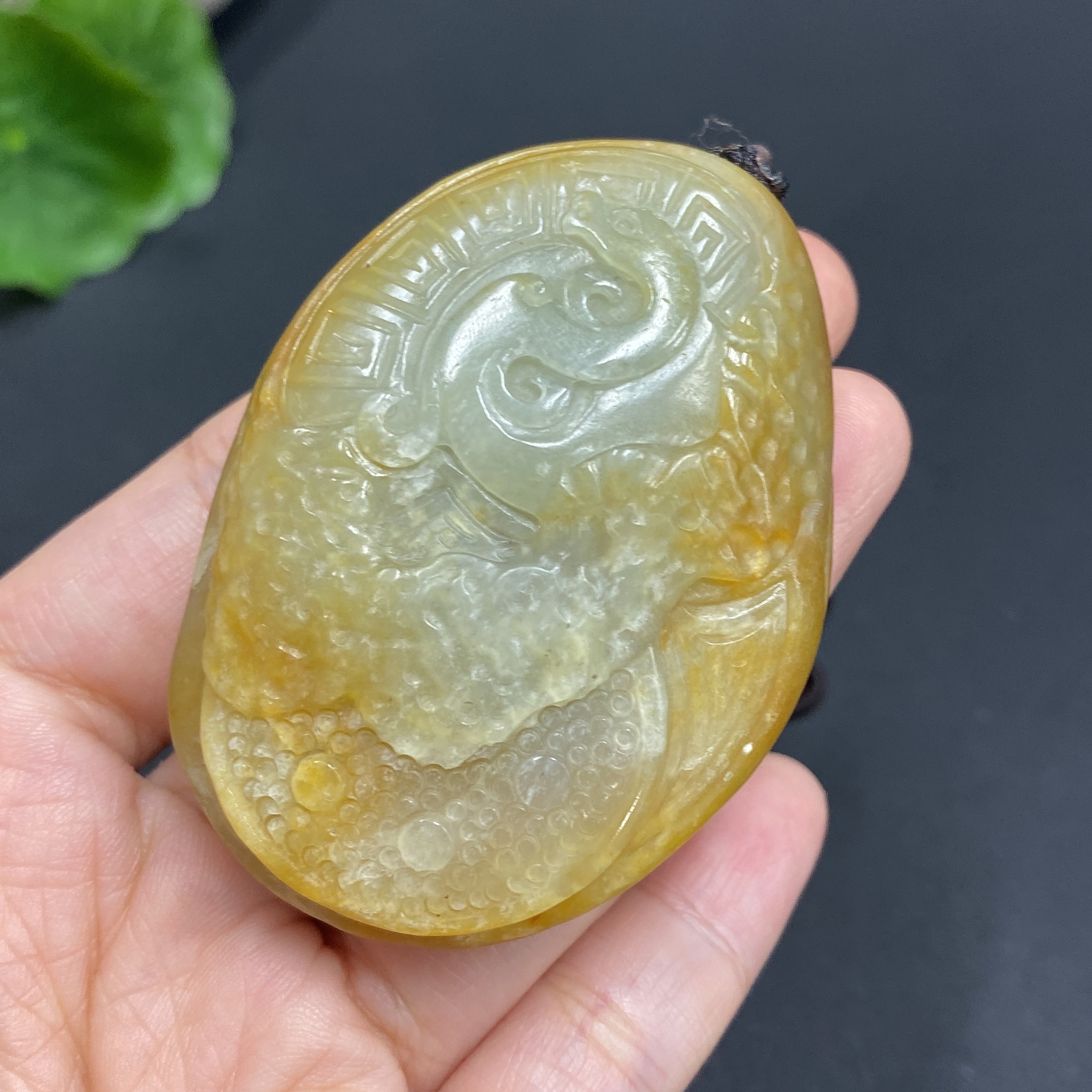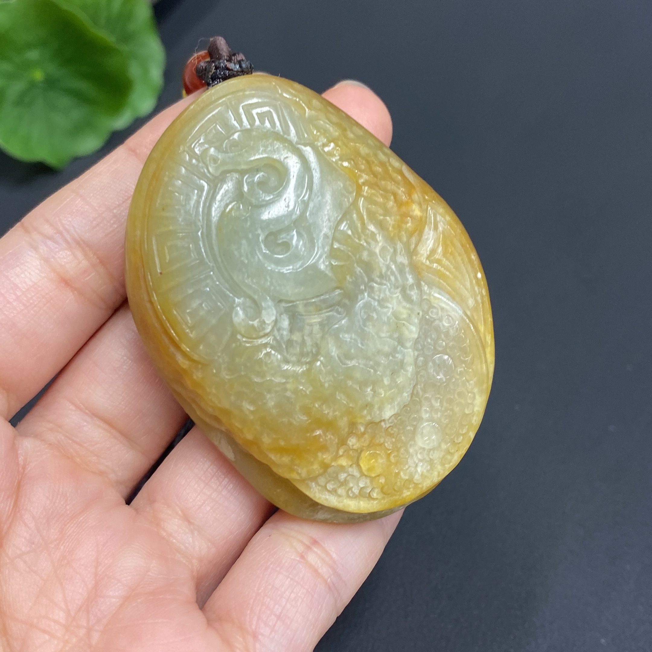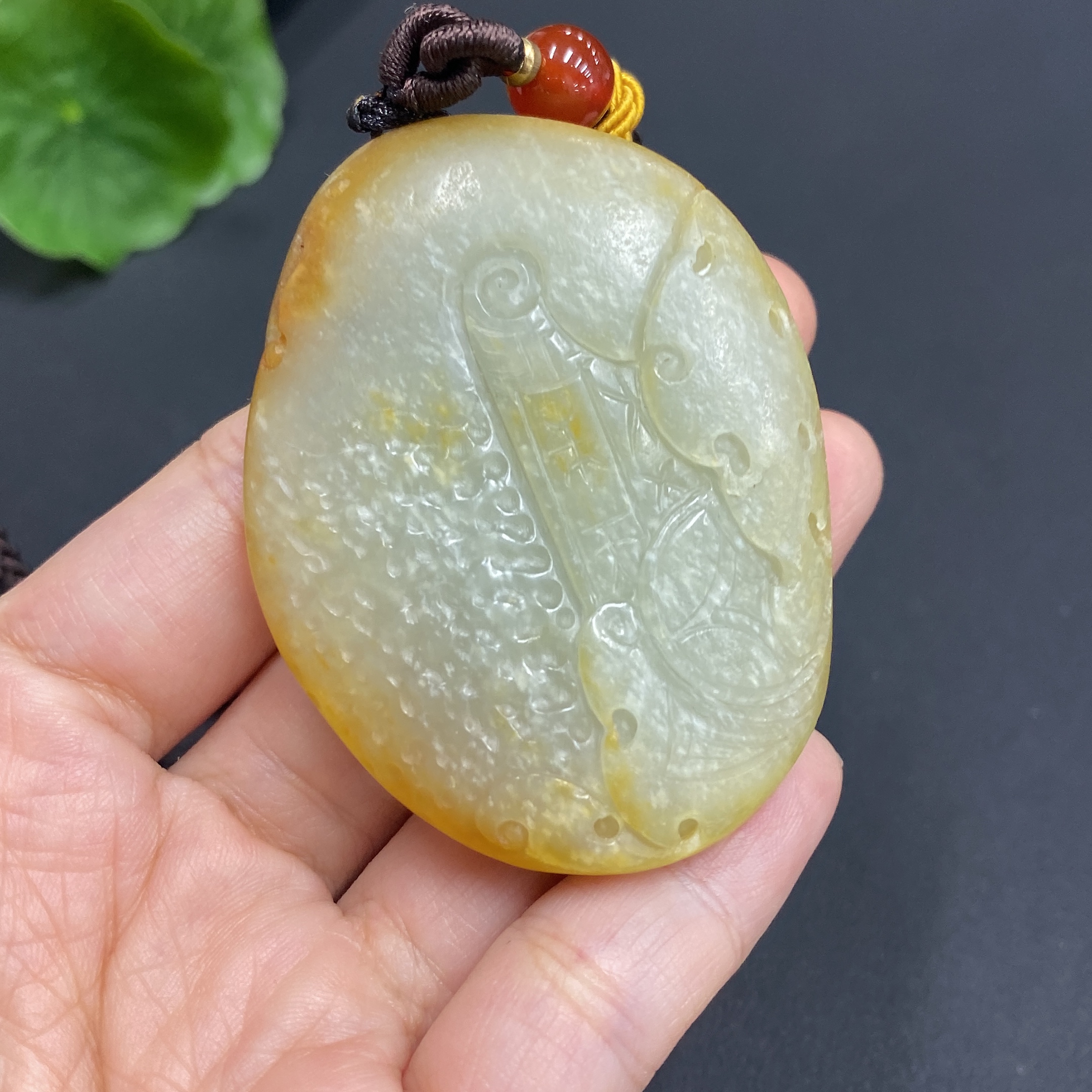 Hetian Jade Handheld Piece, Antique Style, Total Weight Approx. (Including Cord) 70.6g, Undetermined Skin Color Origin