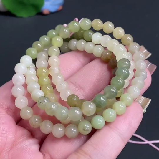 Hetian Jade Bead Necklace Approx. 5.8mm Total Weight Approx. 35.6g