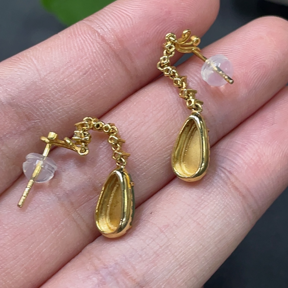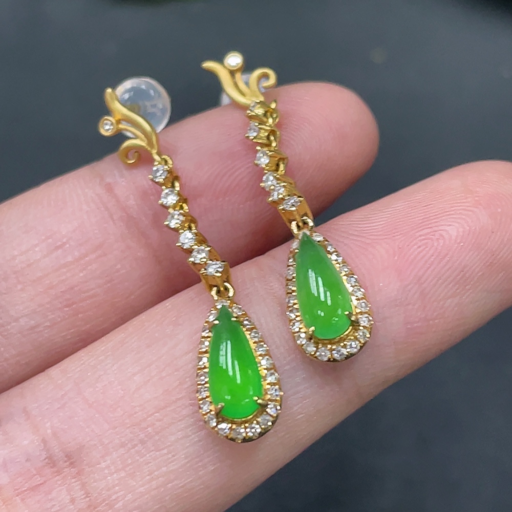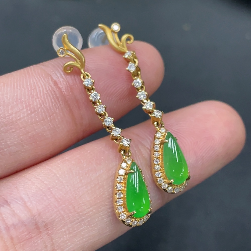 Jadeite Inlaid Earrings 18k Gold Inlaid Total Weight Approx. 3.08g Sell as a Lot
