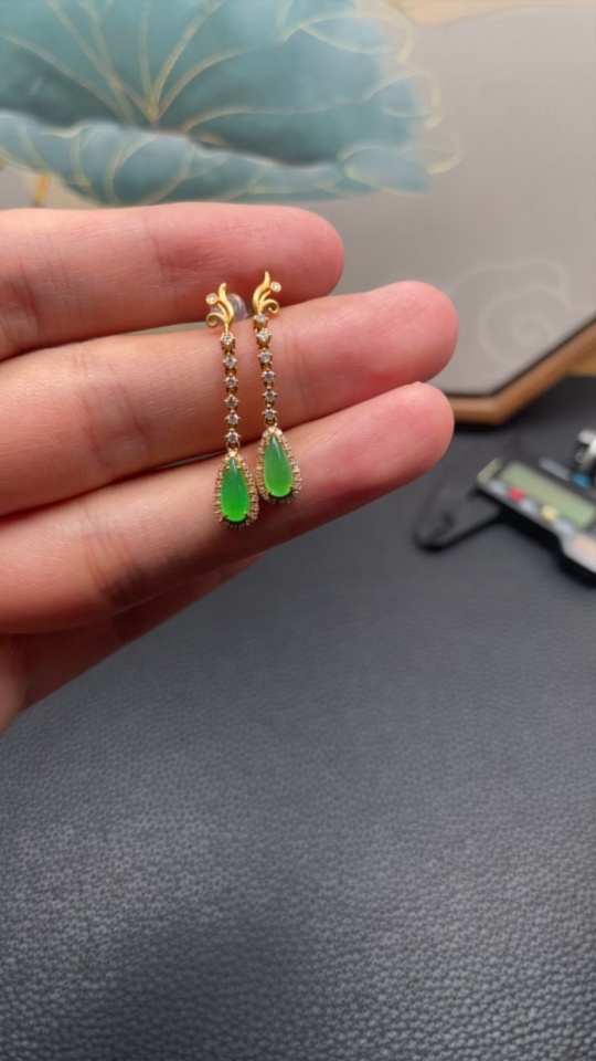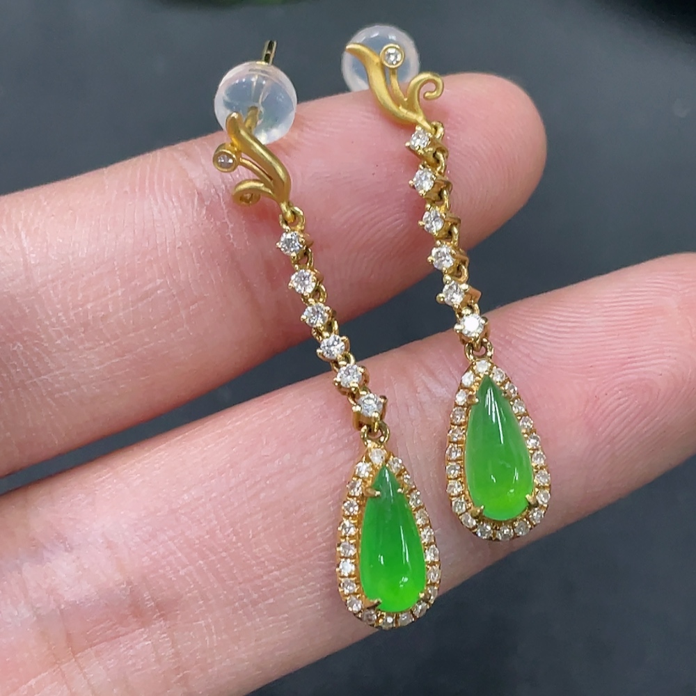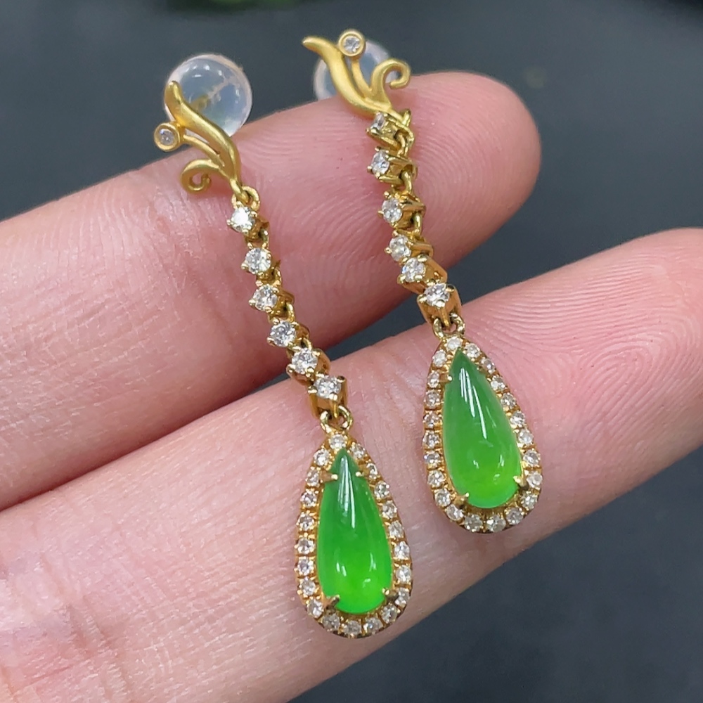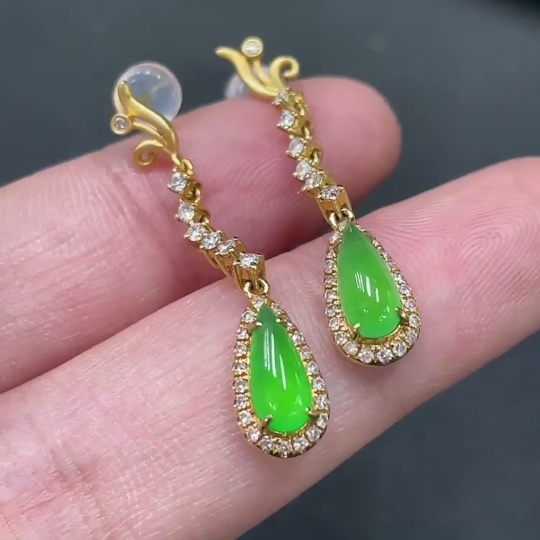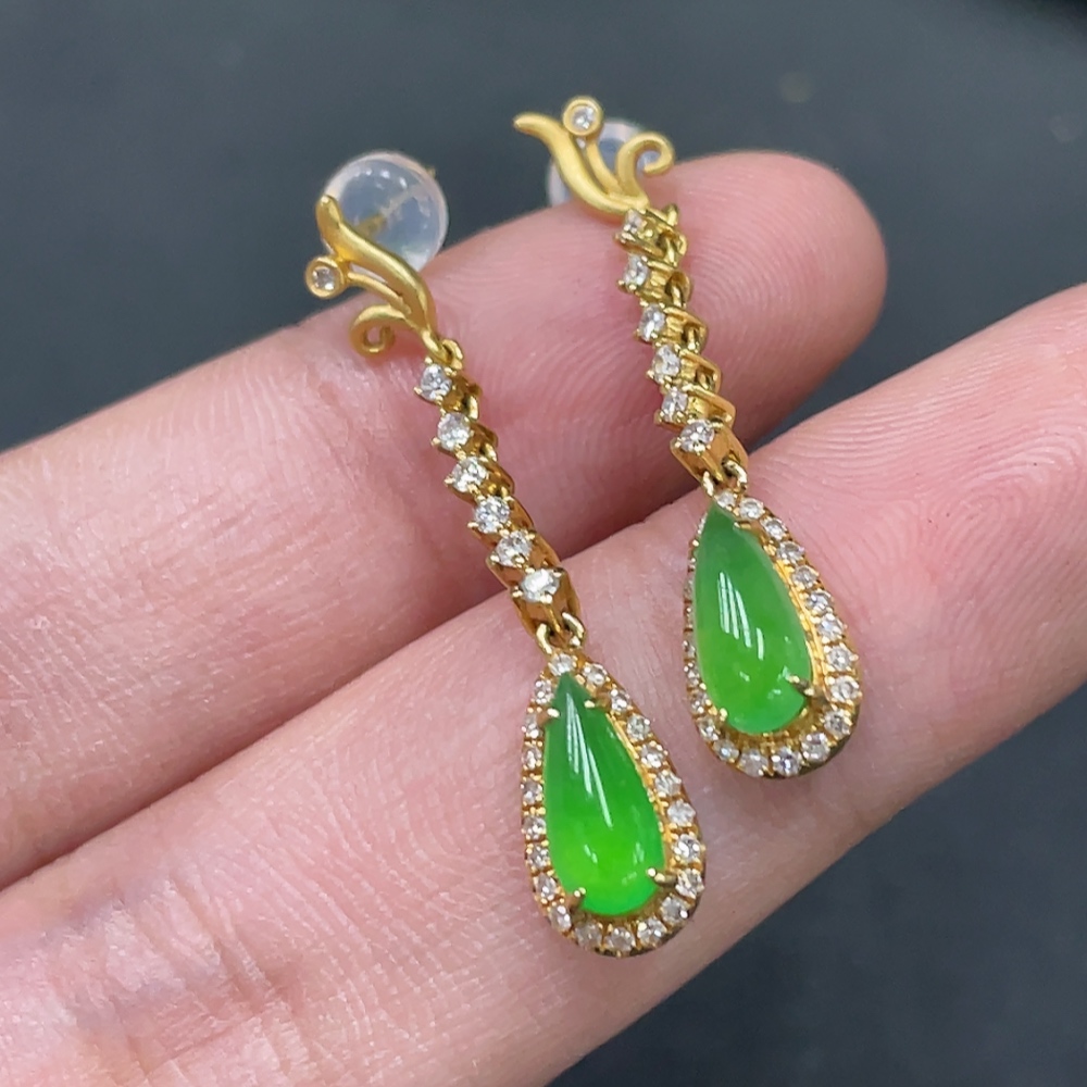 Jadeite Inlaid Earrings 18k Gold Inlaid Total Weight Approx. 3.08g Sell as a Lot