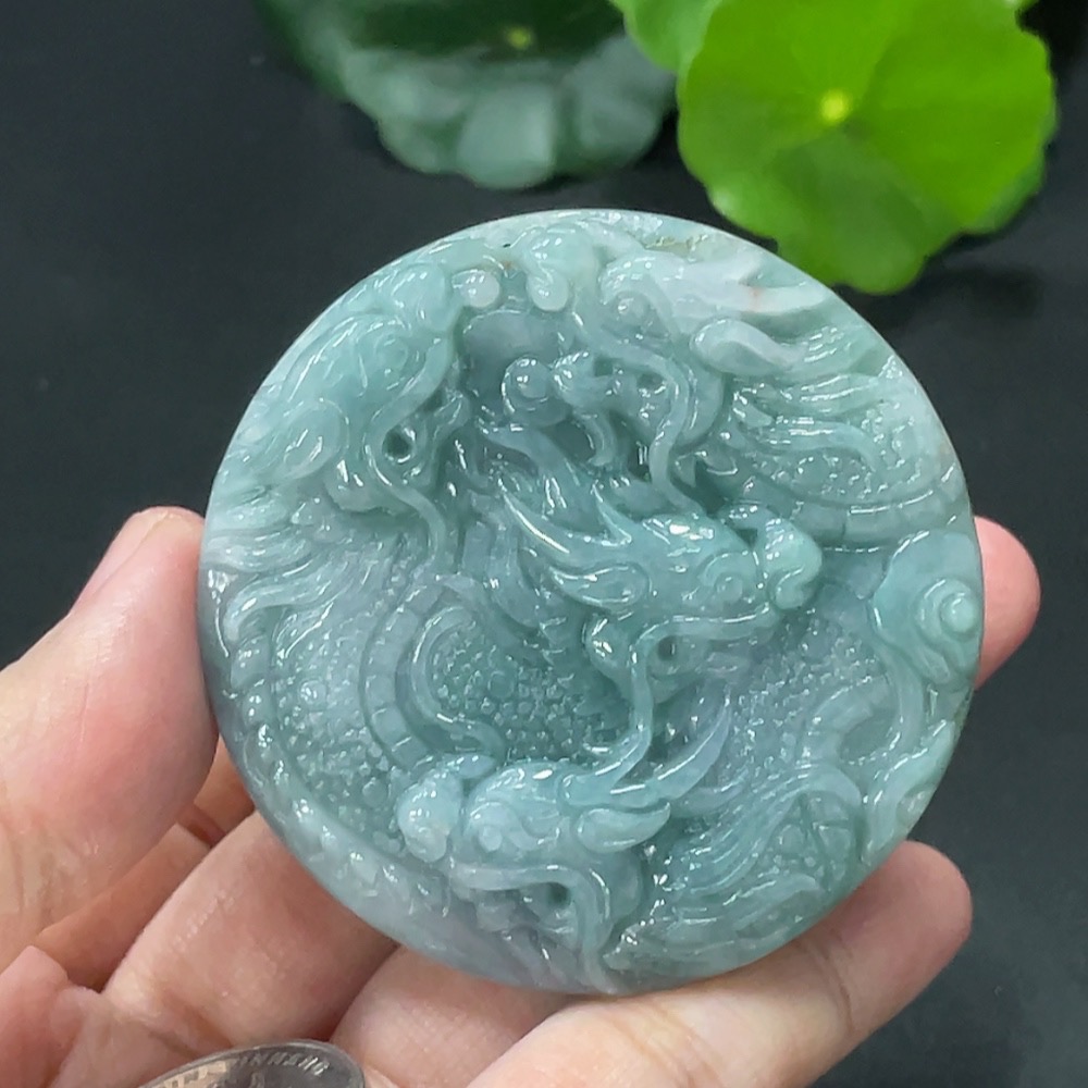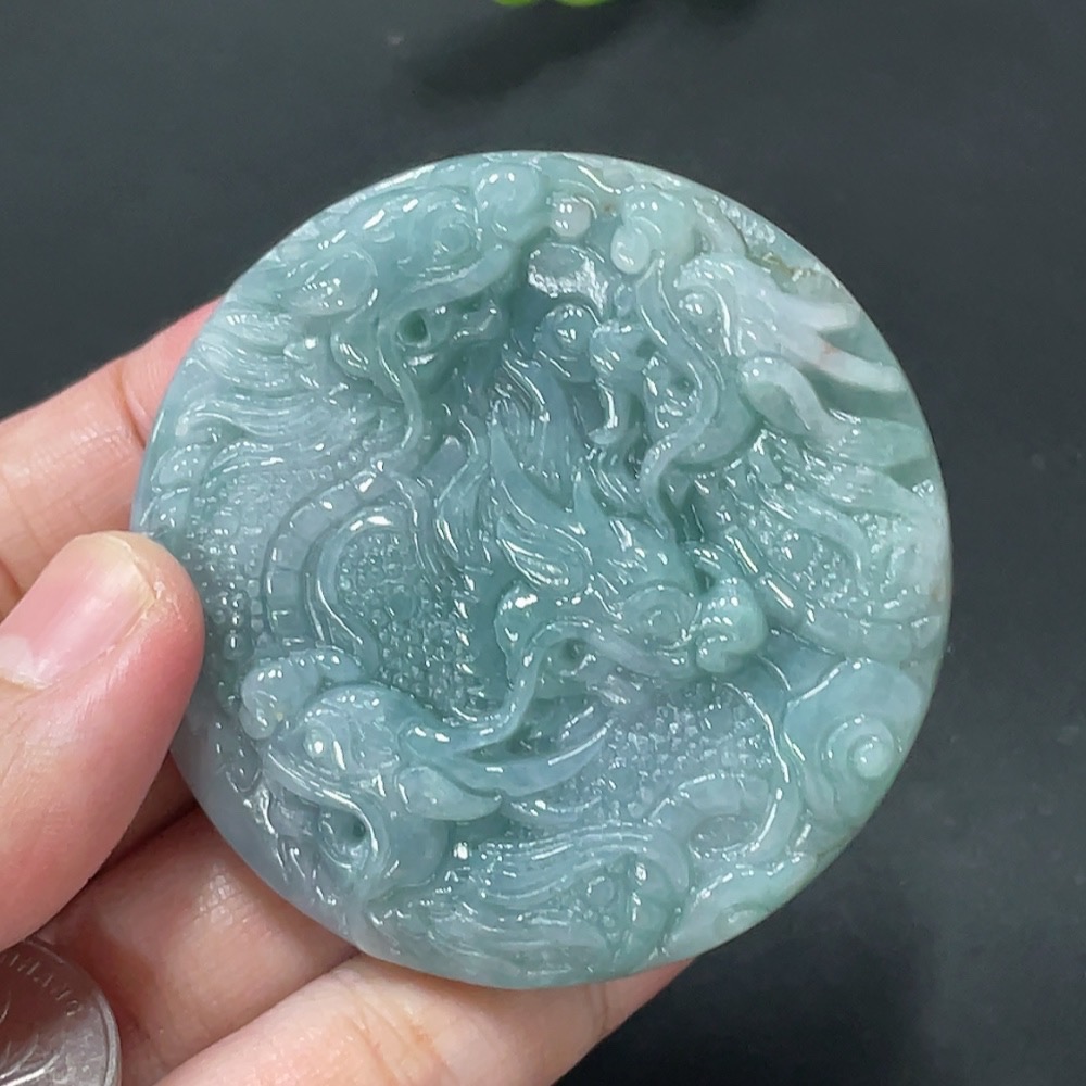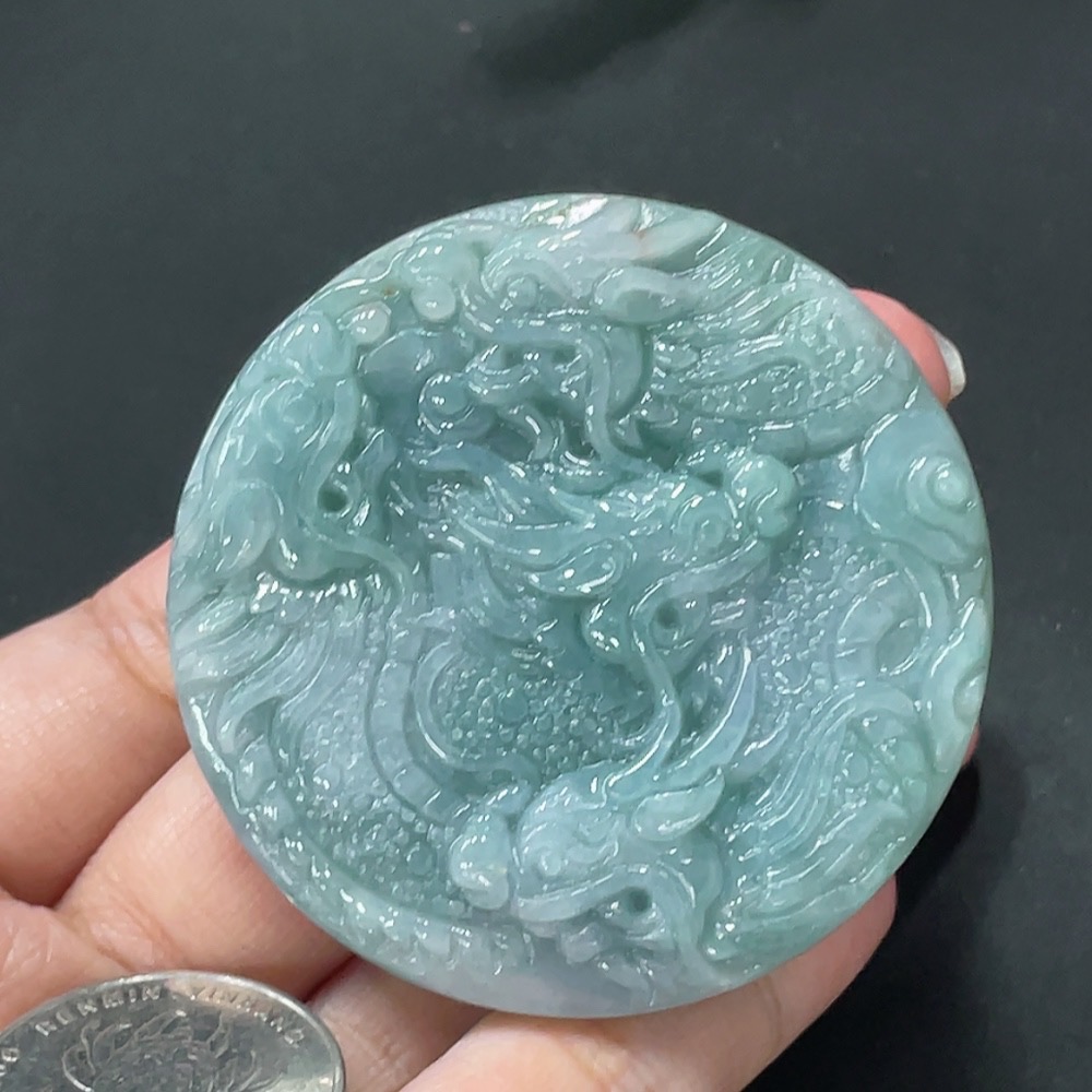 Jadeite Nine Dragons Protecting the Master Pendant Total Weight 62.461g