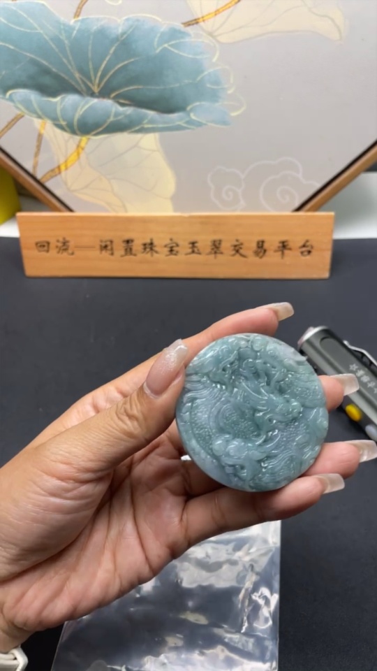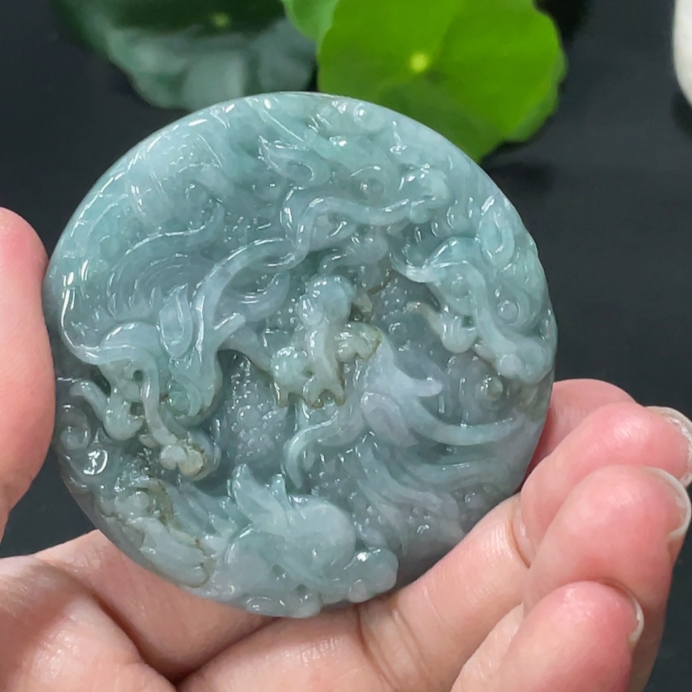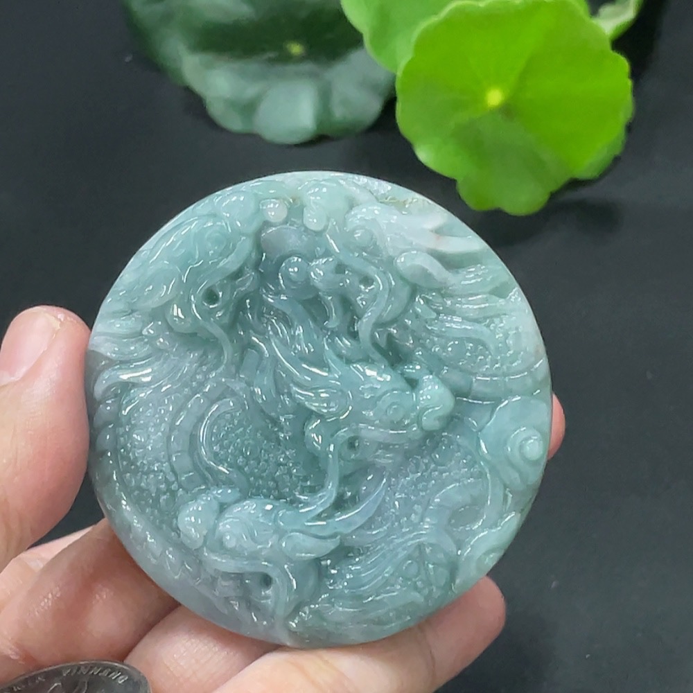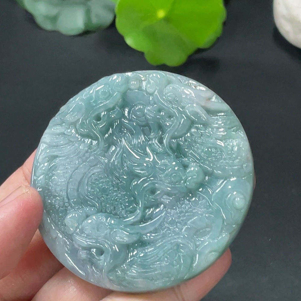 Jadeite Nine Dragons Protecting the Master Pendant Total Weight 62.461g