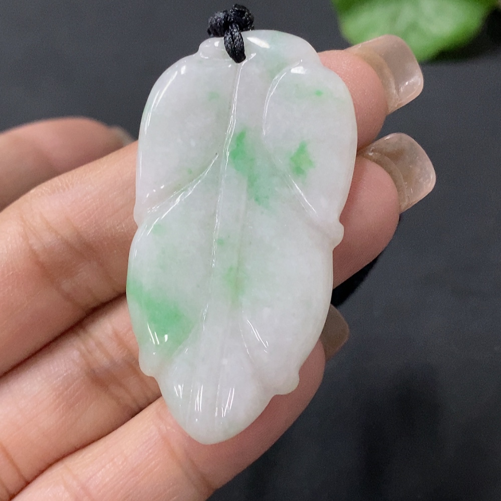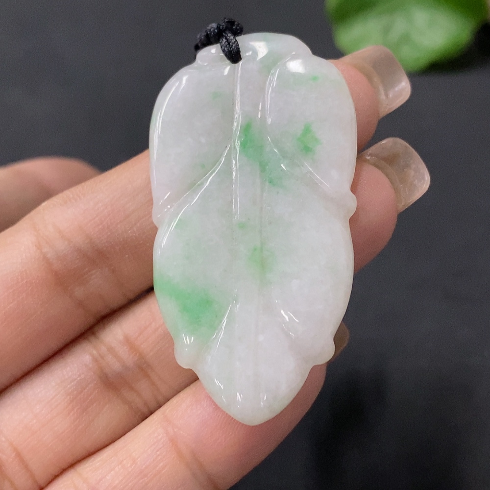 Trezaar - Jadeite Leaf Pendant Total Weight 12.464g