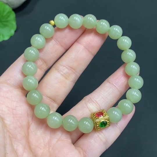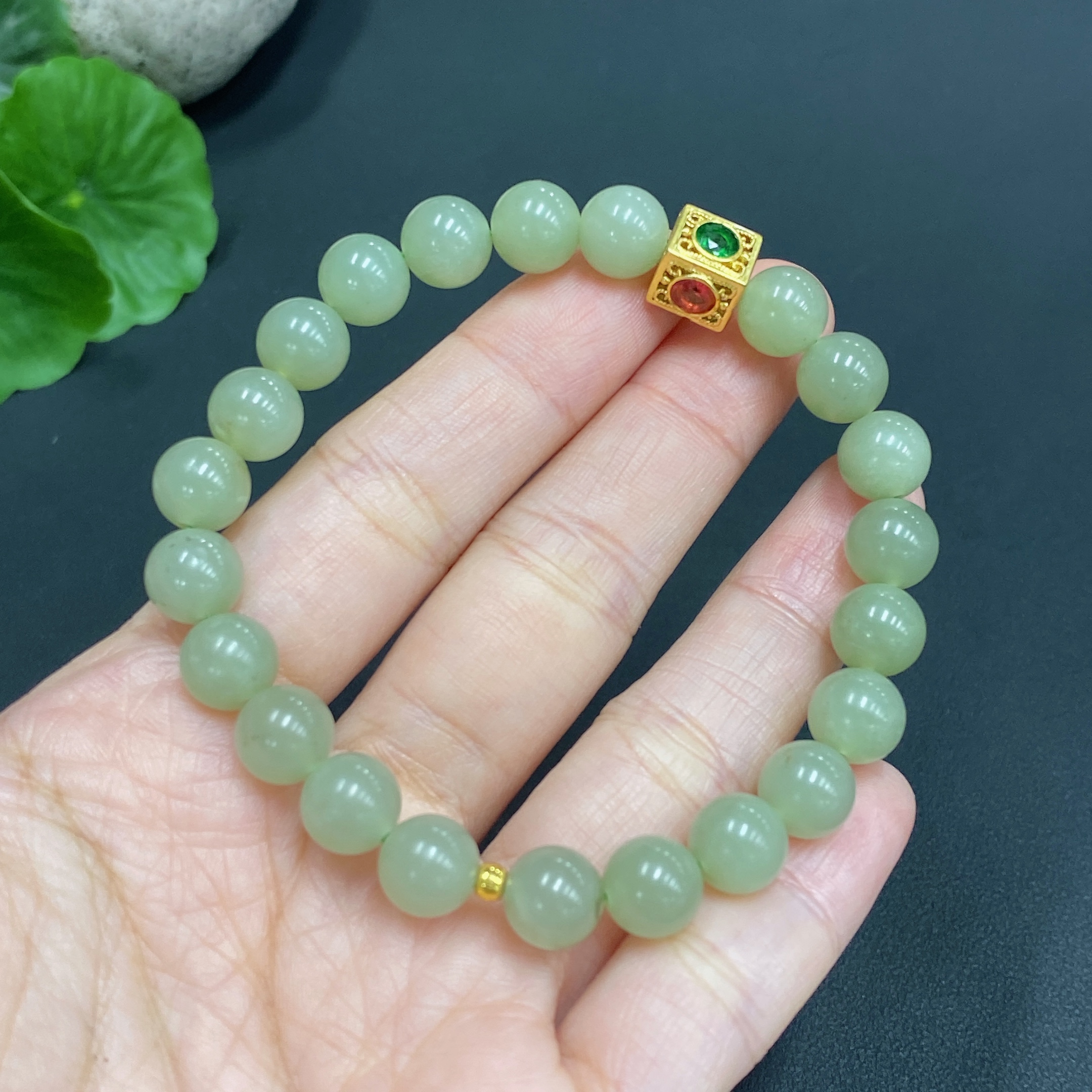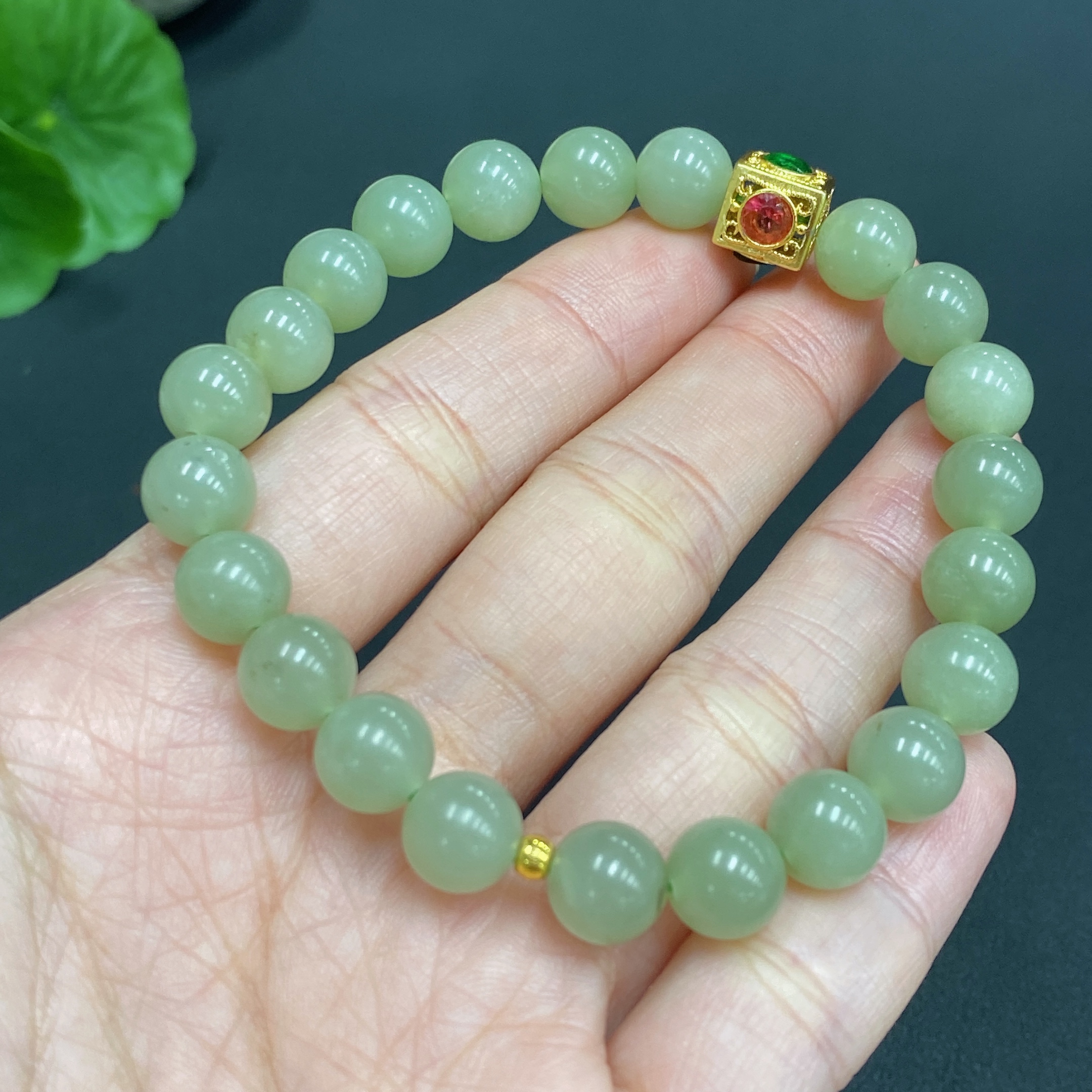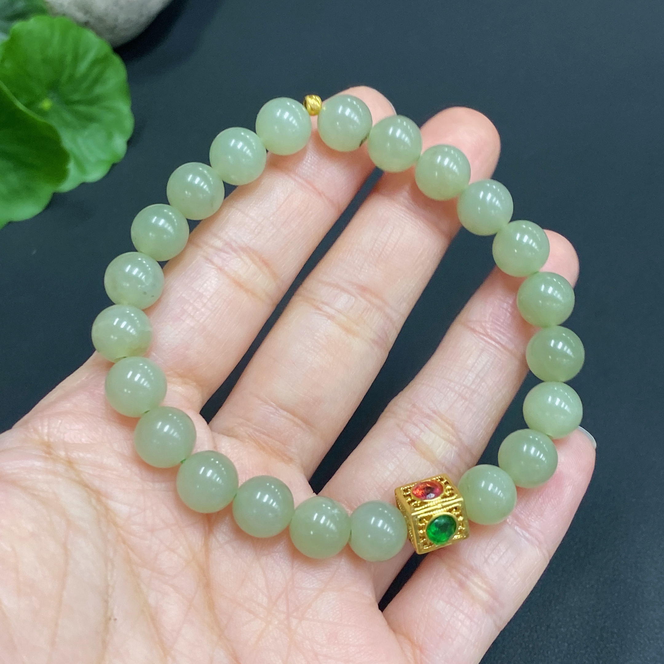 Hetian Jade Bracelet, Approx. 7.5mm Beads, Small 99% Gold Beads, Non-Gold for the Rest, Total Weight Approx. 18.5g