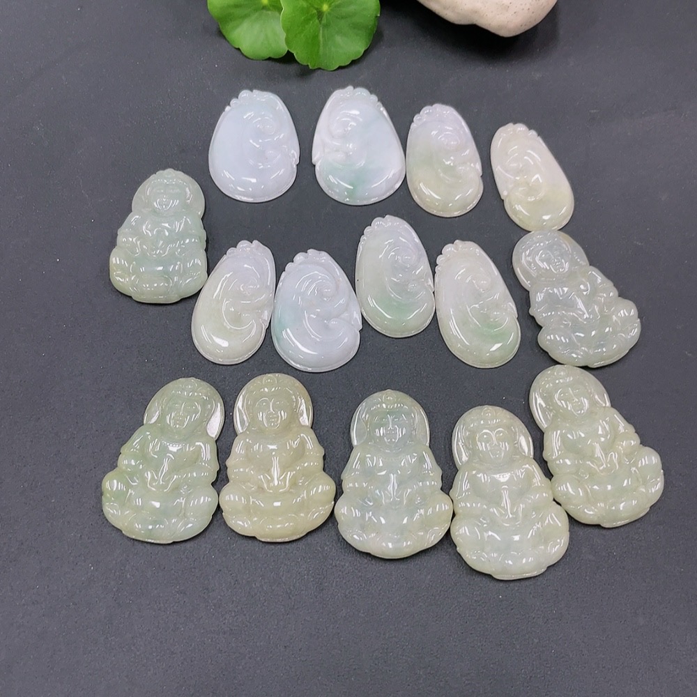 Jadeite Ruyi + Guanyin Pendant