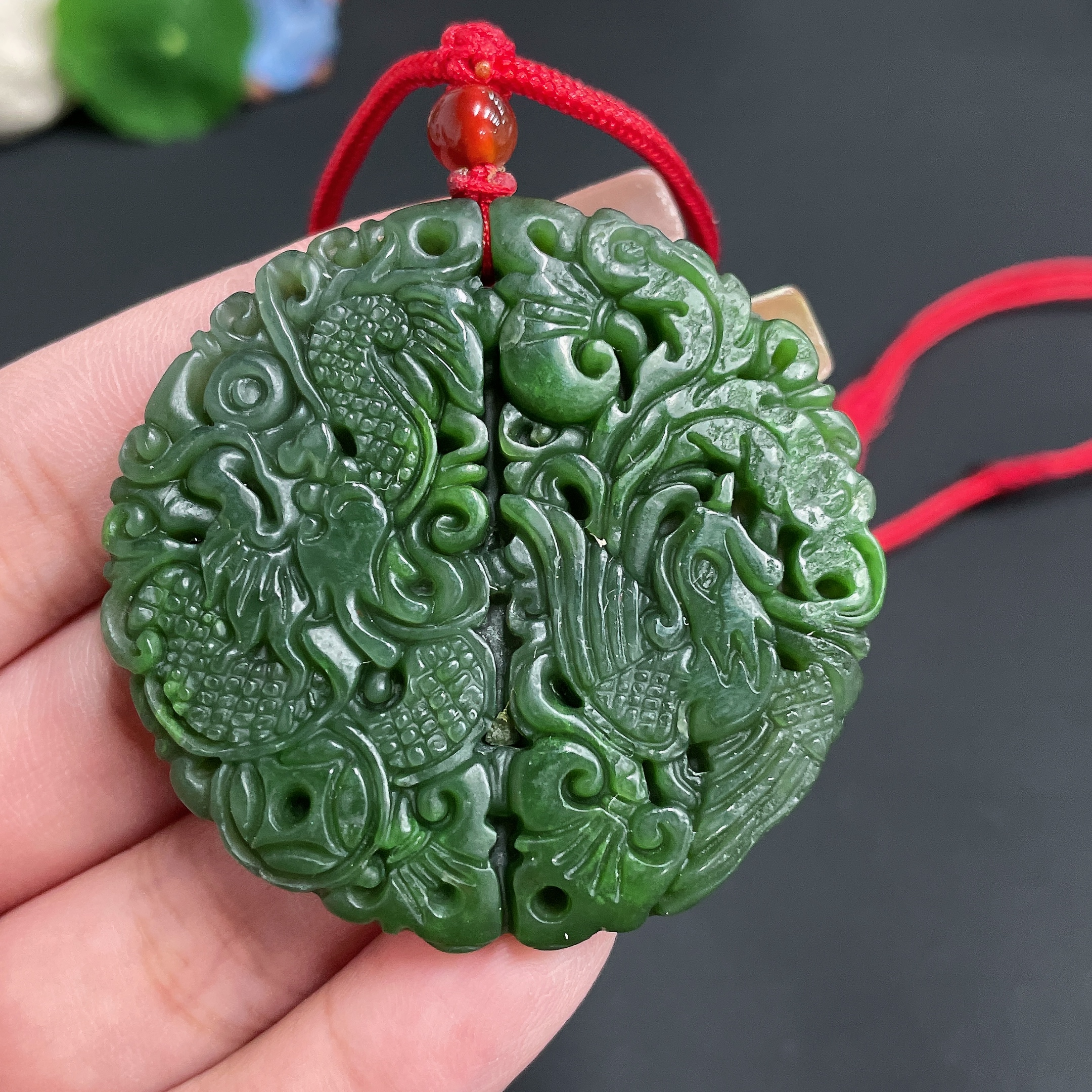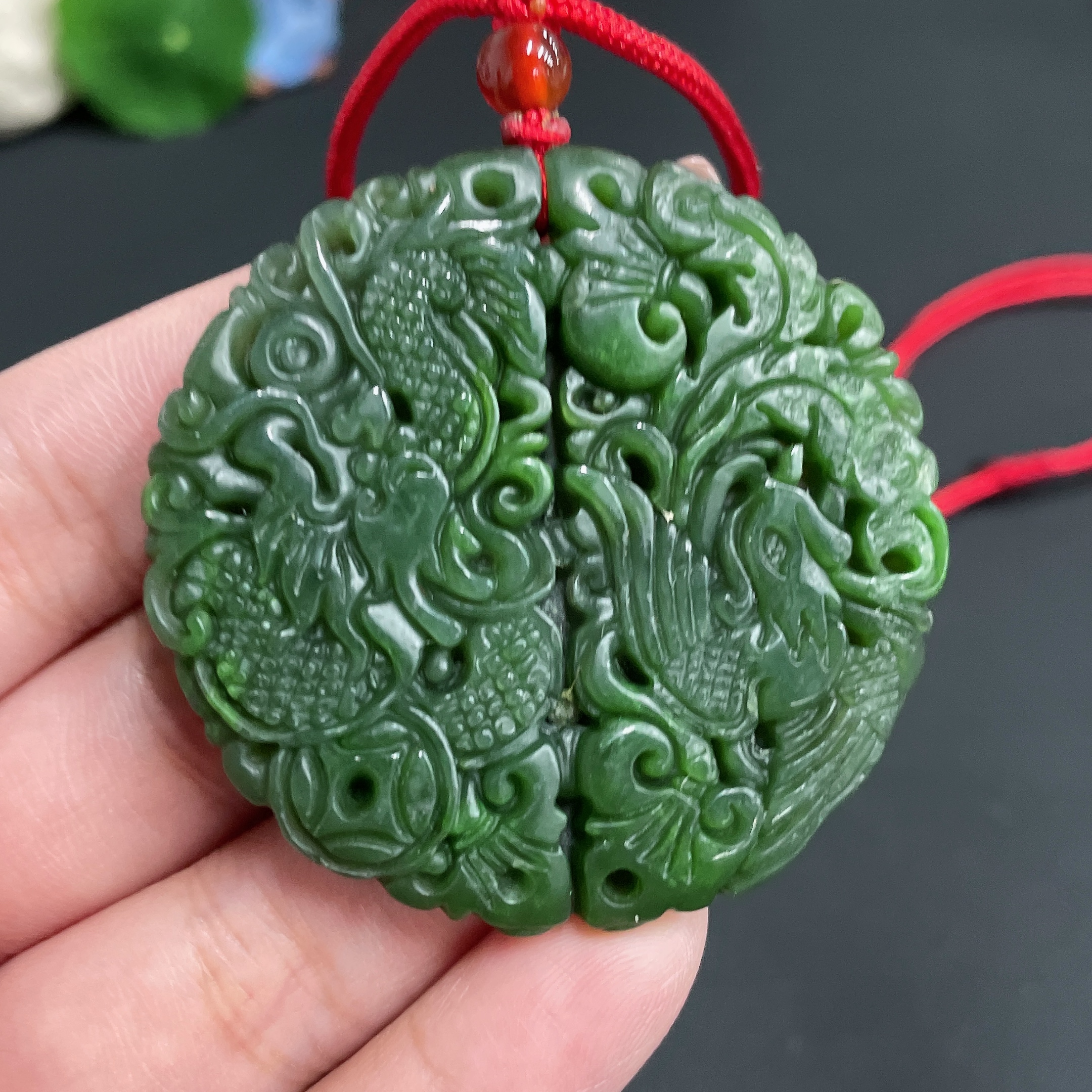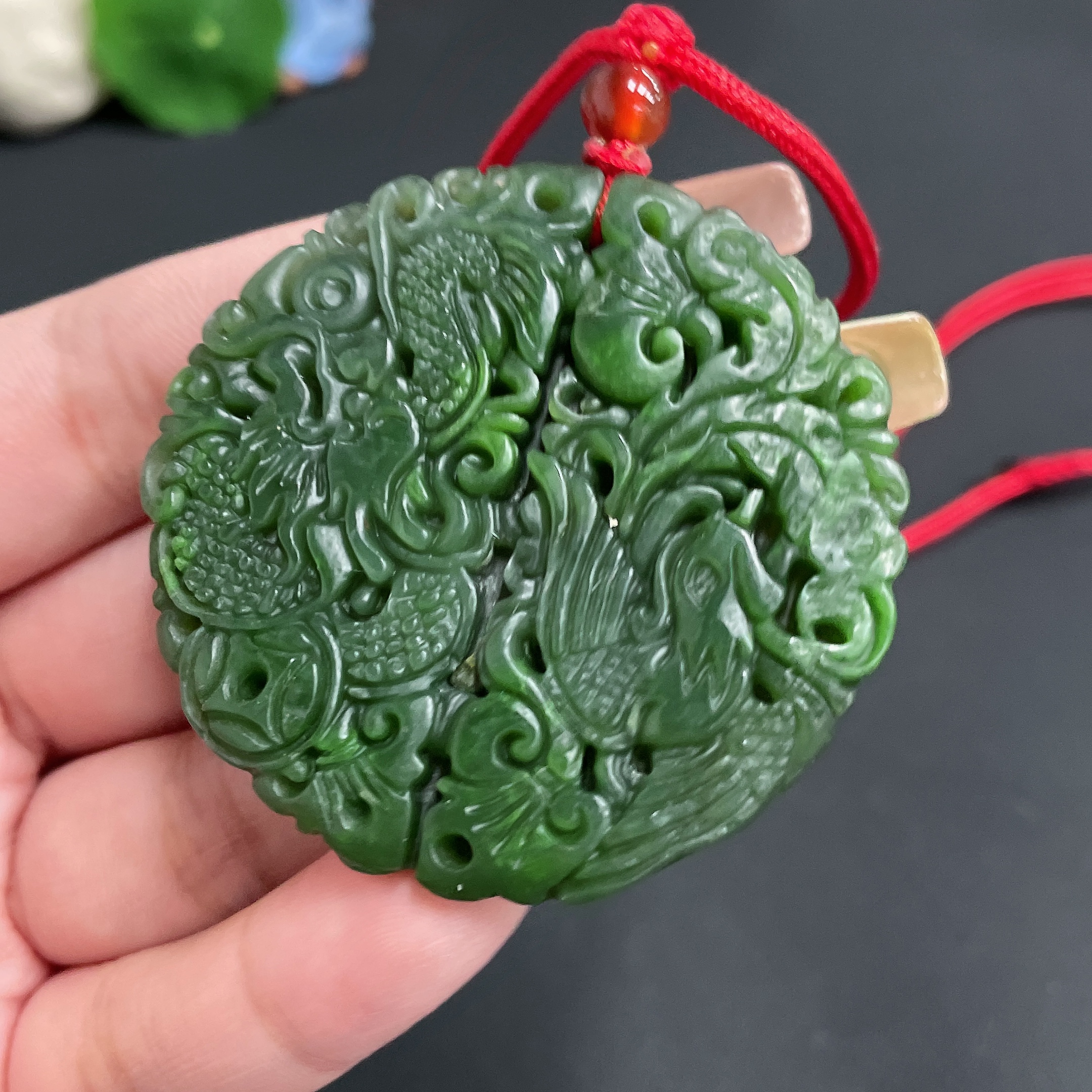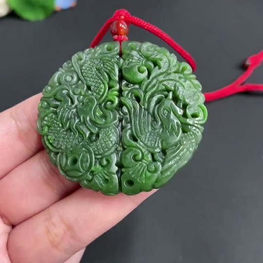 Hetian Jade Pendant, Dragon and Phoenix Plaque, Total Weight Approx. (Including Rope) 32.9g