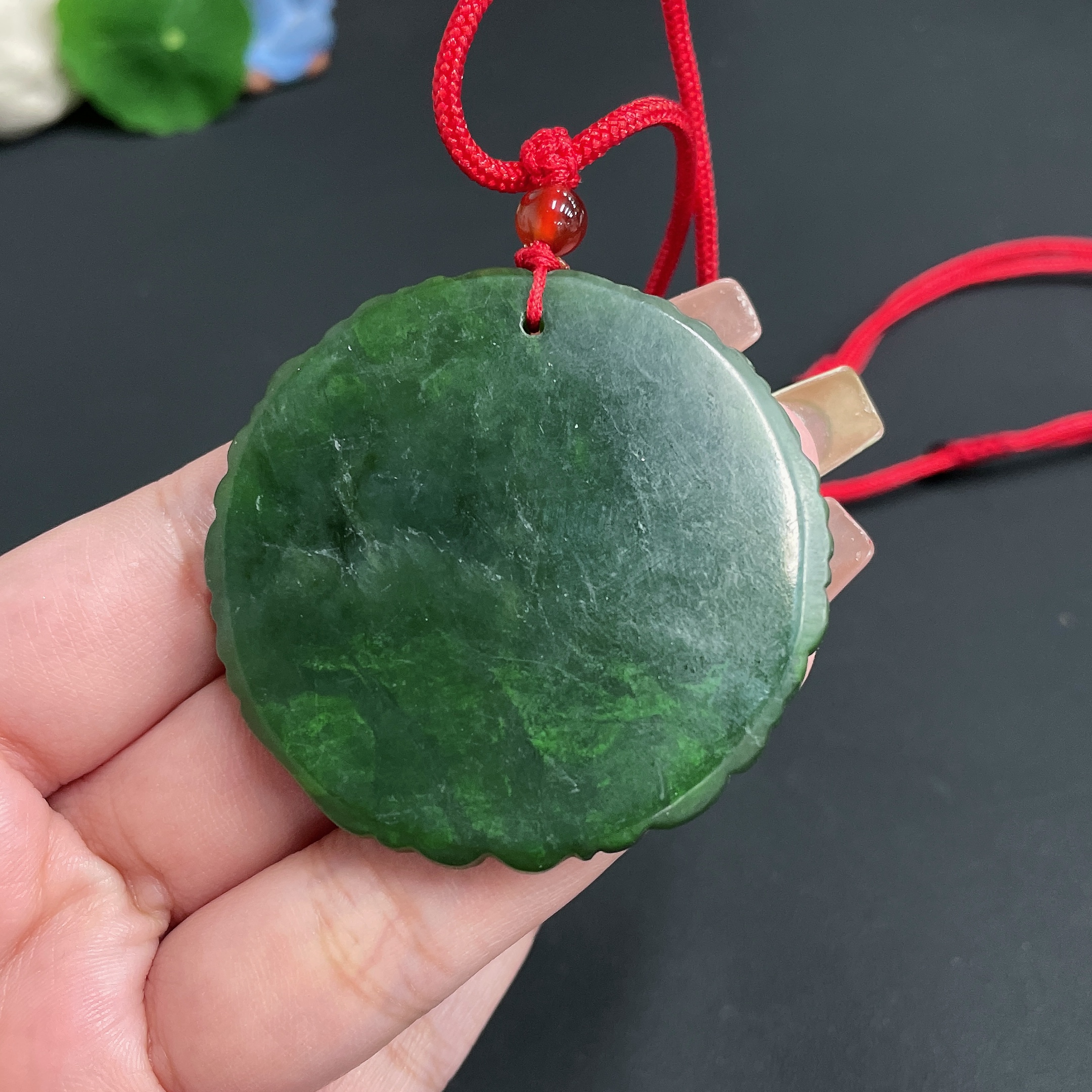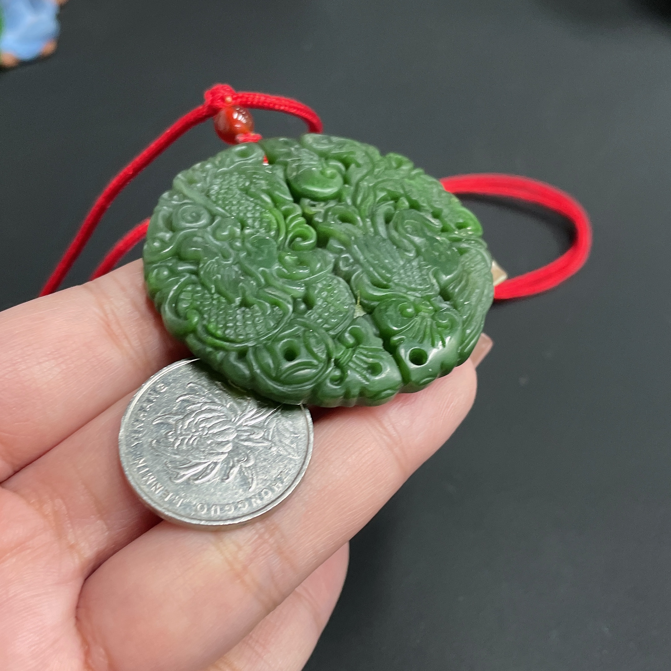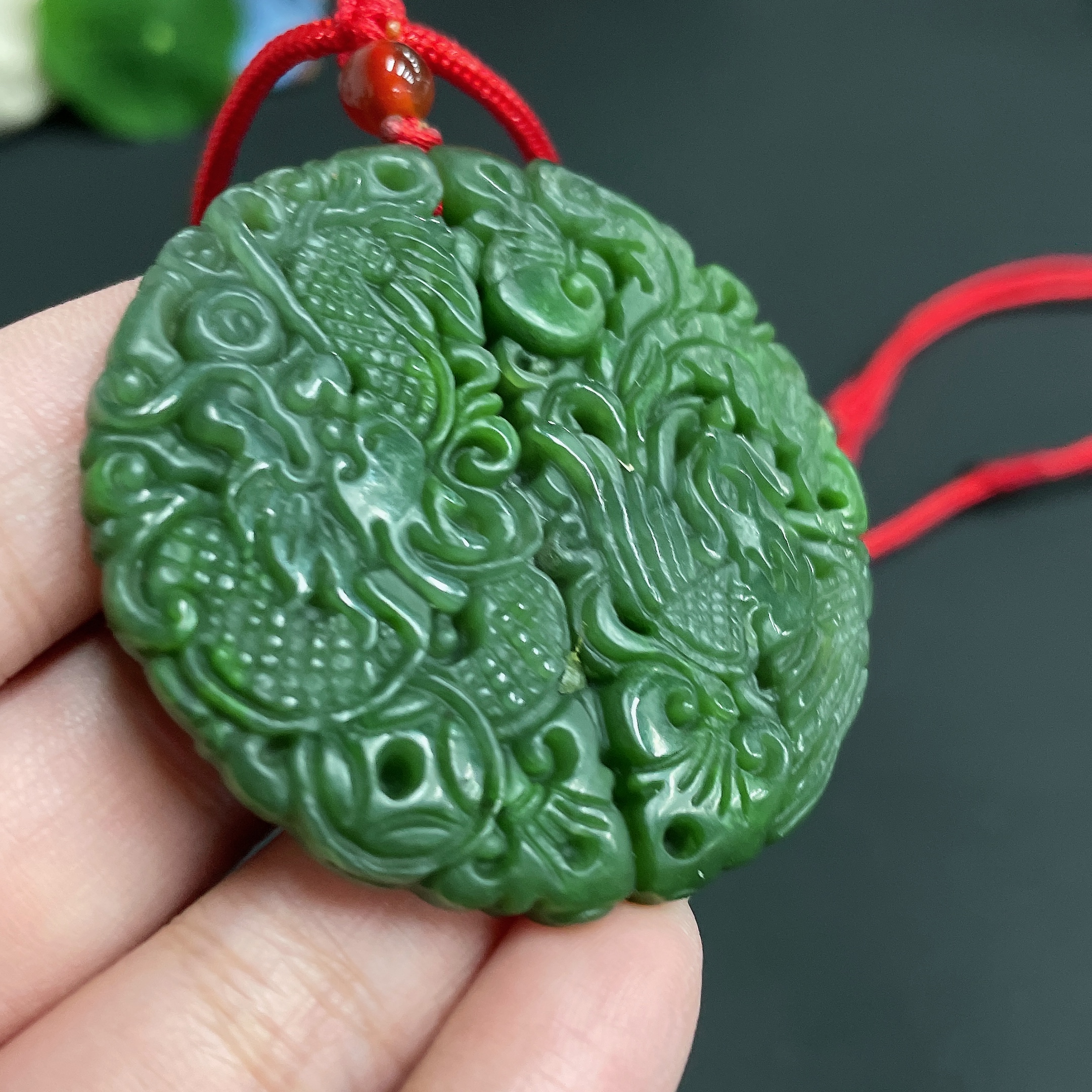 Hetian Jade Pendant, Dragon and Phoenix Plaque, Total Weight Approx. (Including Rope) 32.9g