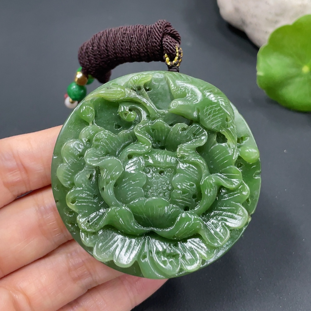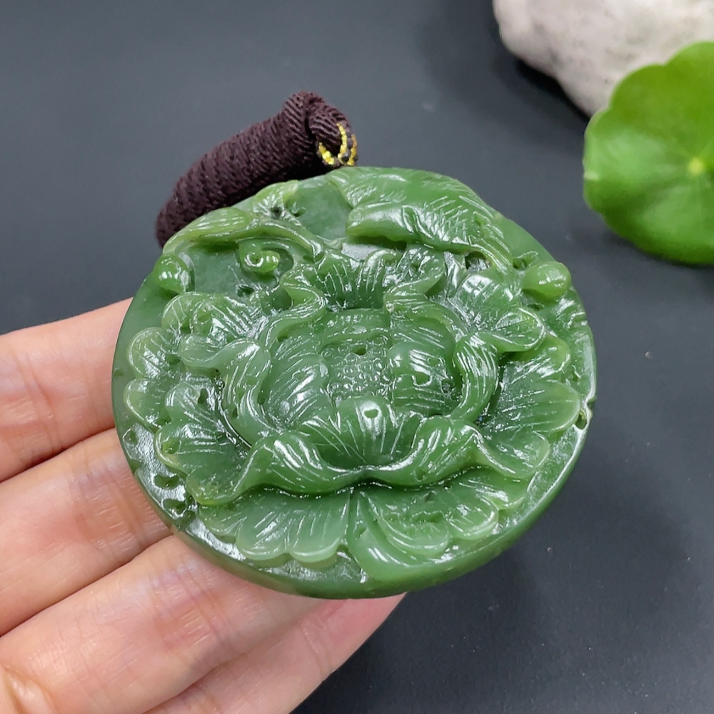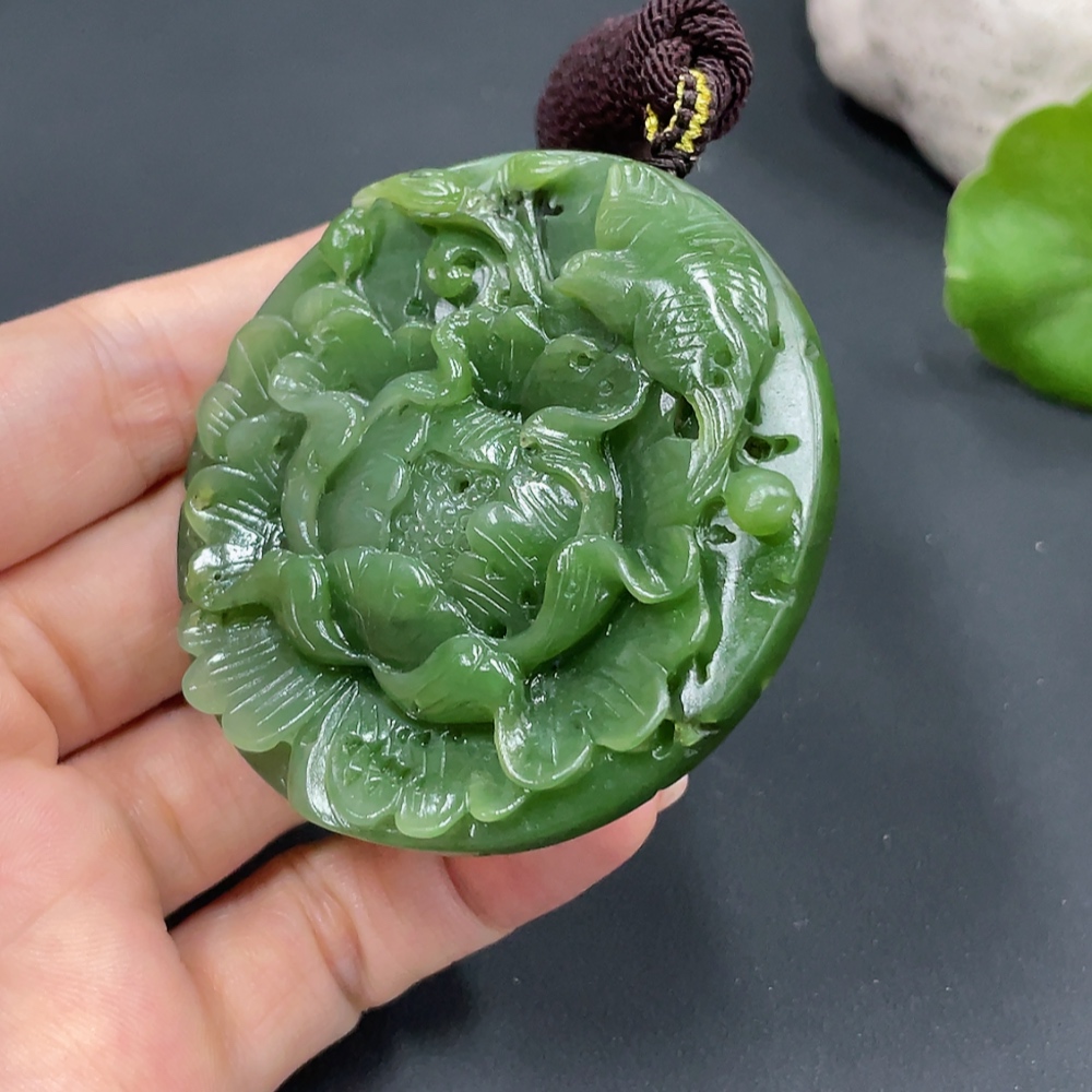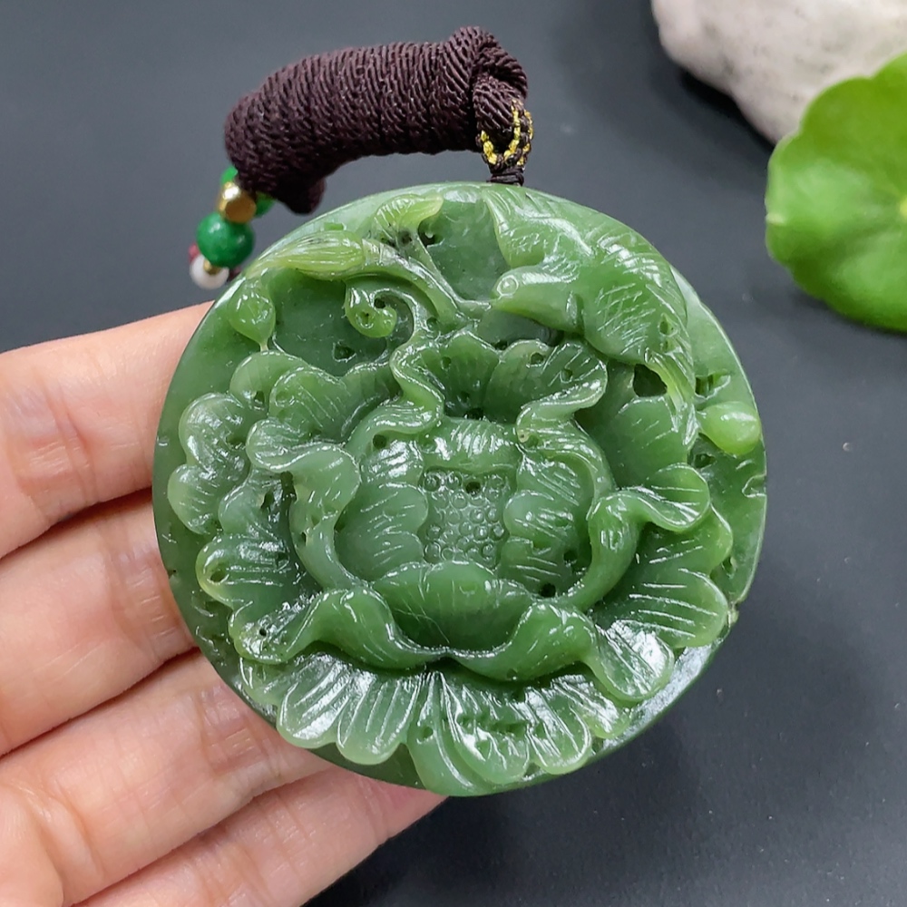 Hetian Jade Pendant - Flourishing Prosperity - Total Weight (including rope) Approx. 59.2g