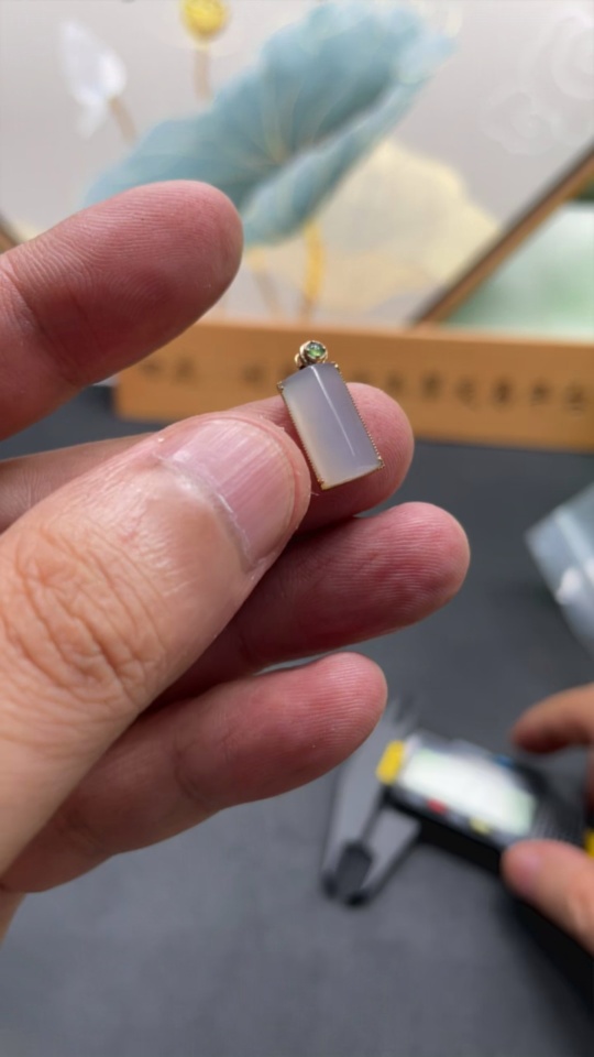 Jadeite Pendant 18K Gold Inlaid Total Weight Approx. 0.95g