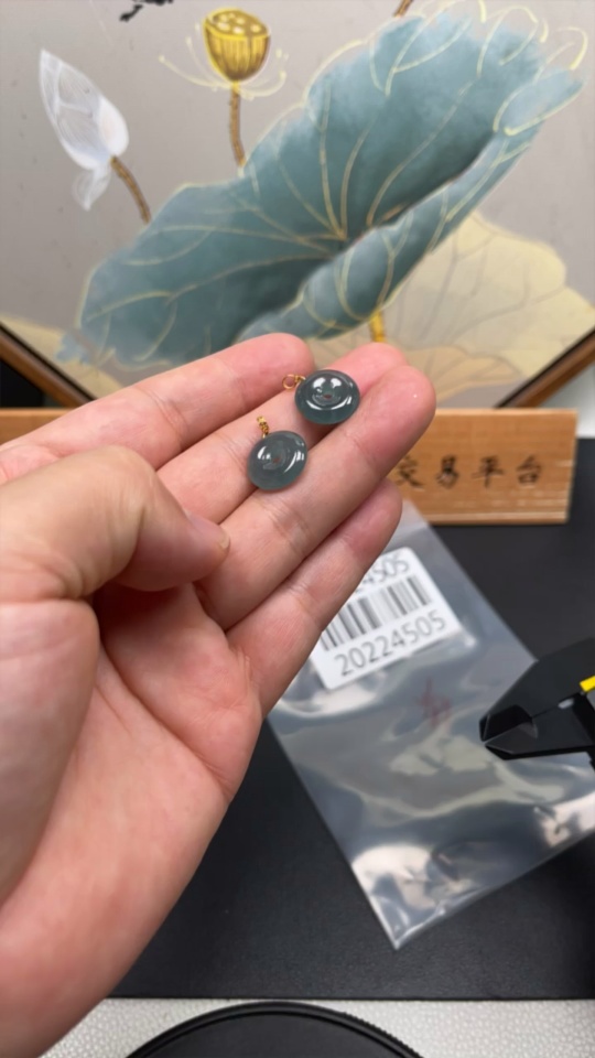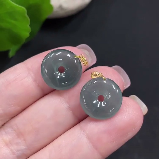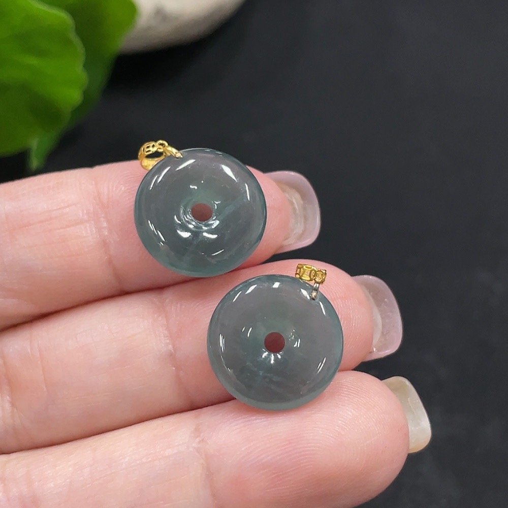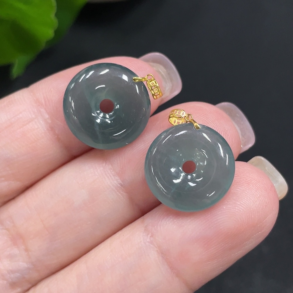 Jadeite Flat Round Pendant Sell as a Lot with 18K Gold Clasp