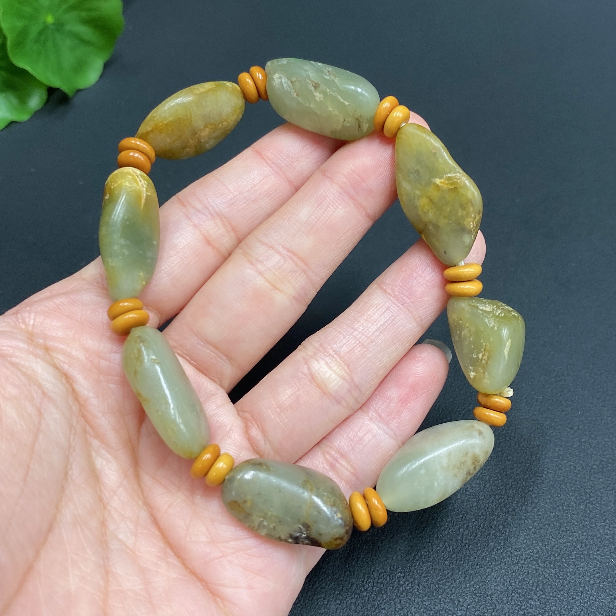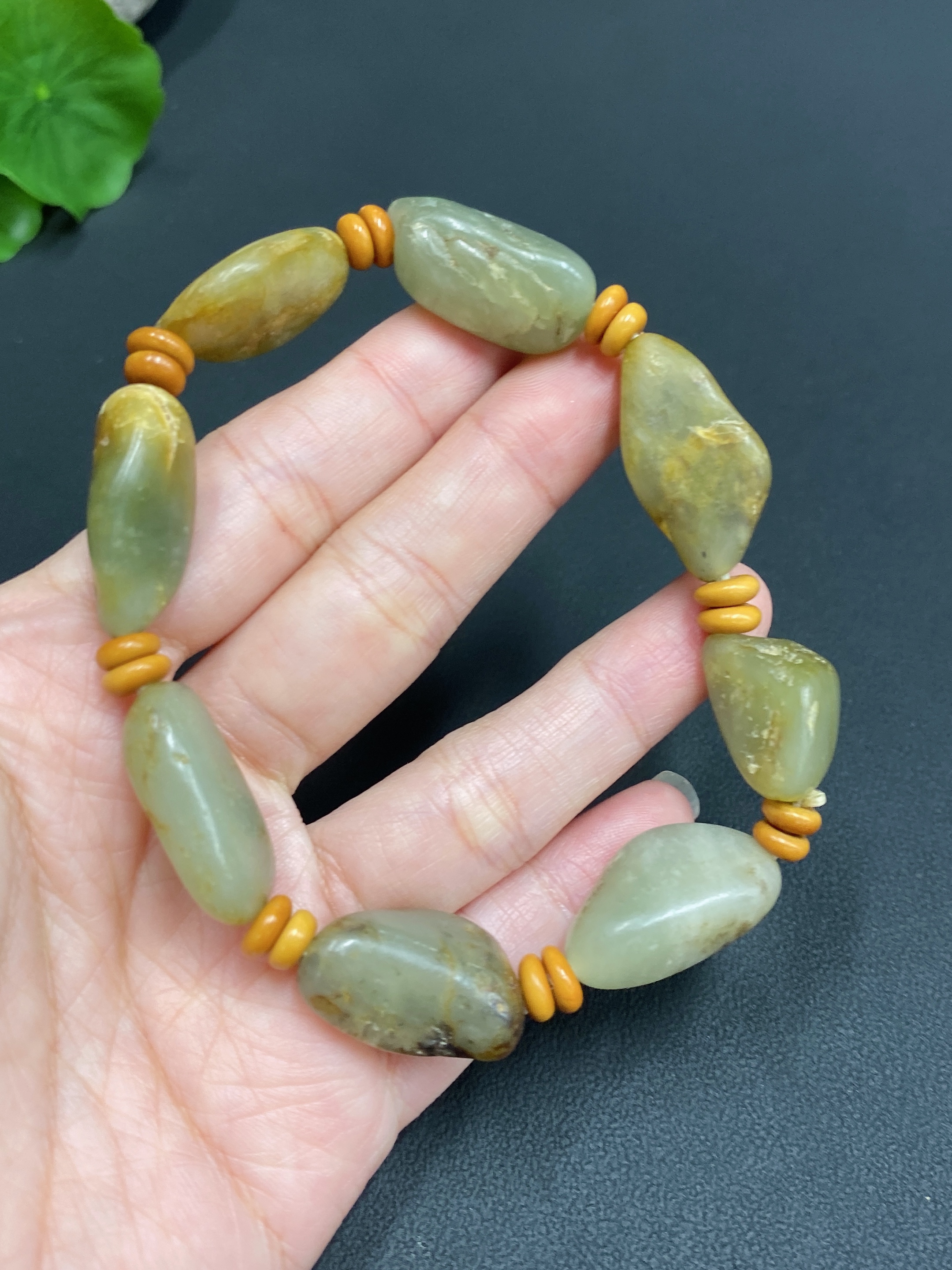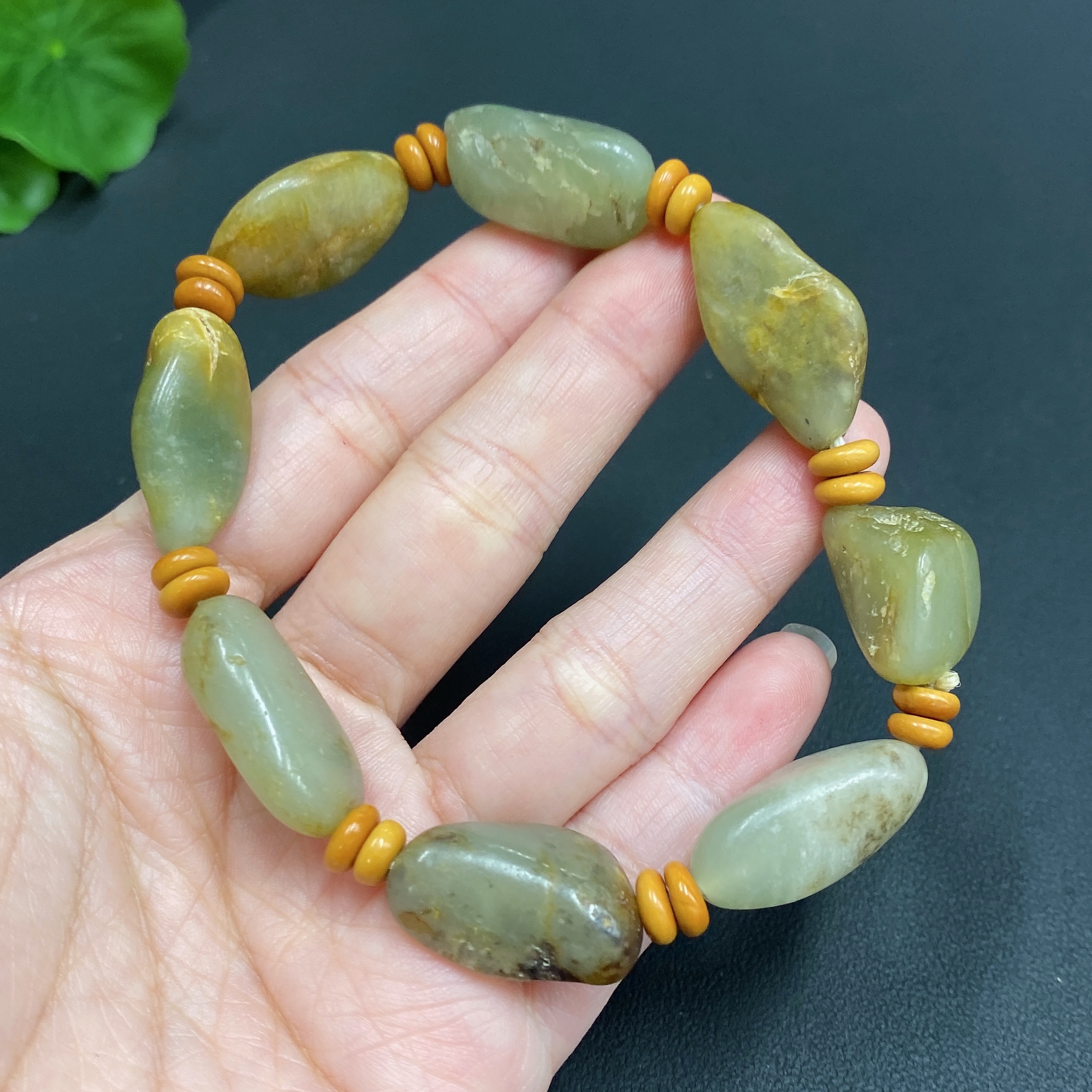 Hetian Jade Bracelet, Undetermined Skin Color Origin, Spacers Not Hetian Jade, Contains Other Mineral Components, Total Weight Approx. 38.3g