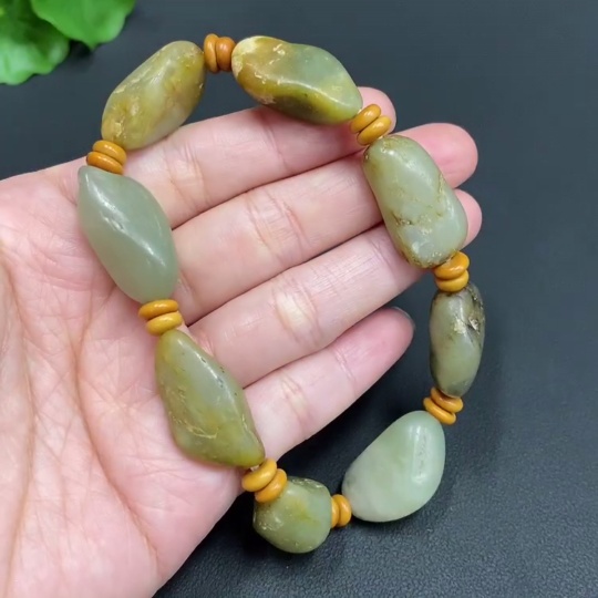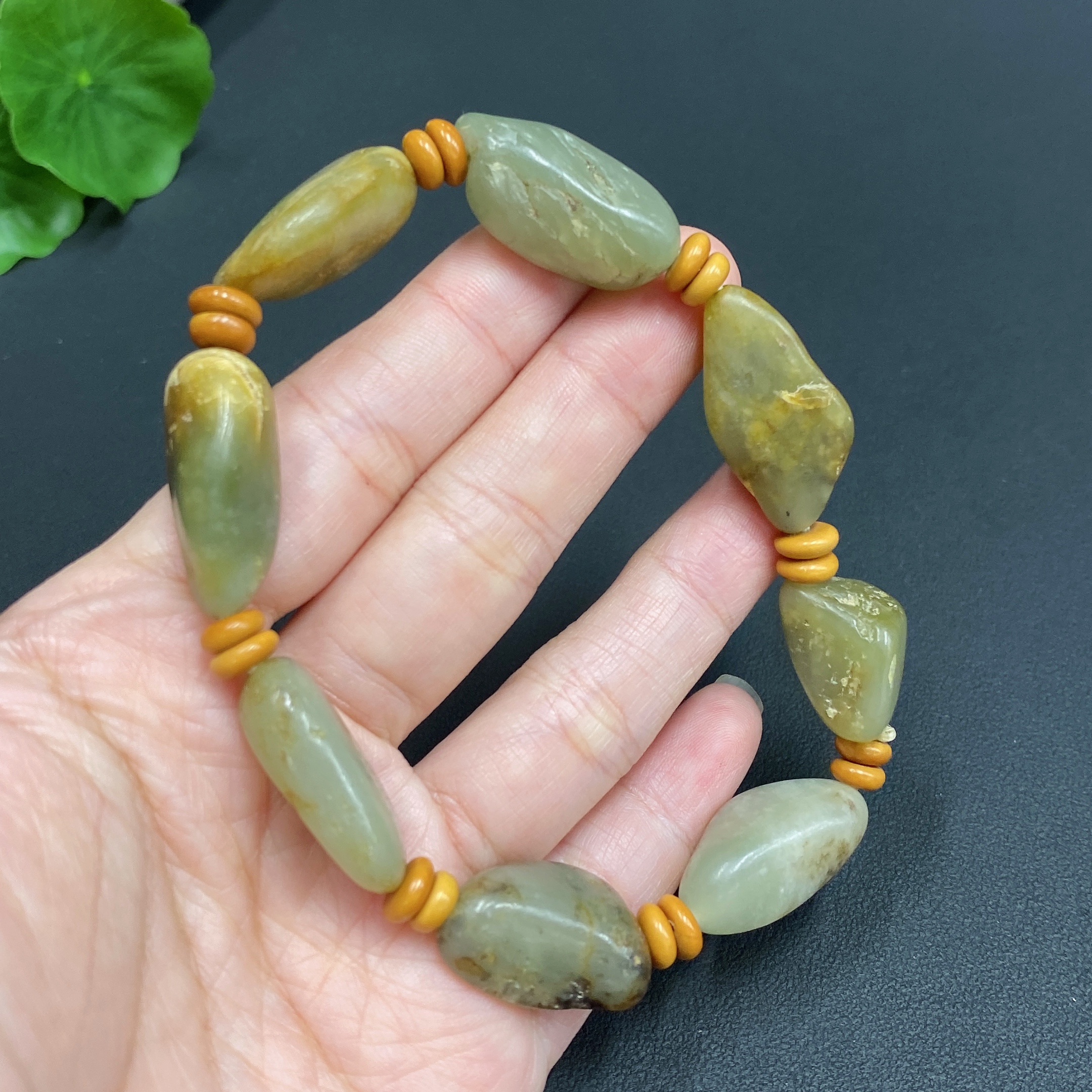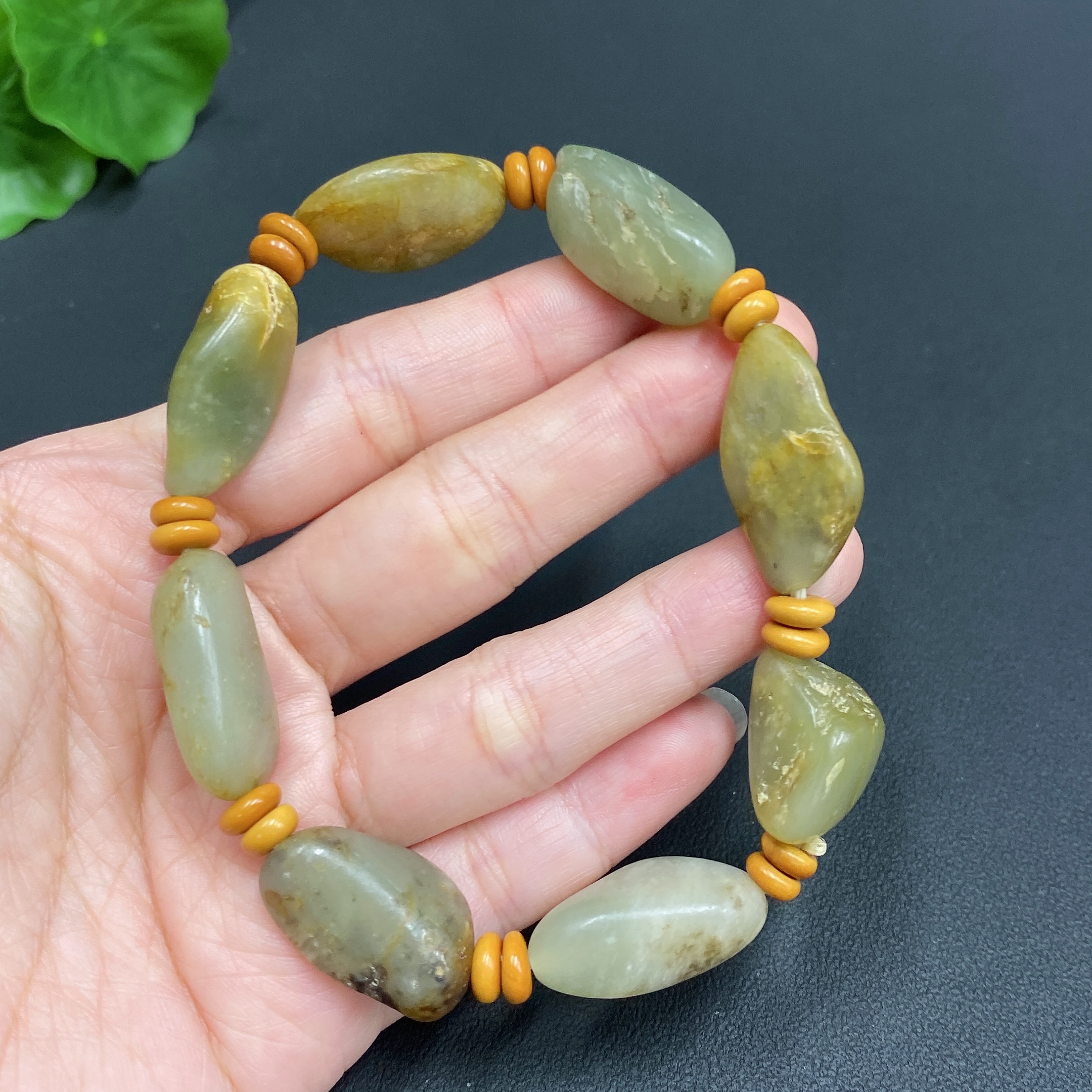 Hetian Jade Bracelet, Undetermined Skin Color Origin, Spacers Not Hetian Jade, Contains Other Mineral Components, Total Weight Approx. 38.3g