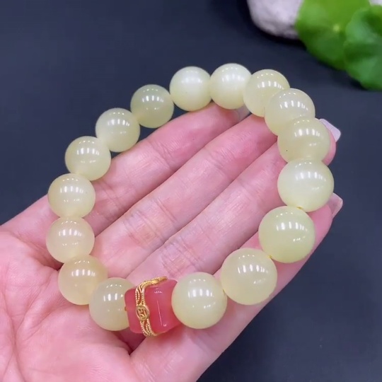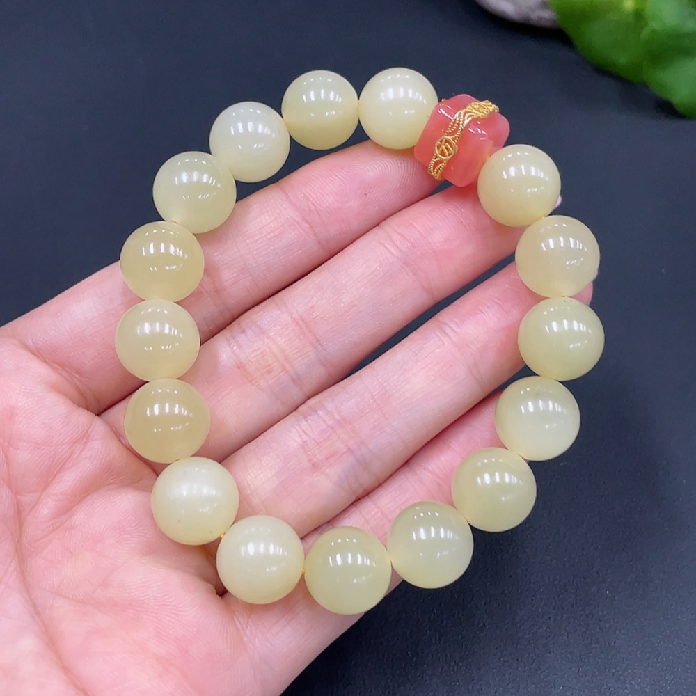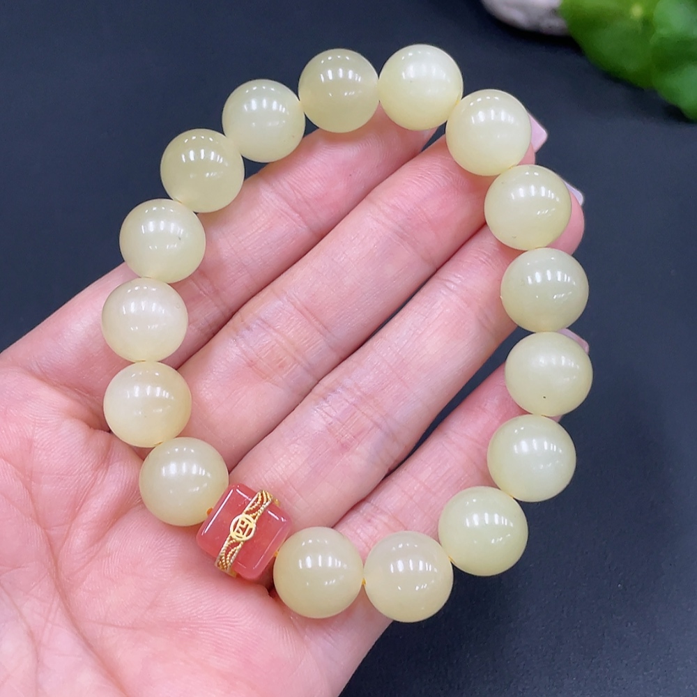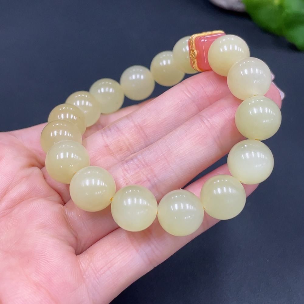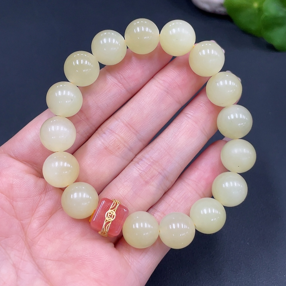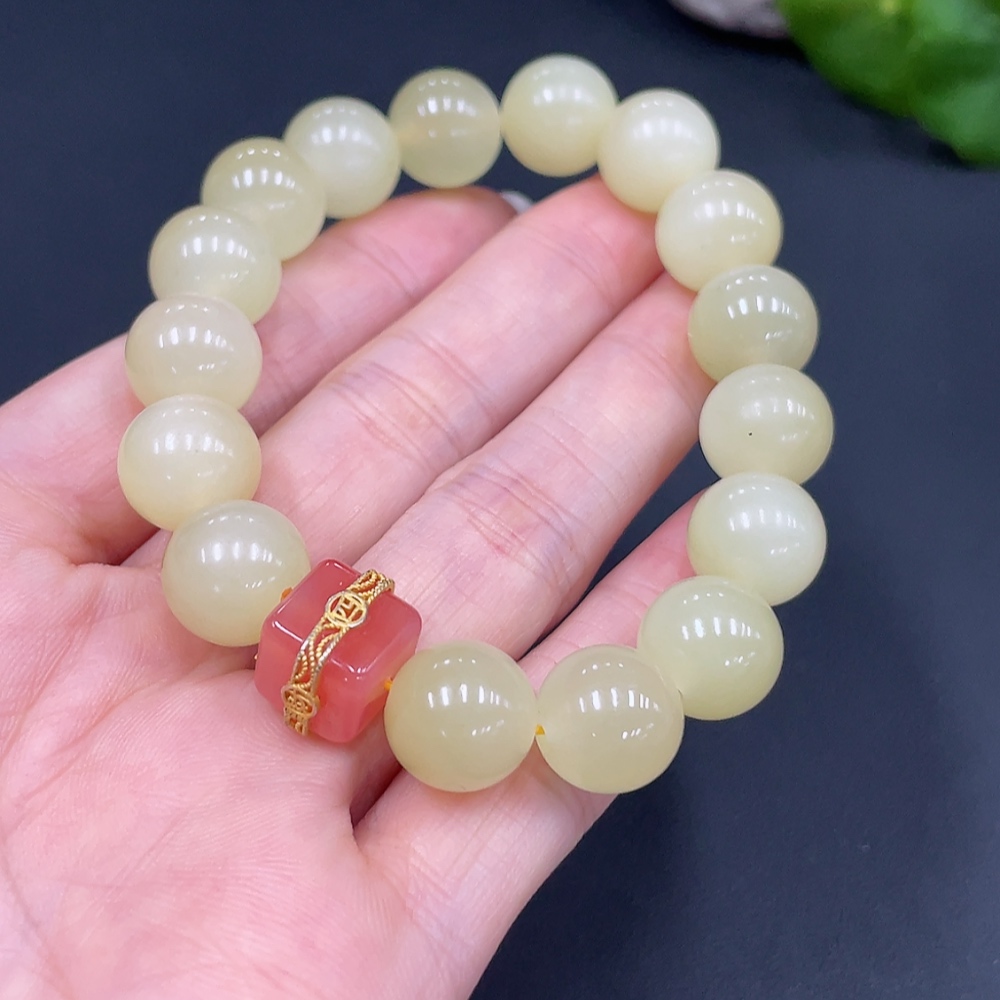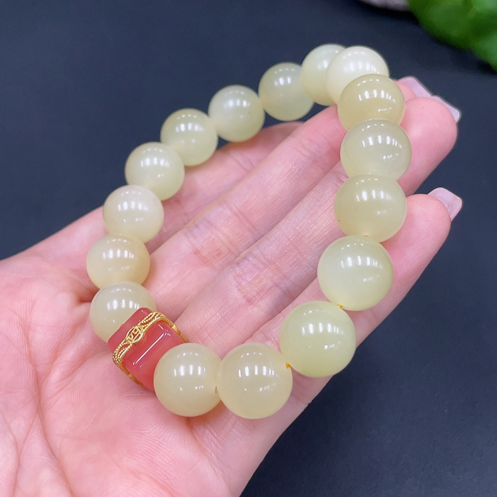 Hetian Jade Beaded Bracelet, Approx. 12mm, Total Weight Approx. 46.6g, Non-Hetian Jade Beads Included