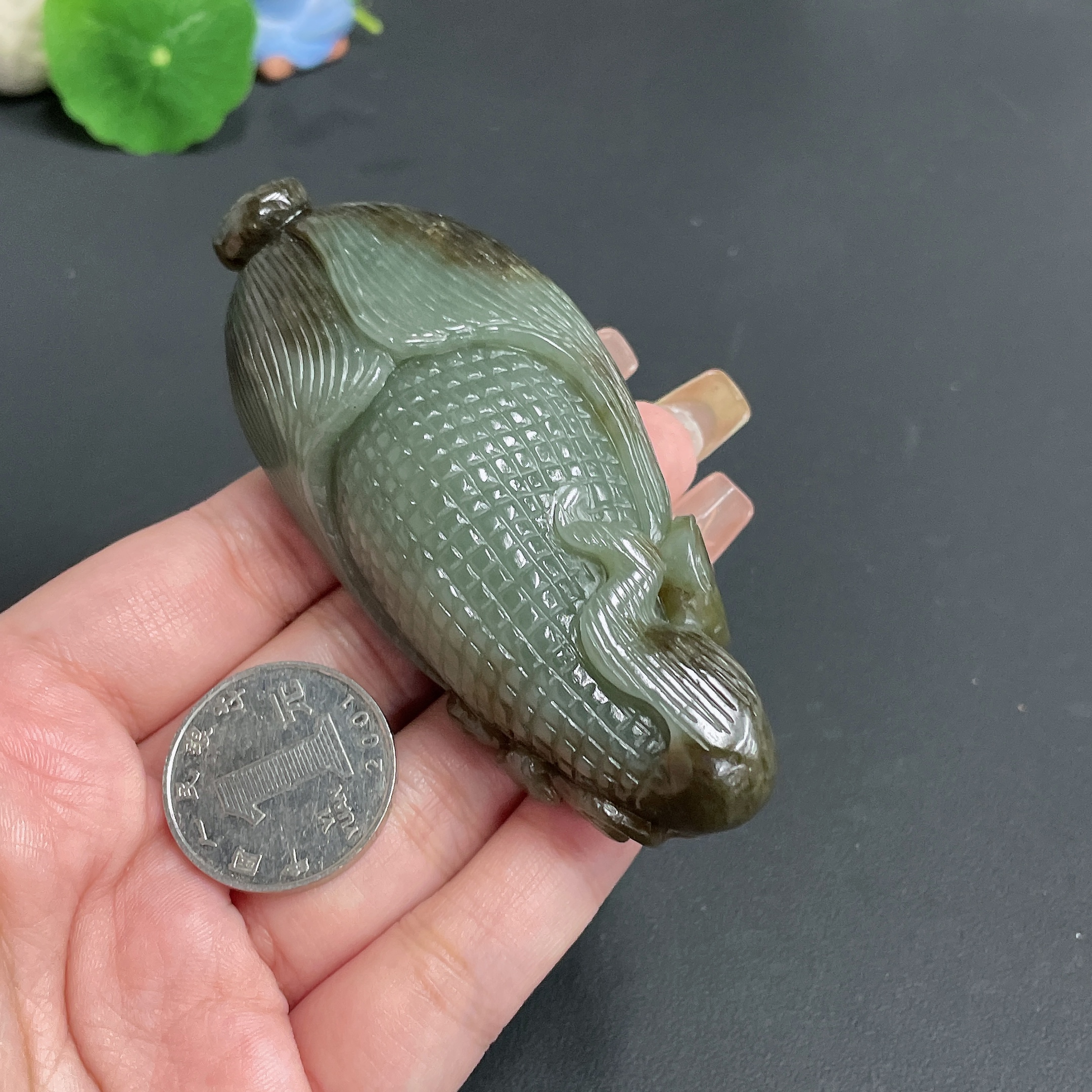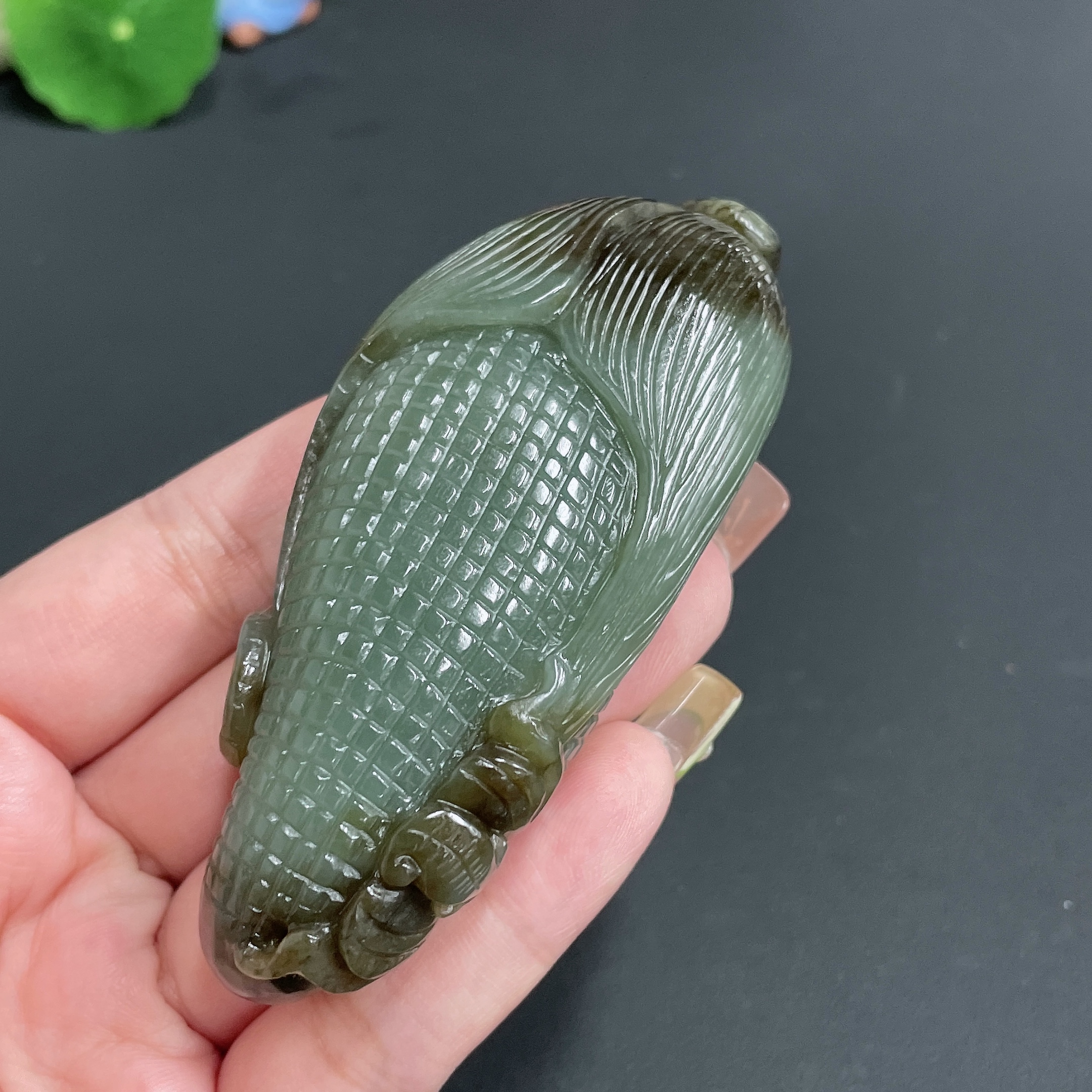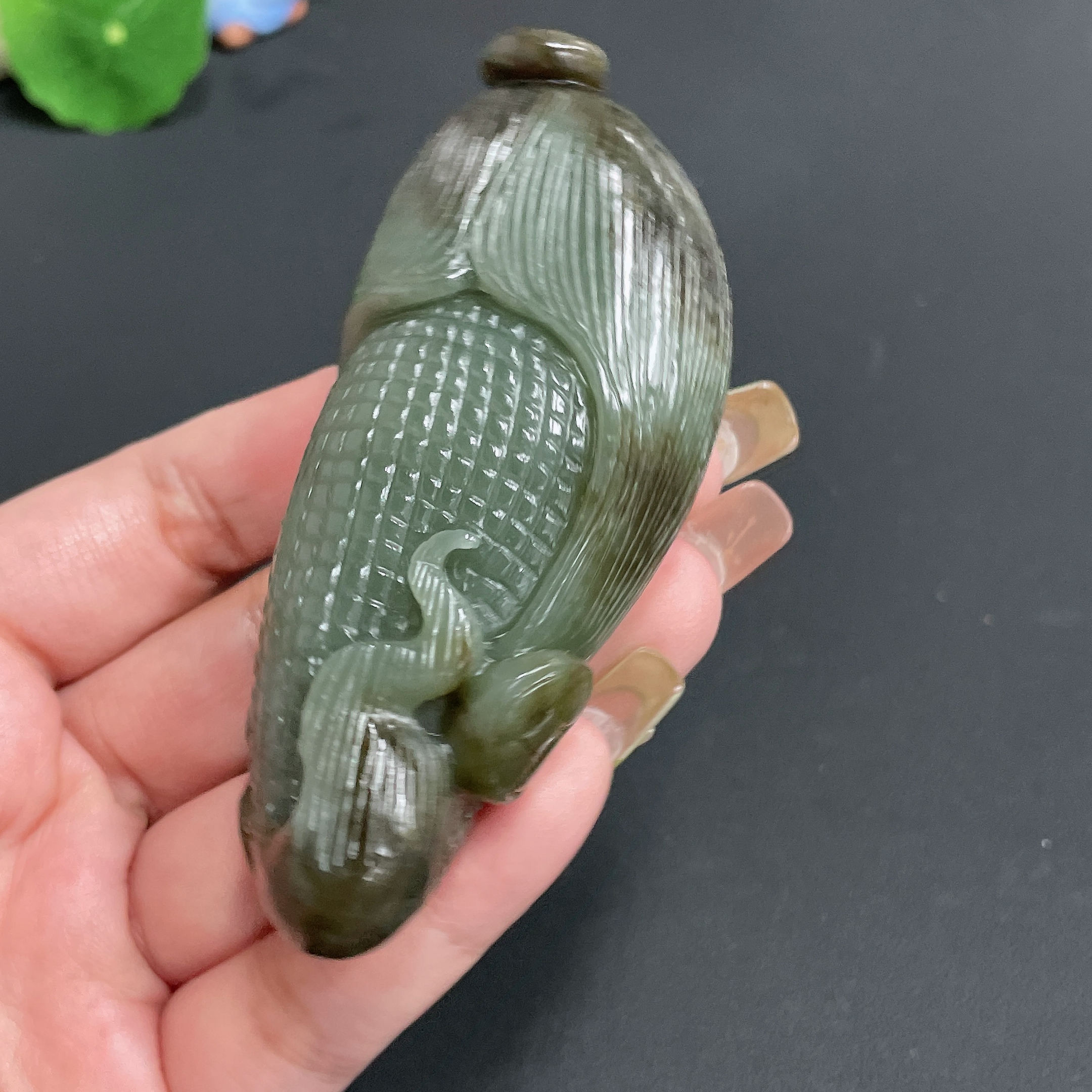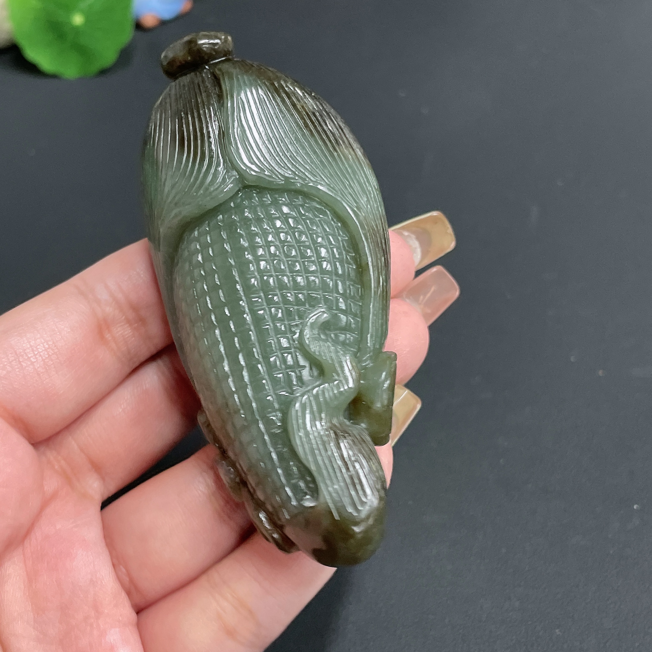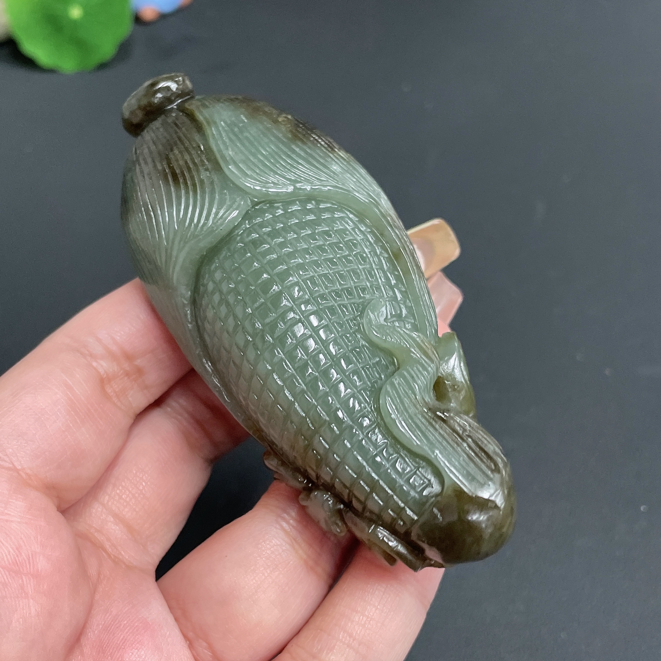 Hetian Jade Handheld Piece 'Many Sons, Many Blessings' Total Weight Approx. 130.16g