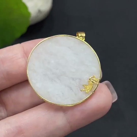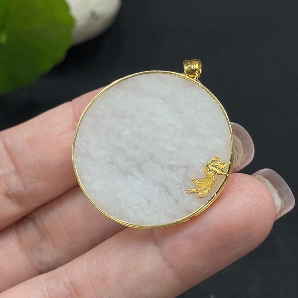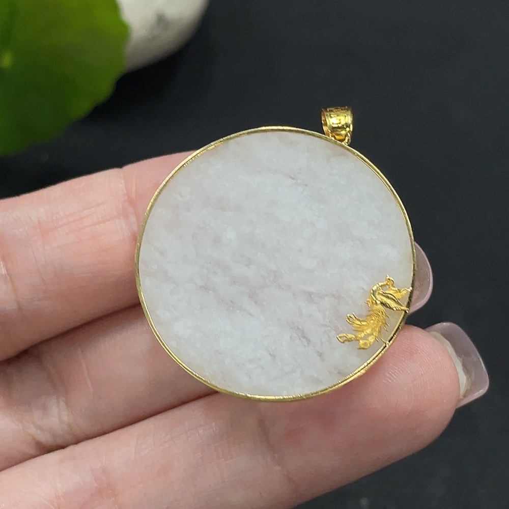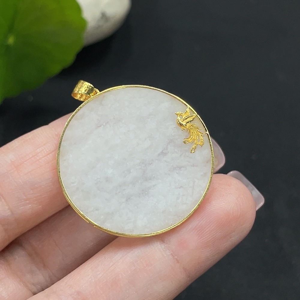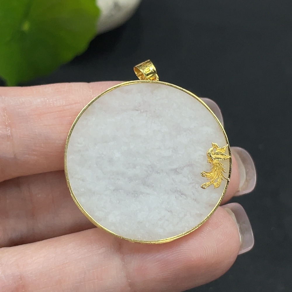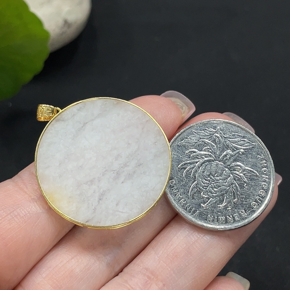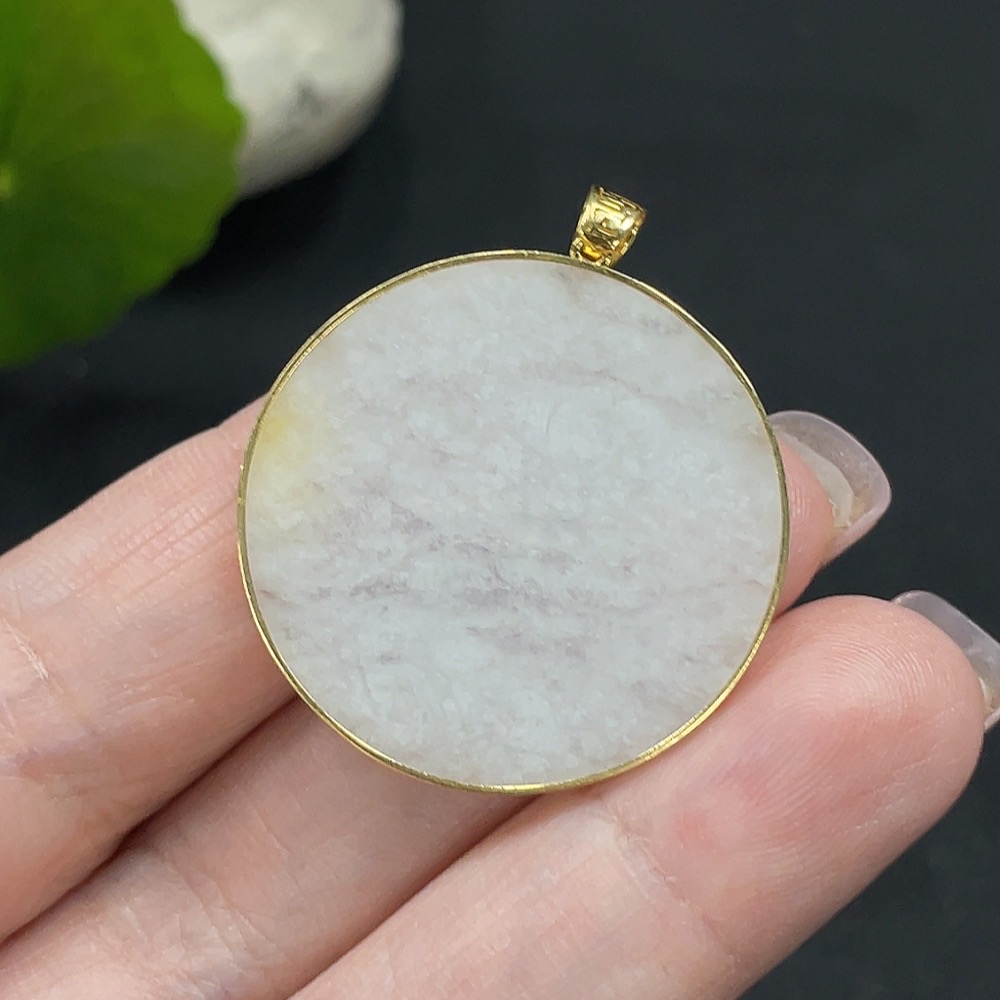 Jadeite Plain Pendant with 18K Gold Setting, Total Weight Approx. 3.8g