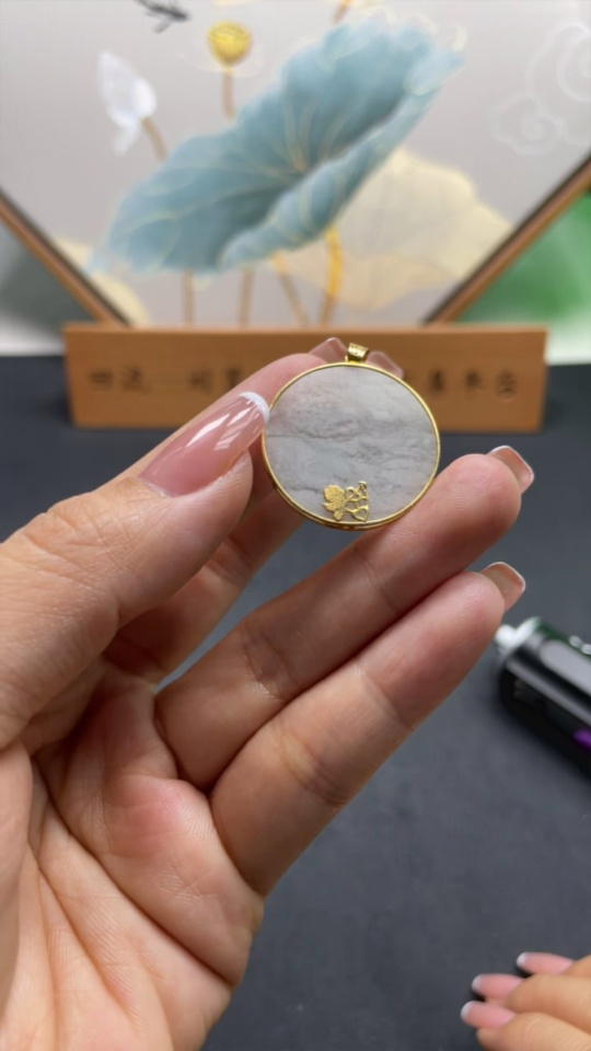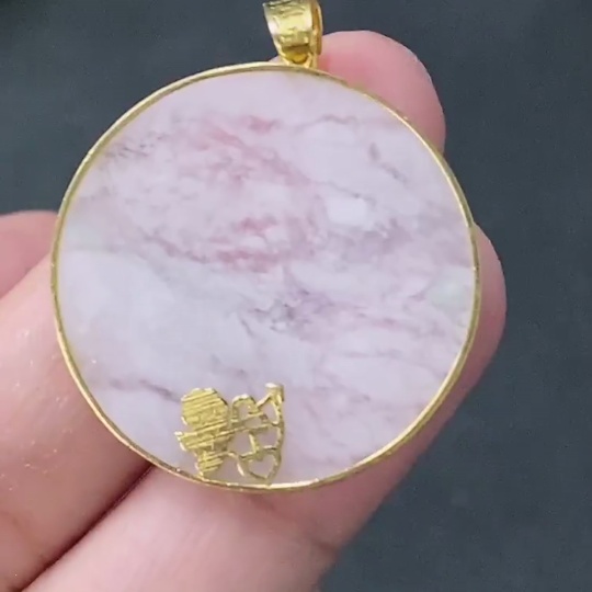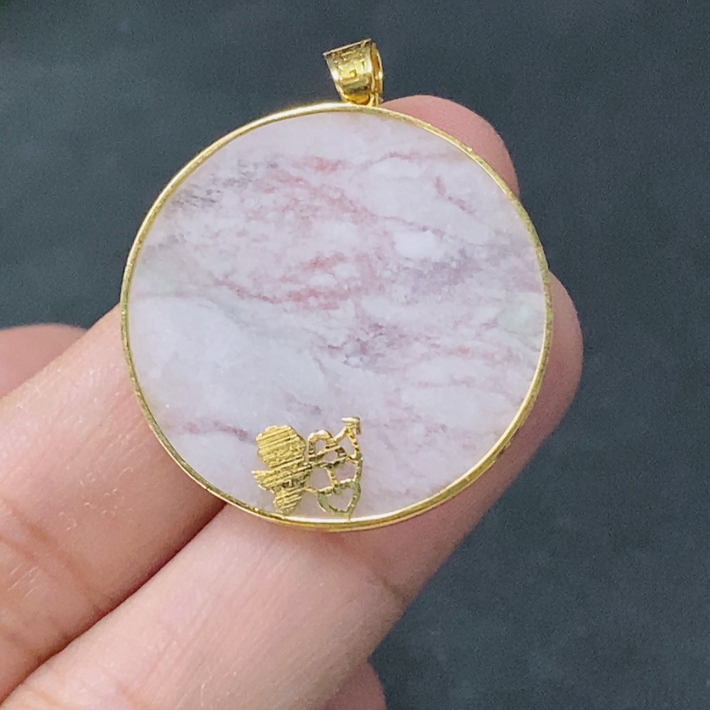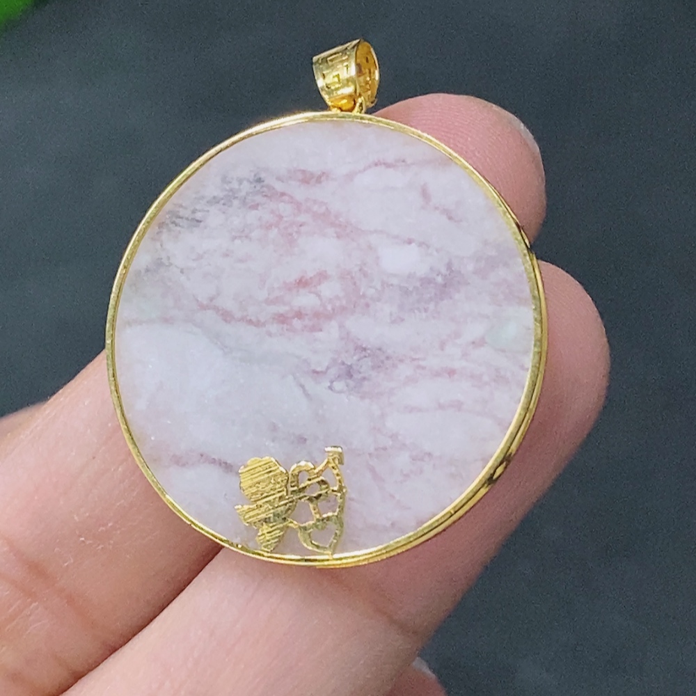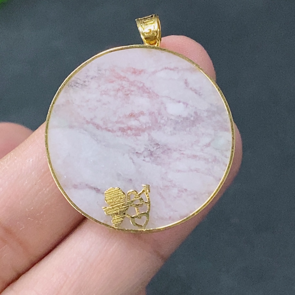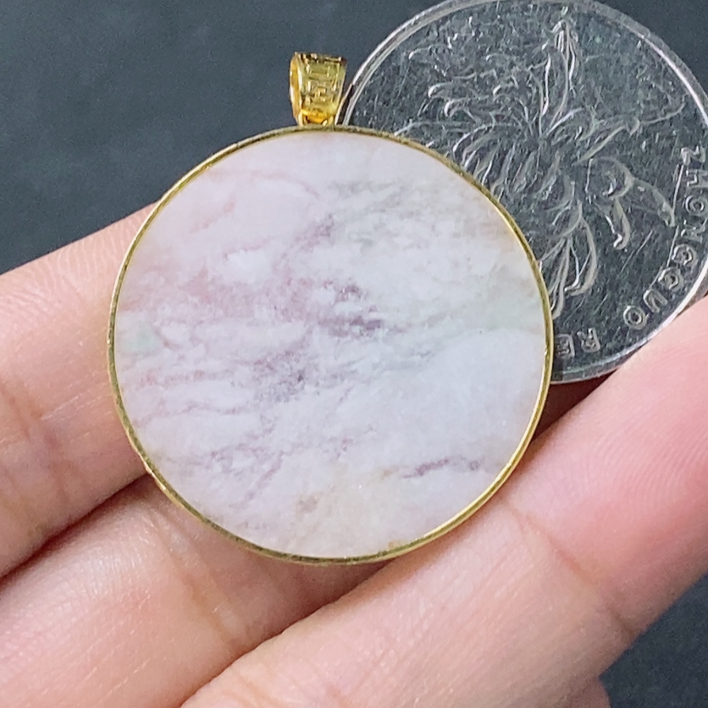 Jadeite Plain Pendant Inlaid with 18k Gold, Total Weight Approx. 3.3g