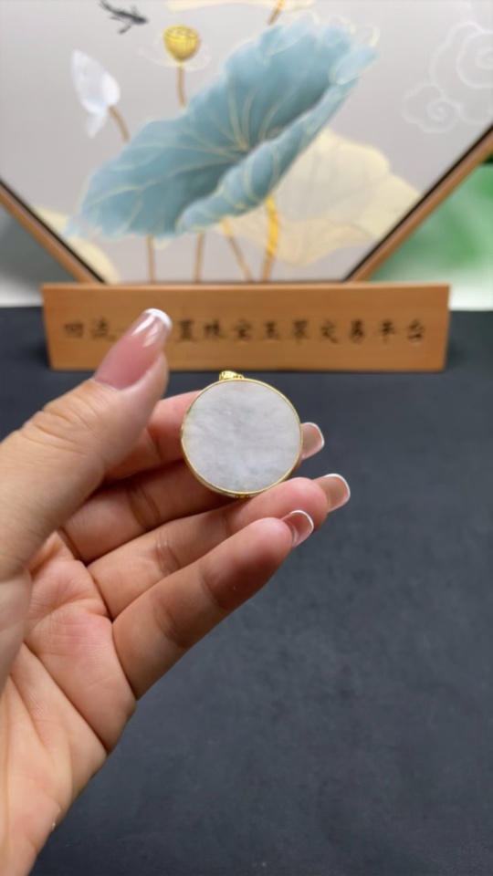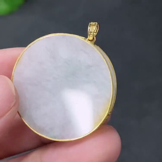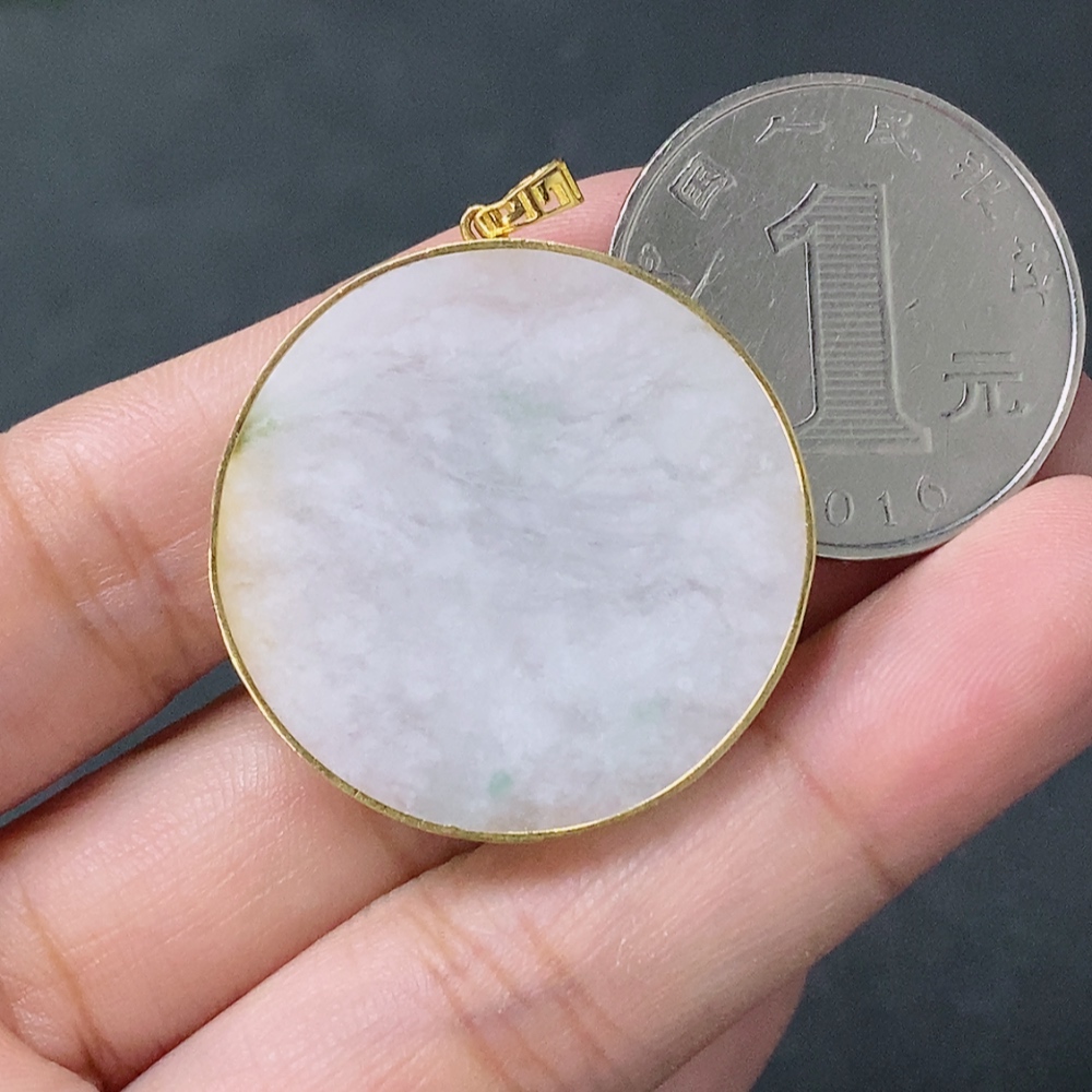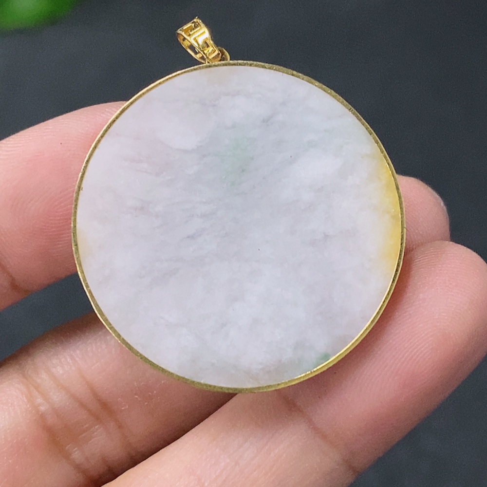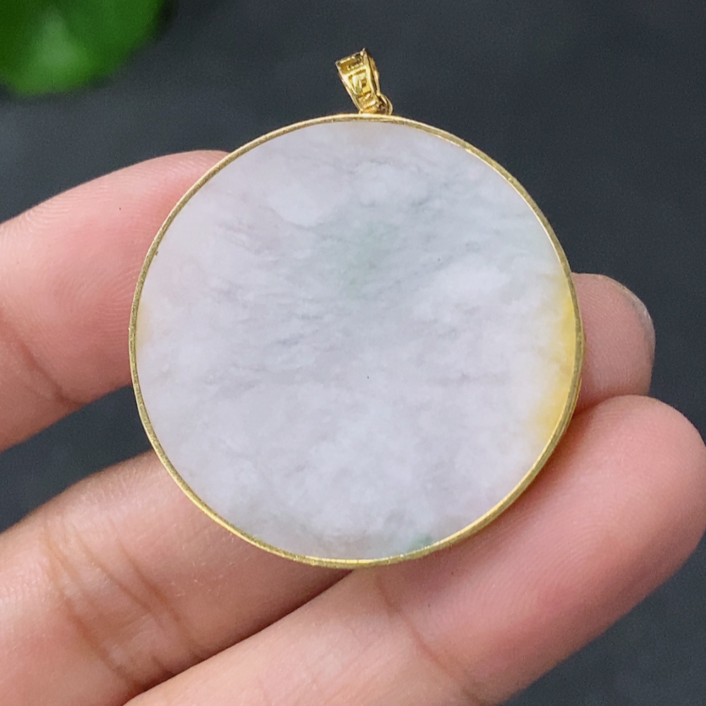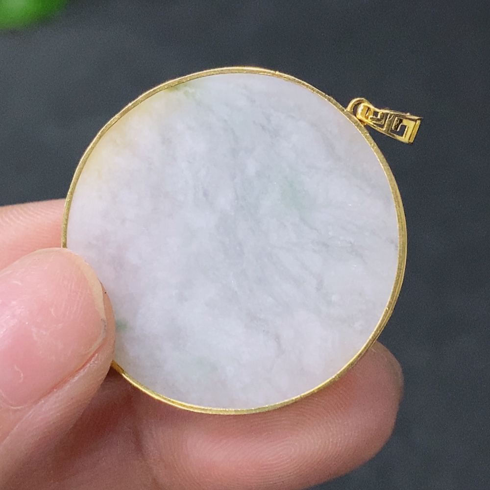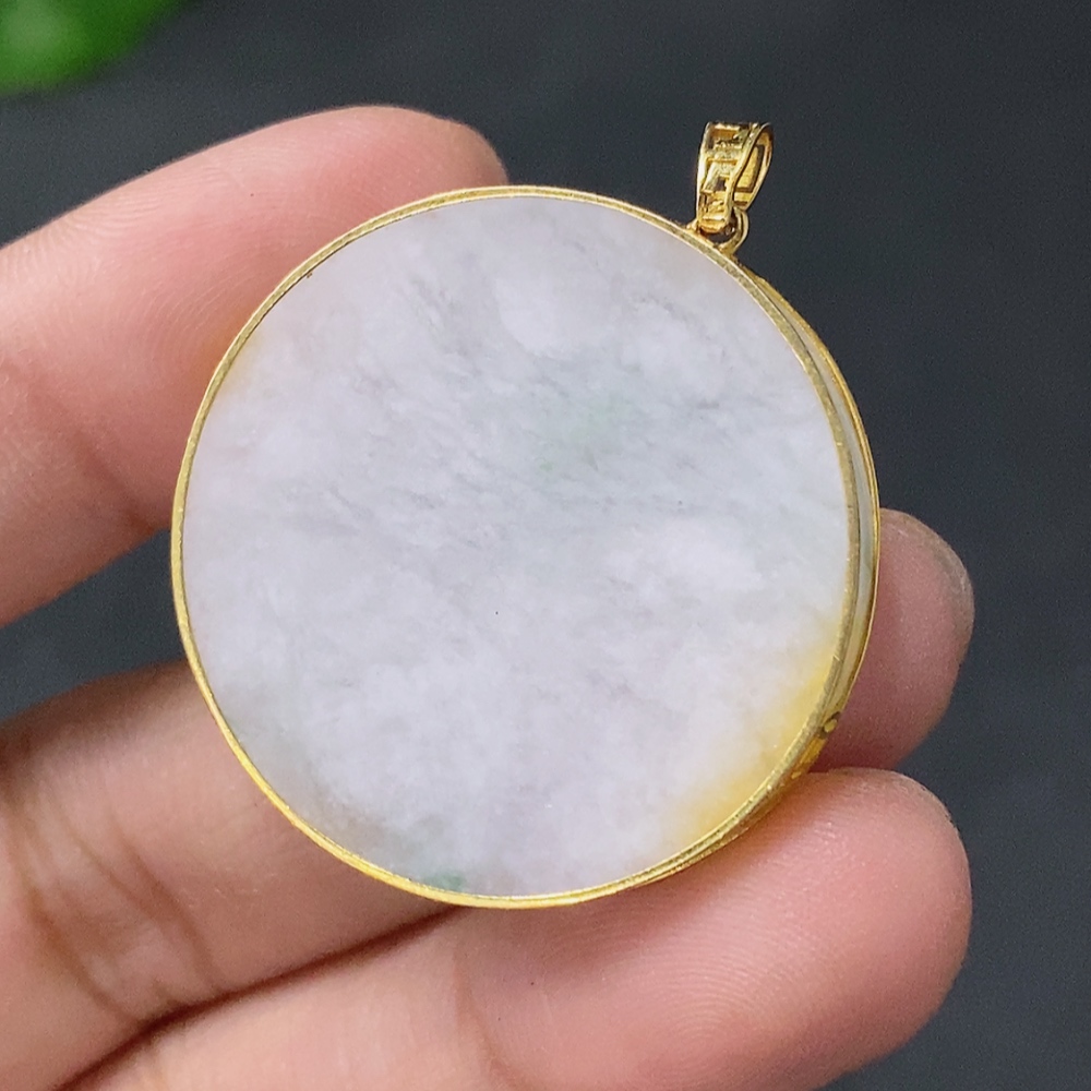 Jadeite Plain Pendant with 18K Gold Inlay Total Weight Approx. 7.8g