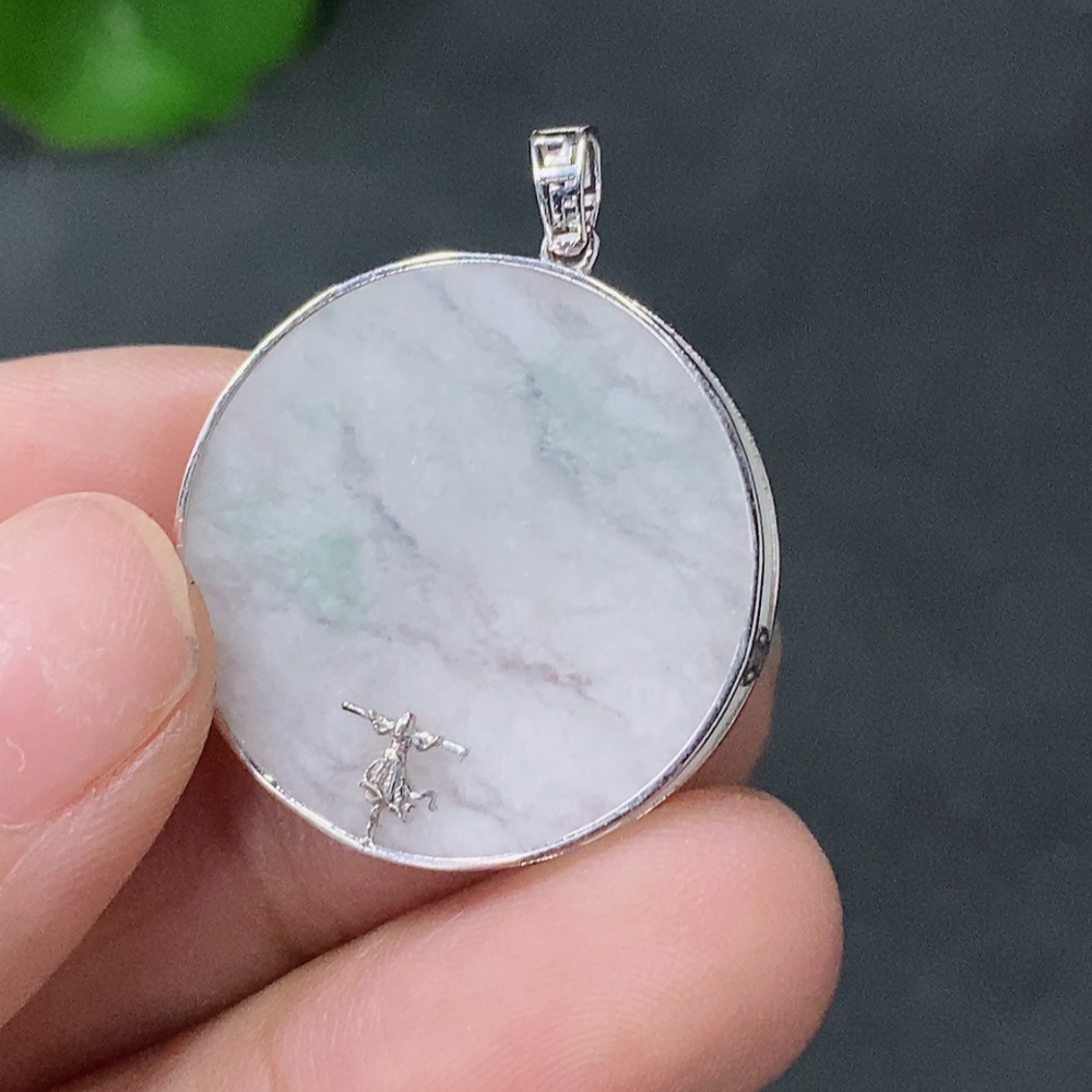 Jadeite Plain Pendant with 18k Gold Inlay, Total Weight Approx. 3.9g