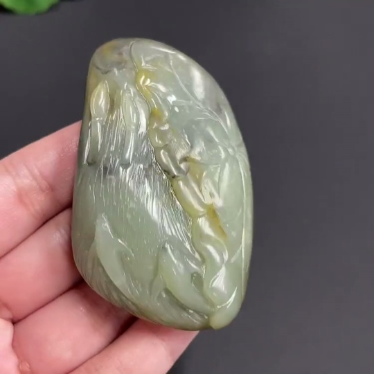 Hetian Jade Seed Material Handheld Piece 'Continuous Abundance' Total Weight Approx. 112.27g Skin Color Origin Undetermined