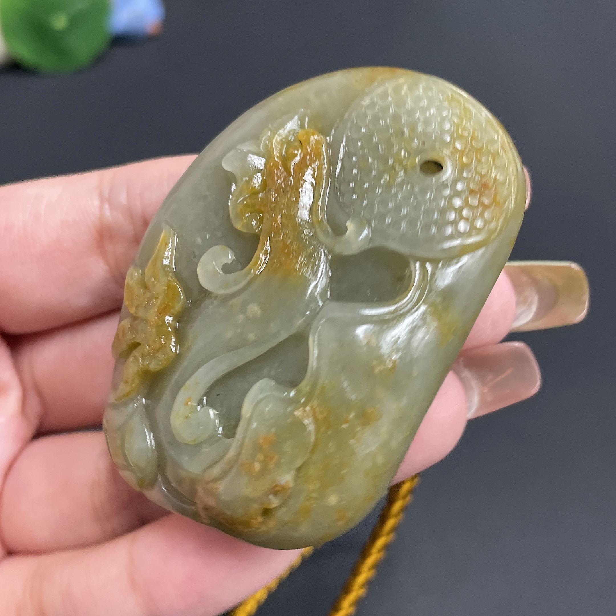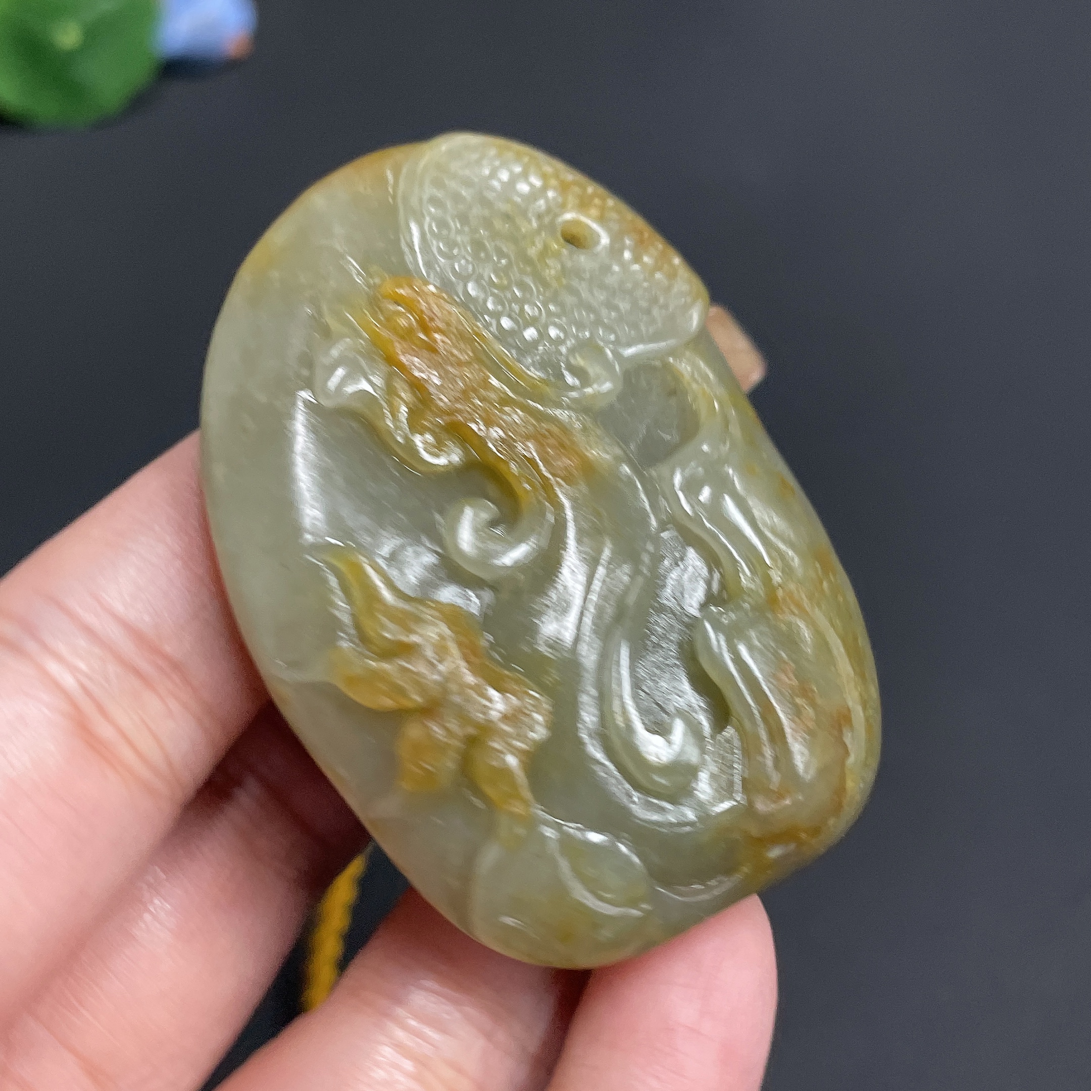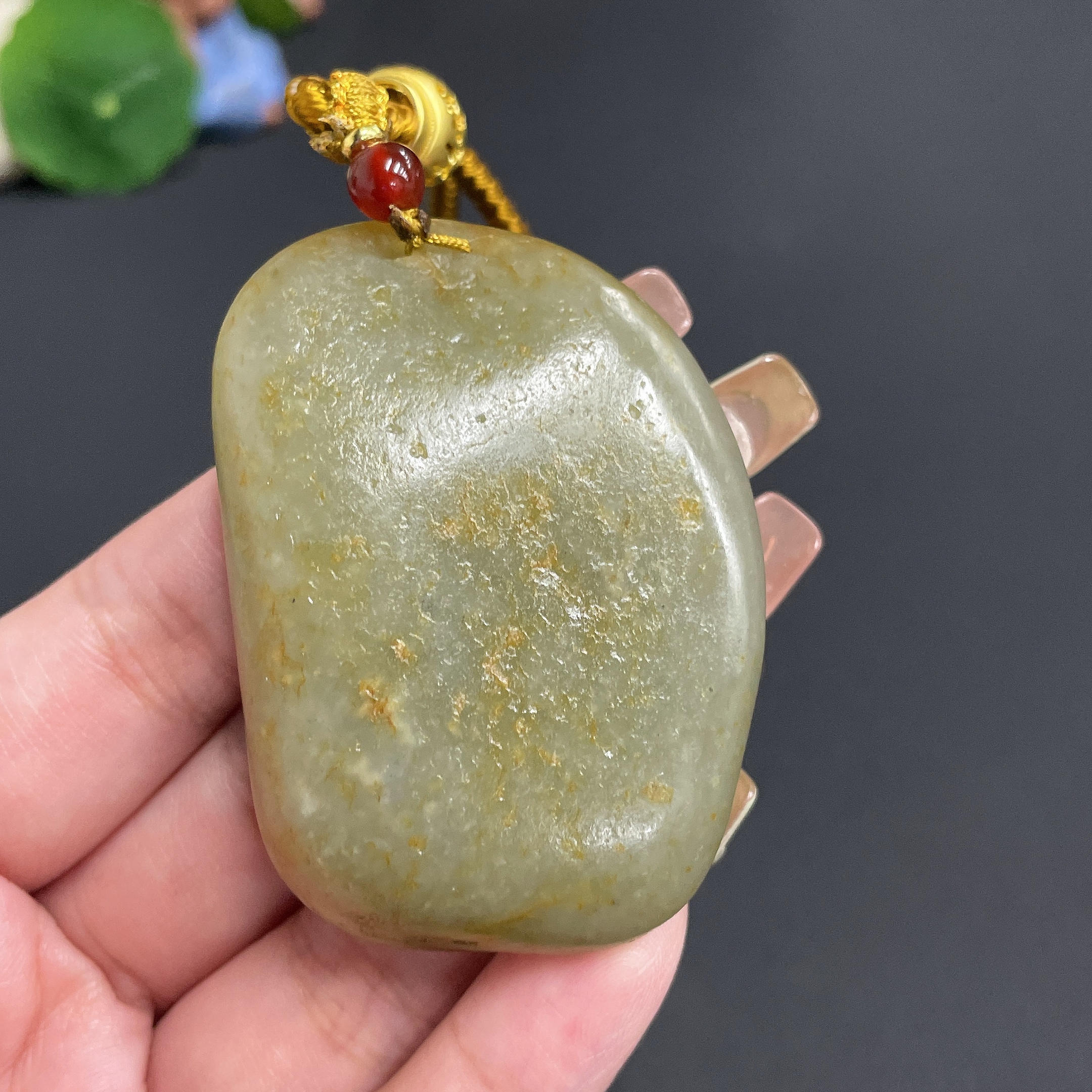 Hetian Jade Seed Material Handheld Piece Antique Style with Cord Total Weight 77.03g Undetermined Skin Color Origin