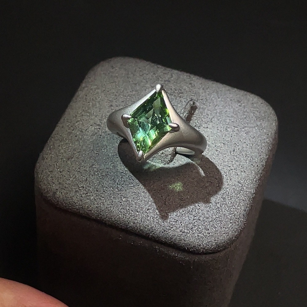 Trezaar - Tourmaline Inlaid Ring Pt950 Size 12 Total Weight Approx. 11.23g Mark 3.44ct