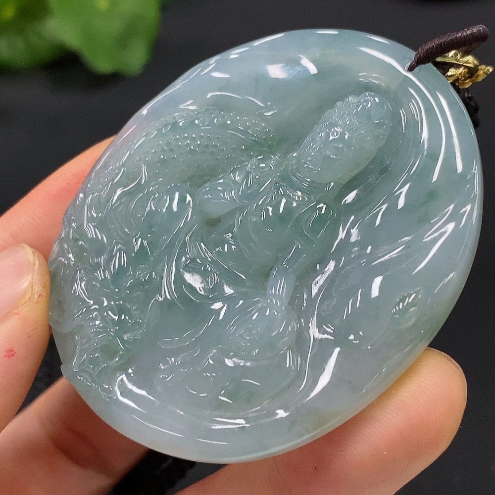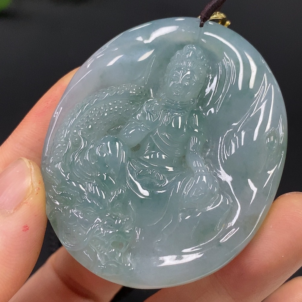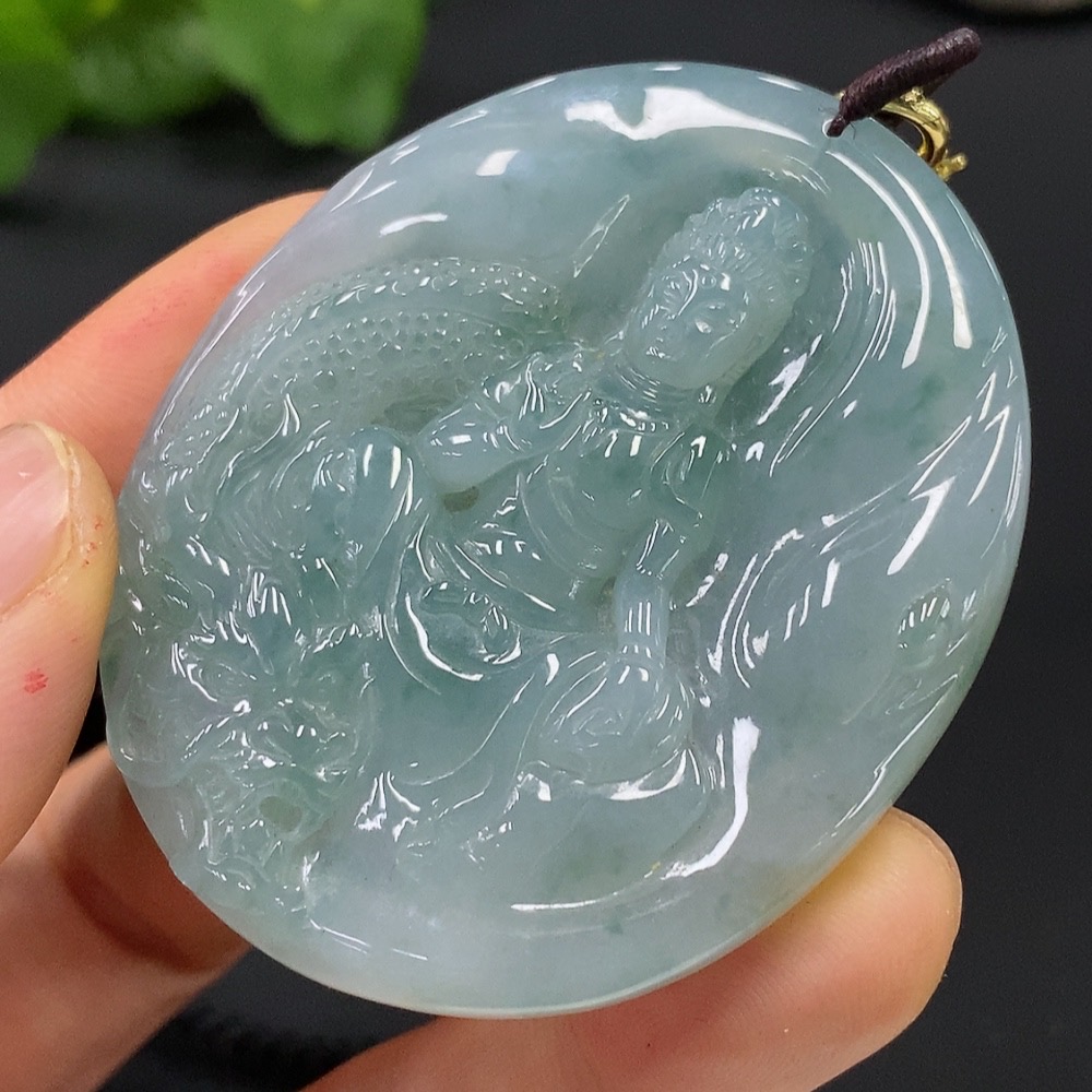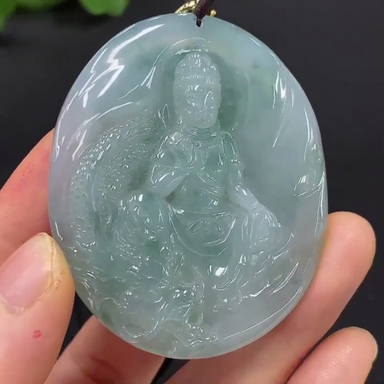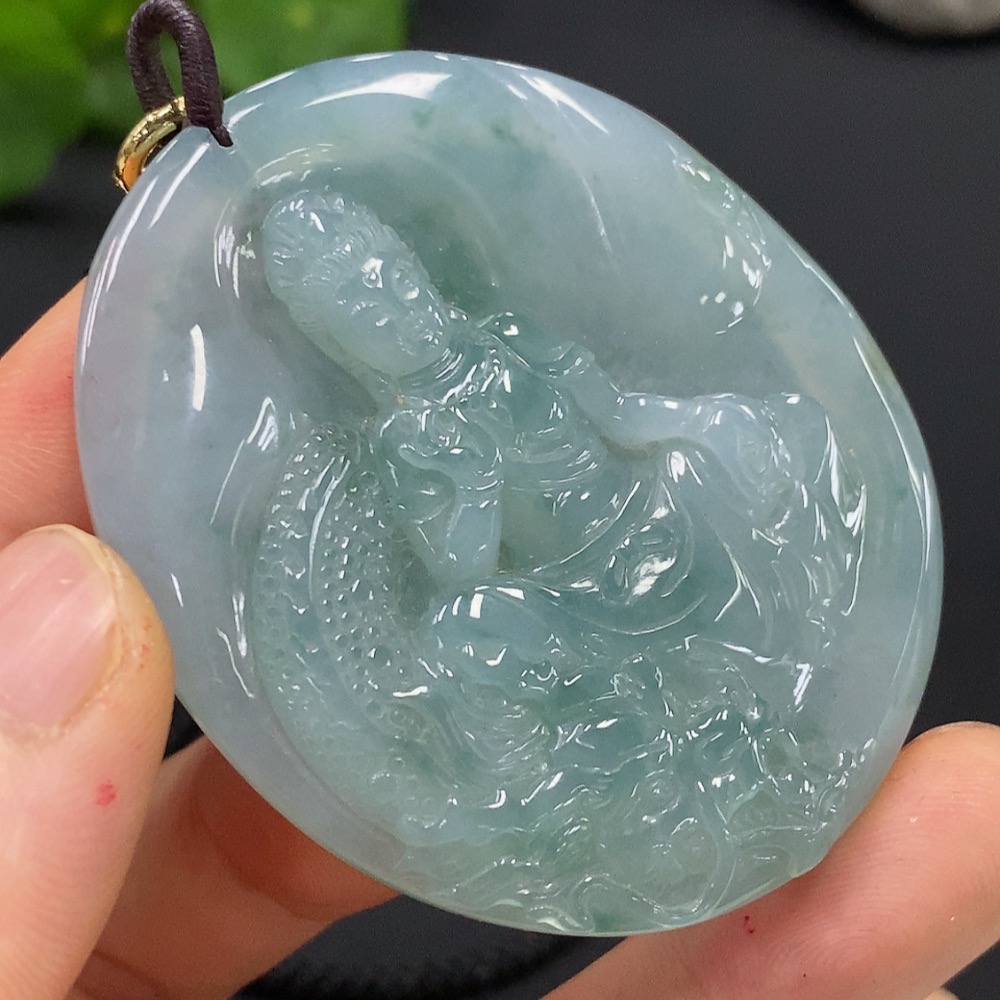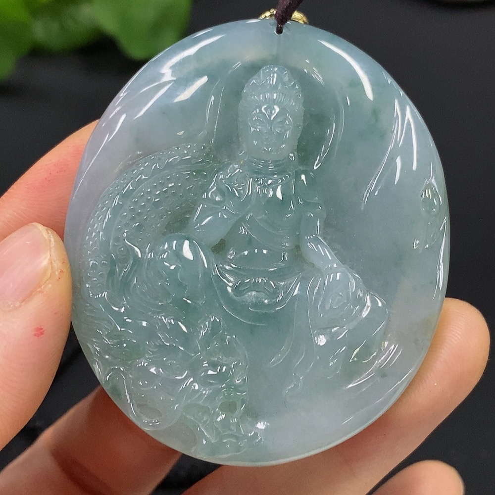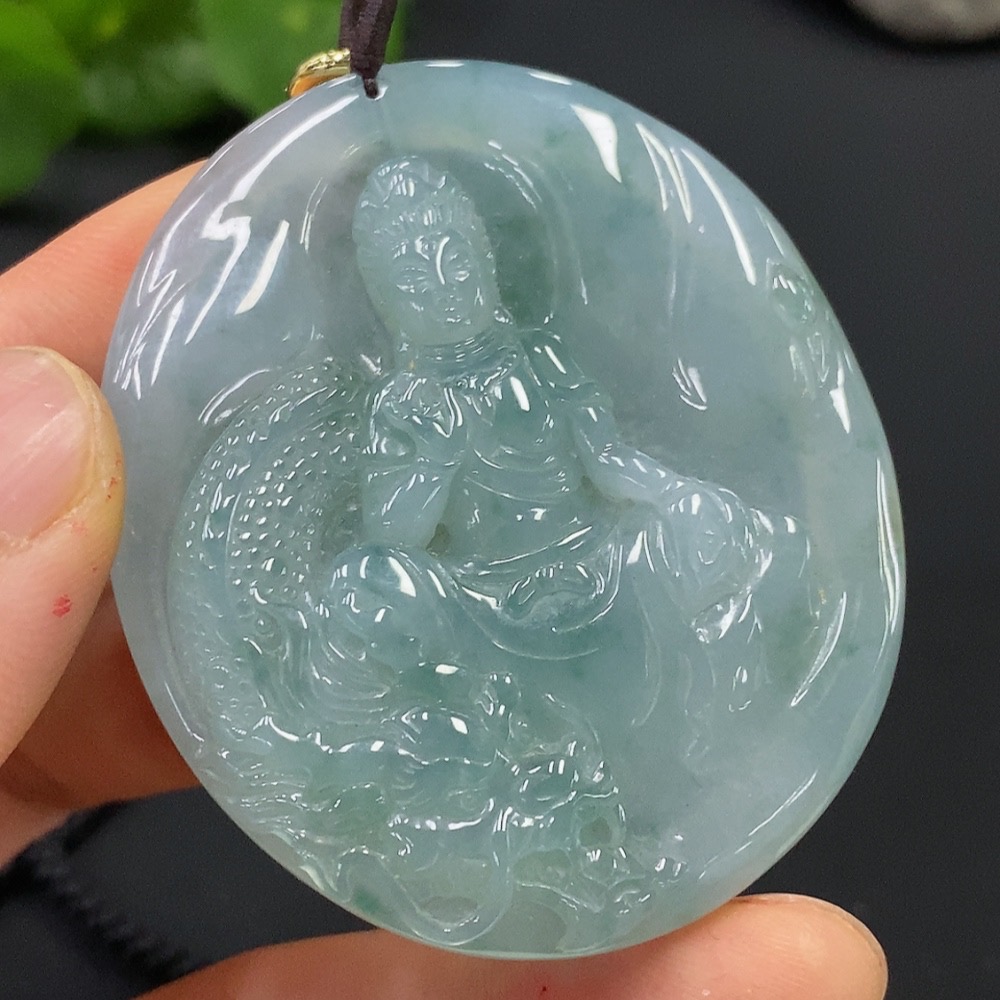 Jadeite Dragon-Guarding Guanyin Pendant (Non-Gold-Inlaid)