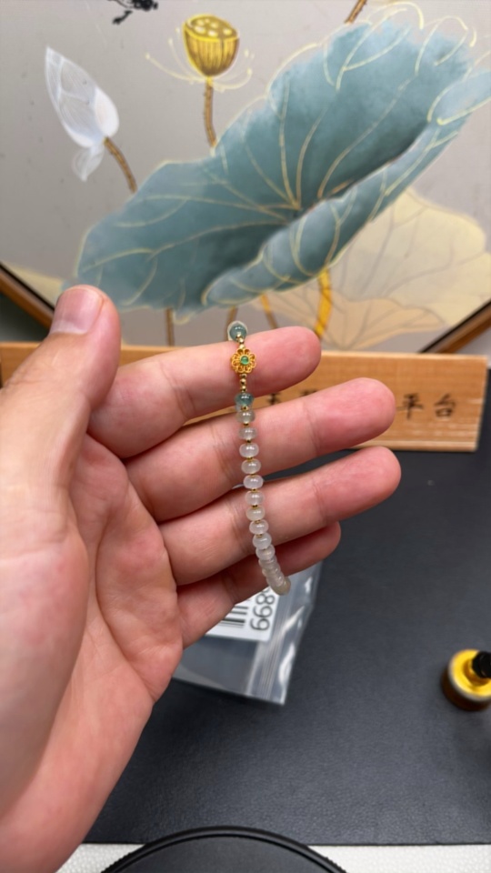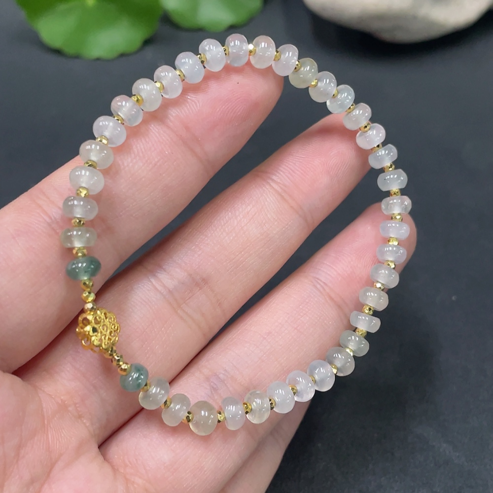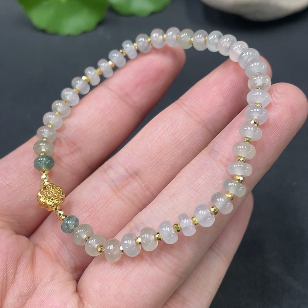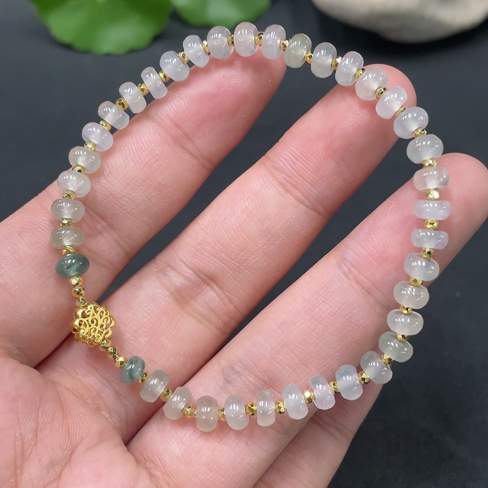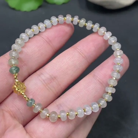 Jadeite Bracelet 18k Gold Inlaid Total Weight Approx.6.35g Size 5mm