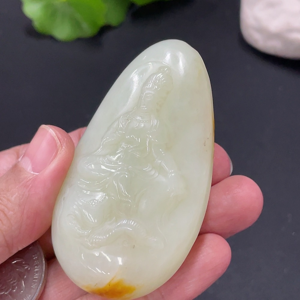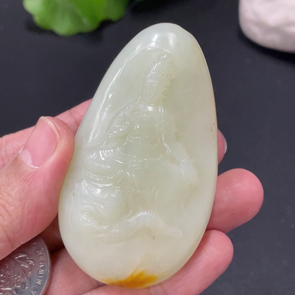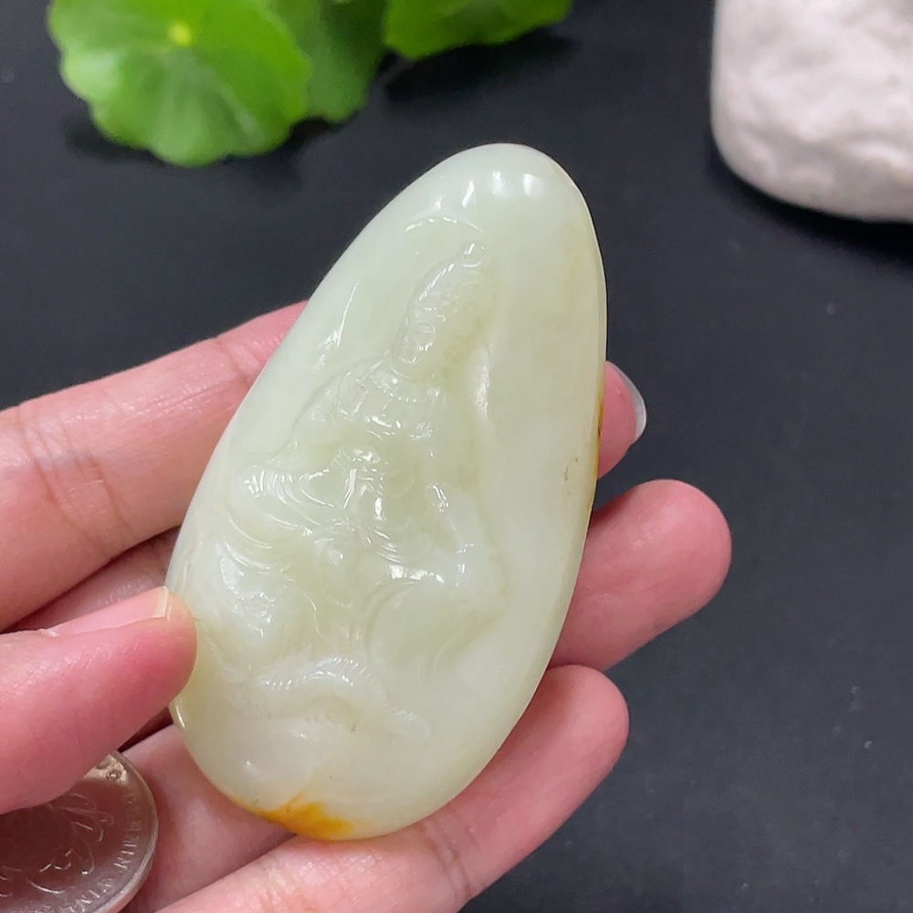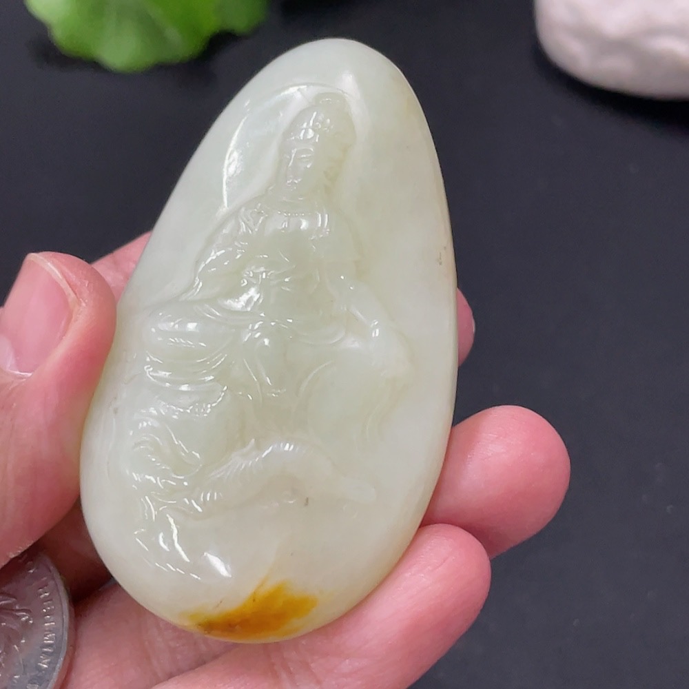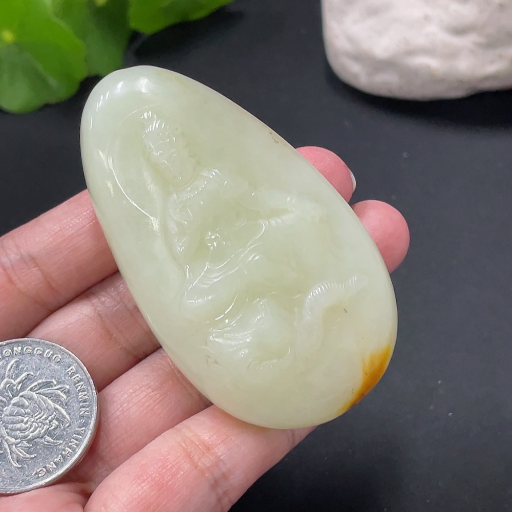 Hetian Jade Samantabhadra Pendant, approx. 70.48g, undetermined skin color origin