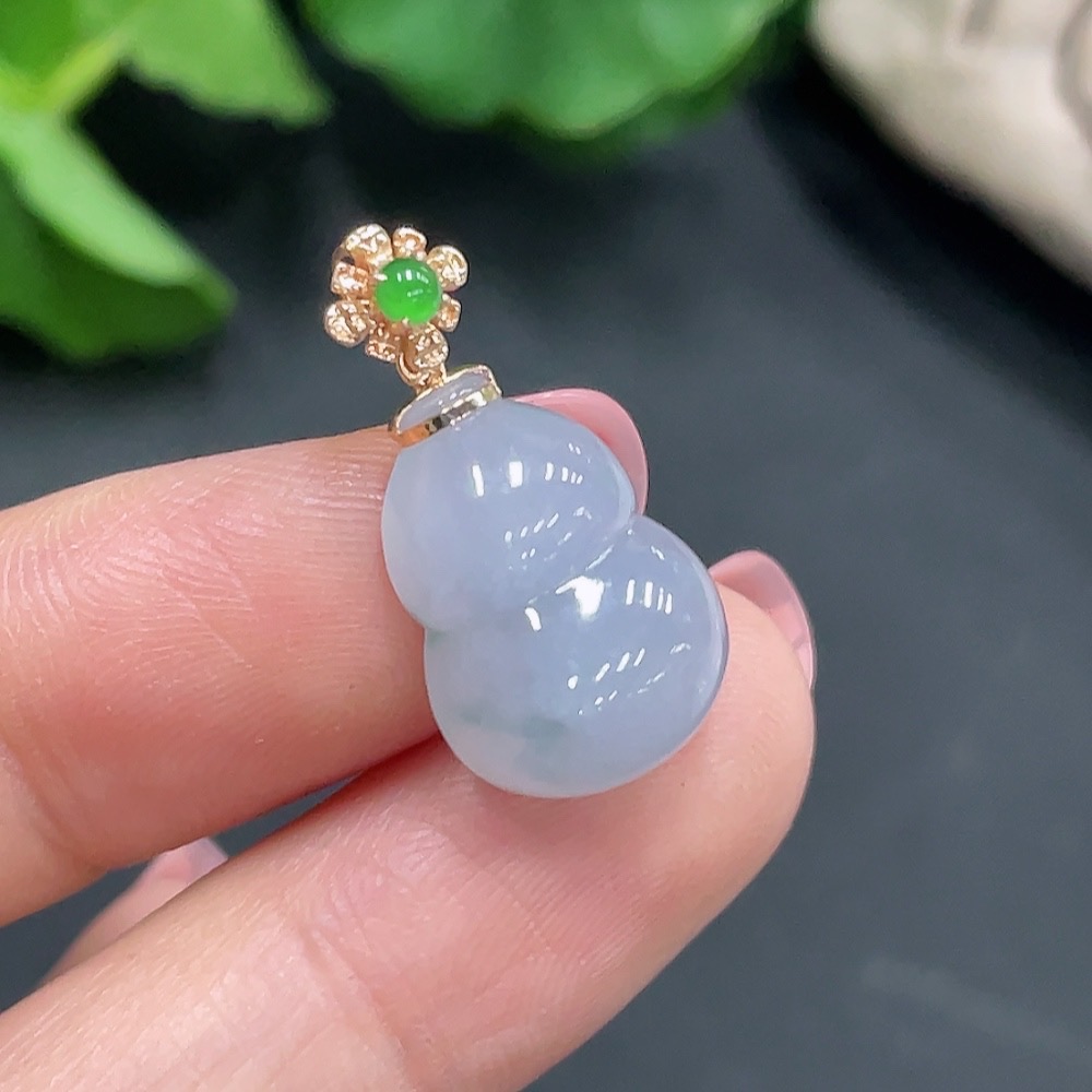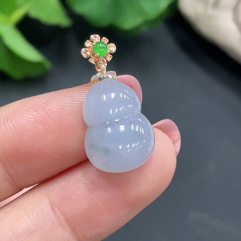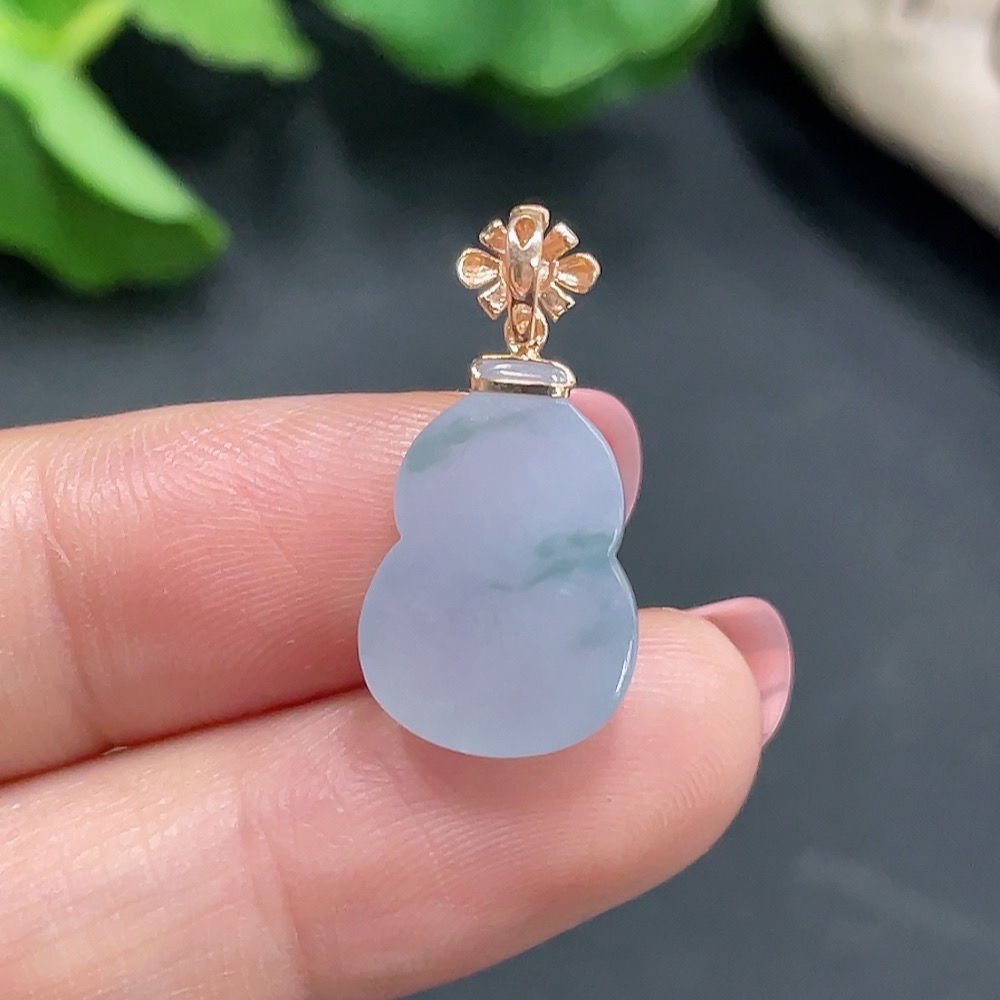 Jadeite Gourd Pendant with 18K Gold Clasp, Total Weight 2.668g