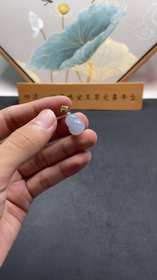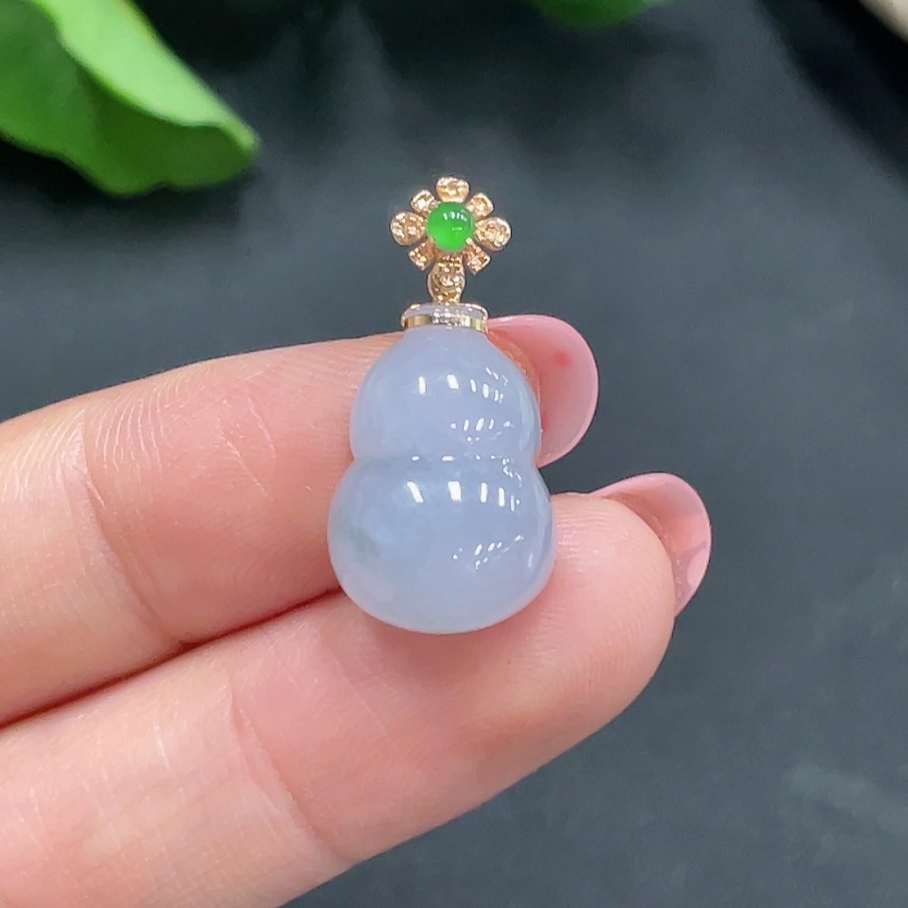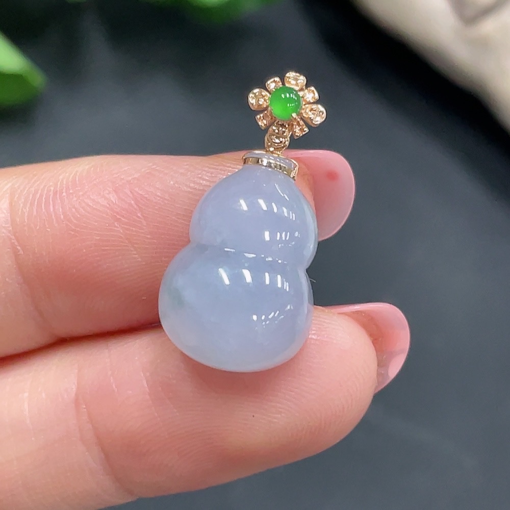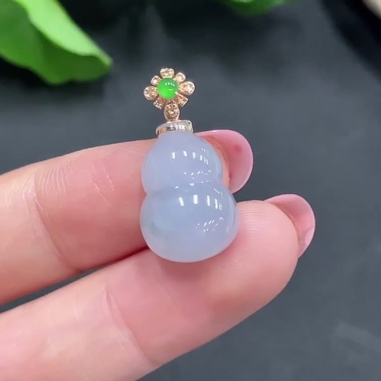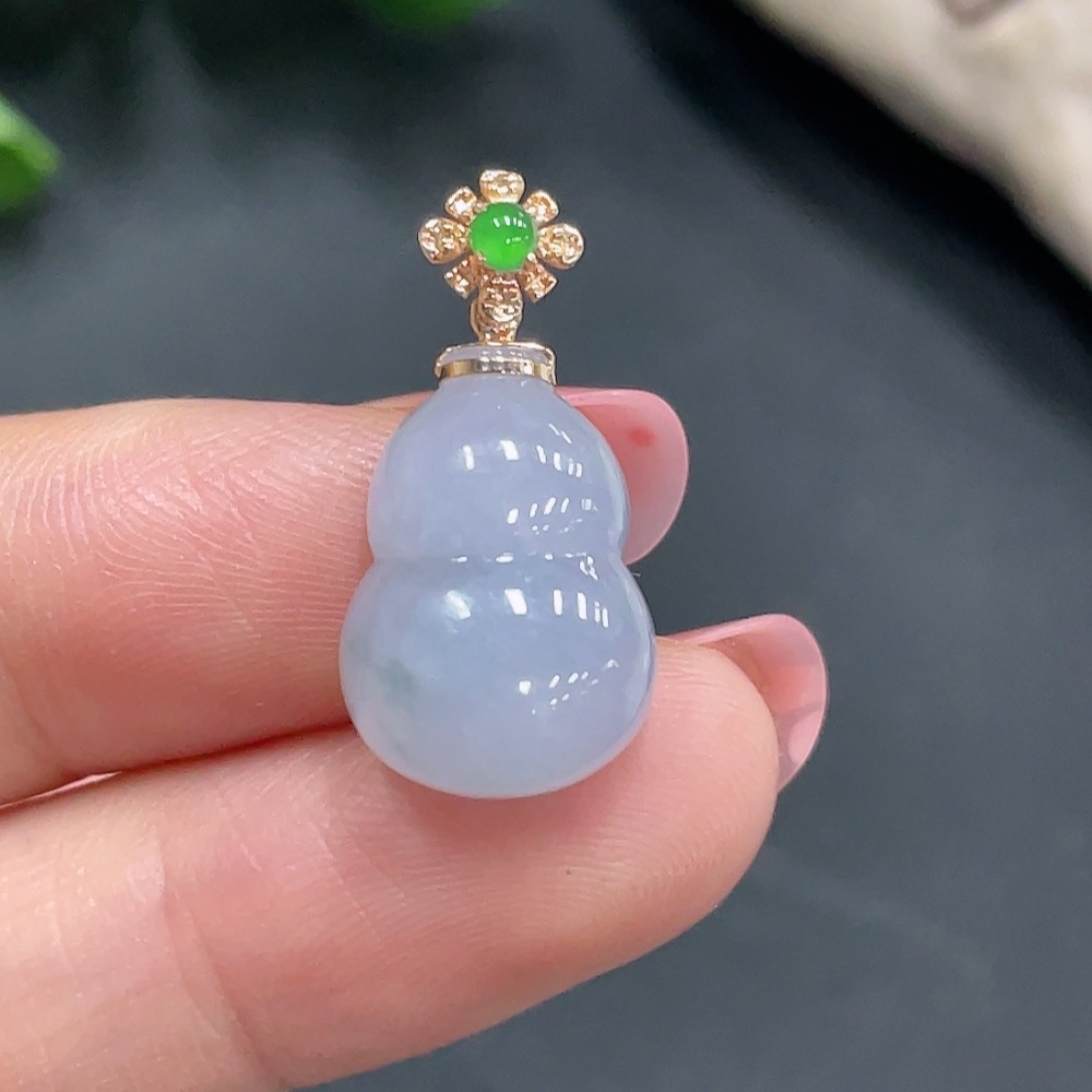 Jadeite Gourd Pendant with 18K Gold Clasp, Total Weight 2.668g