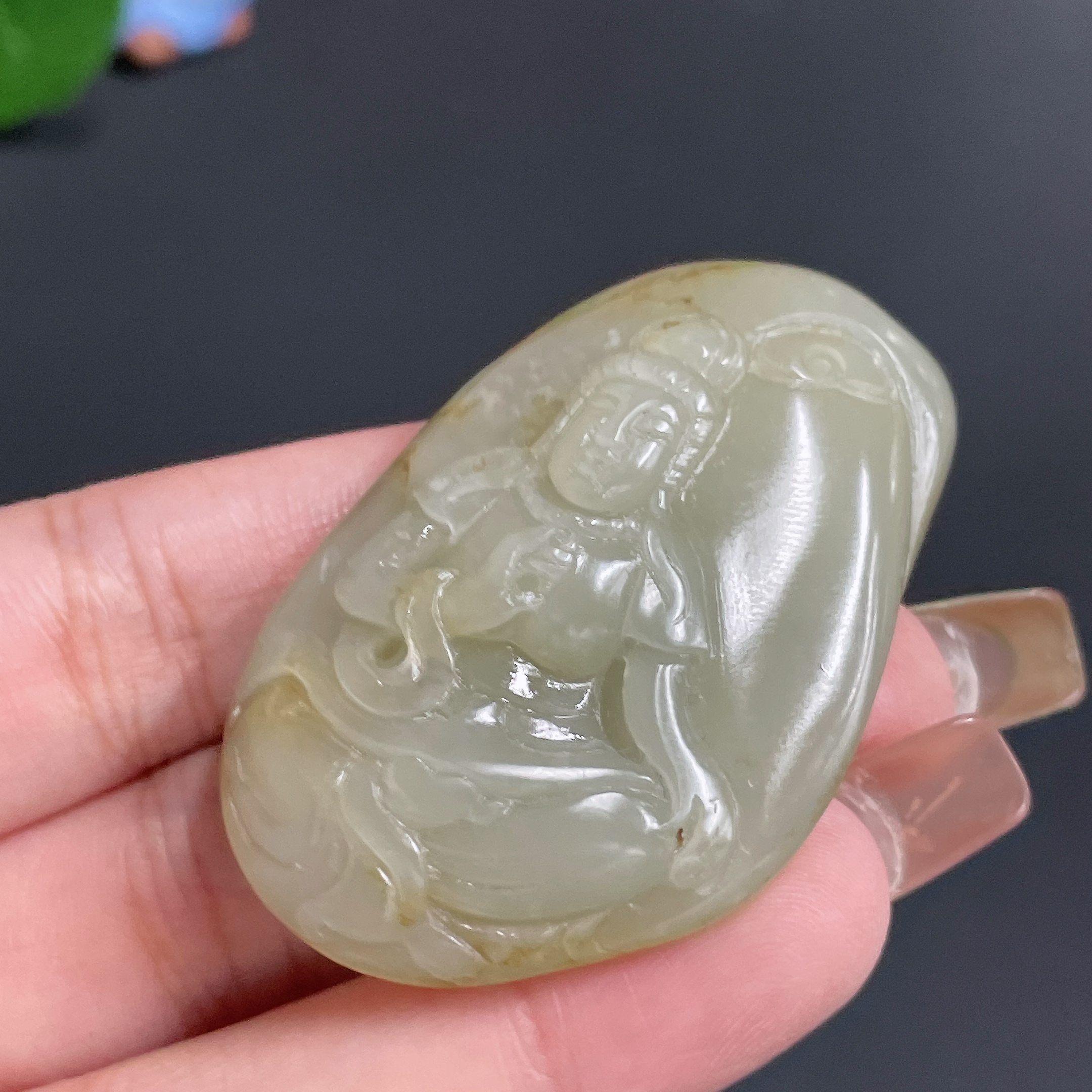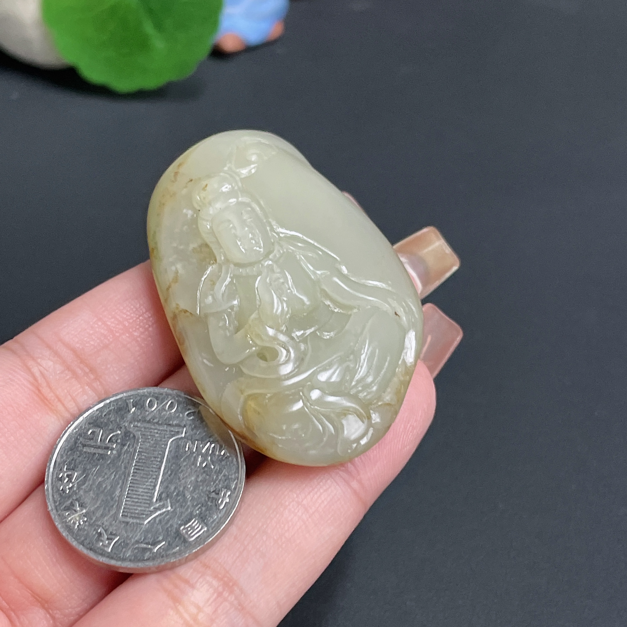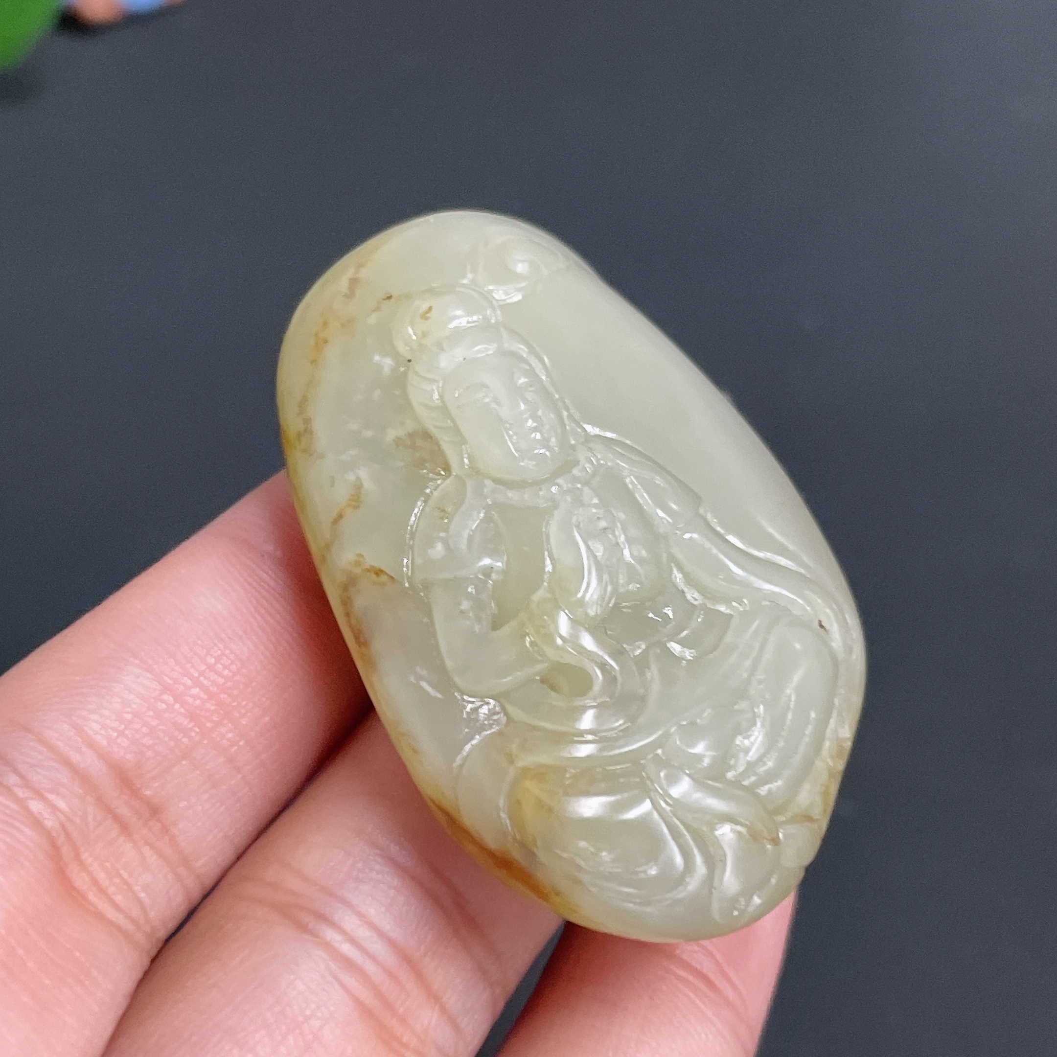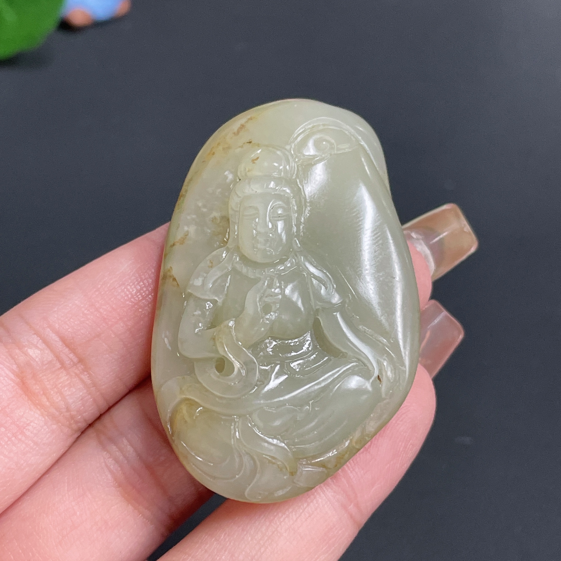 Hetian Jade Pendant Guanyin Total Weight Approx. 36.37g Undetermined Skin Color Origin