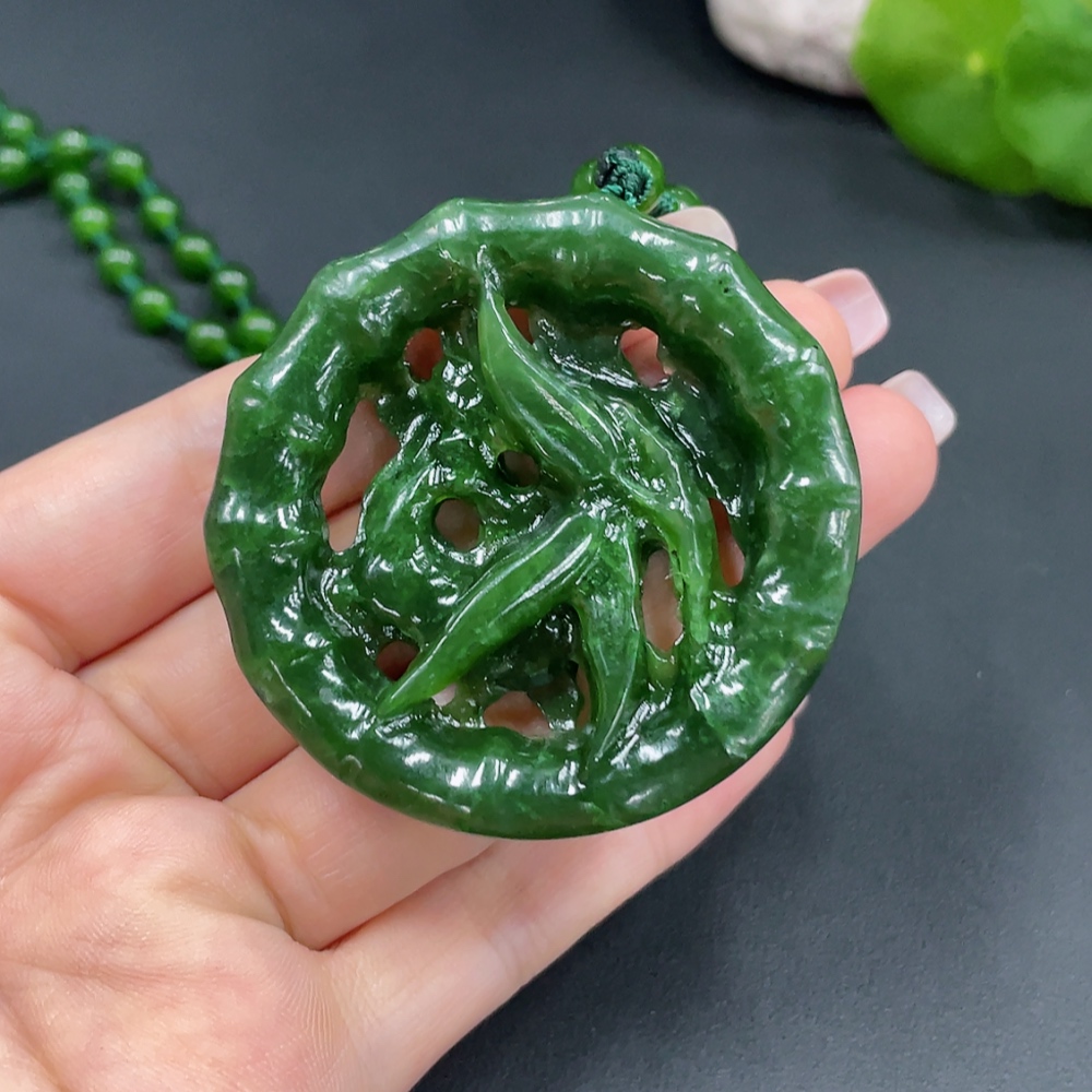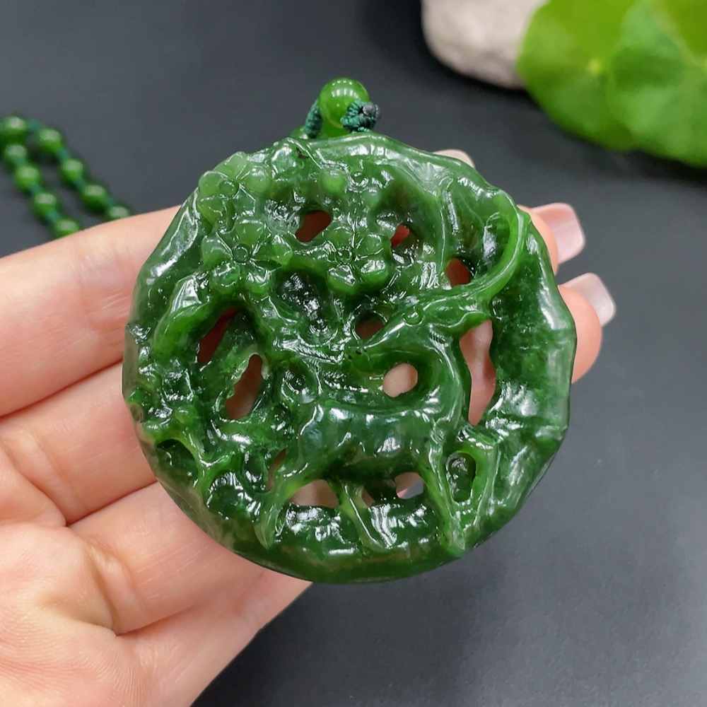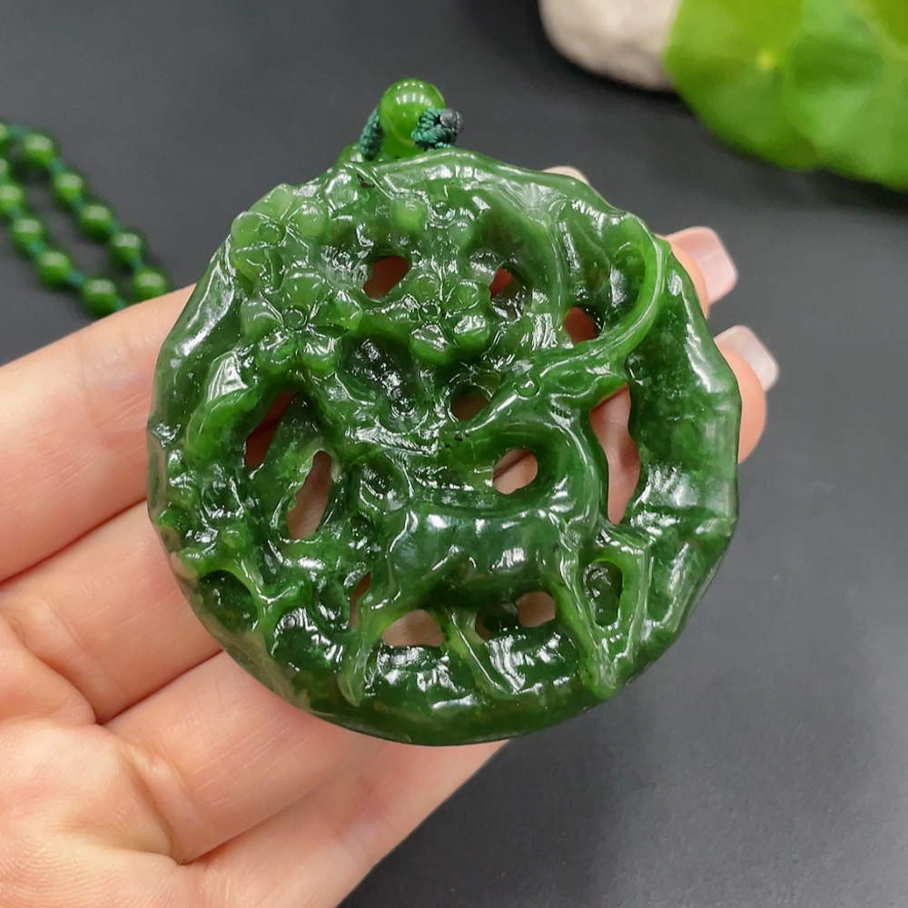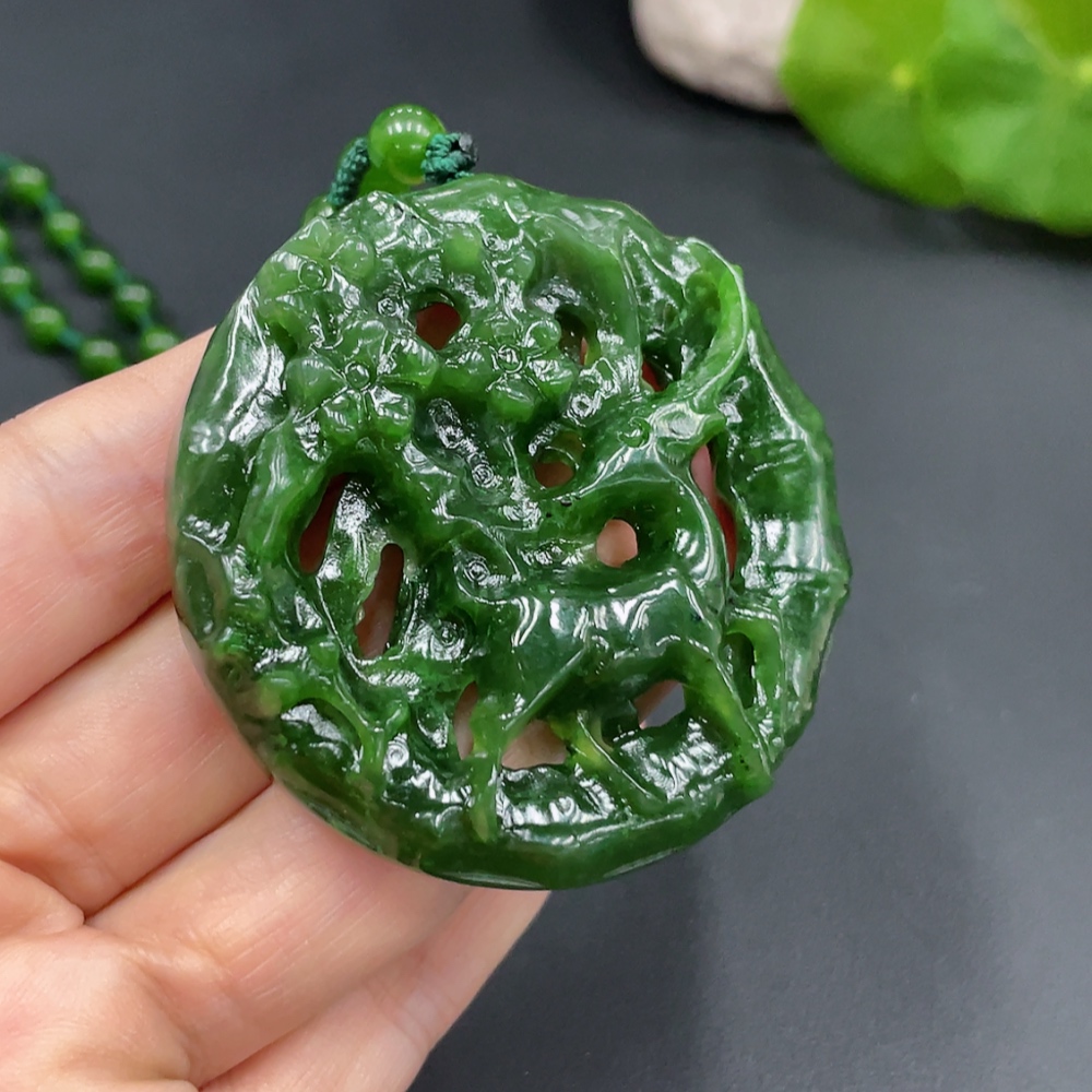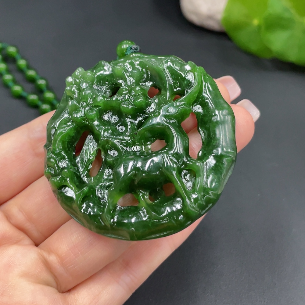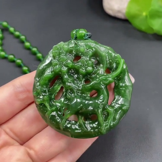 Hetian Jade Pendant Deer Plate Total Weight Approx. (Including Chain, Chain Not Hetian Jade) 63.1g