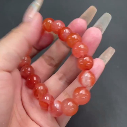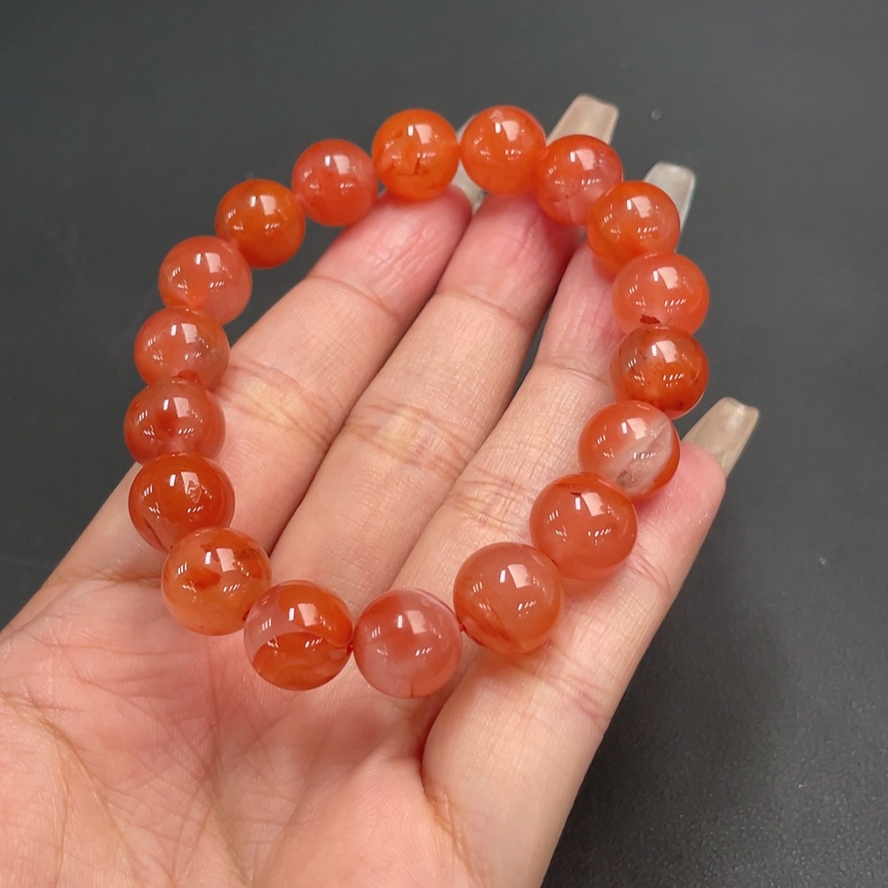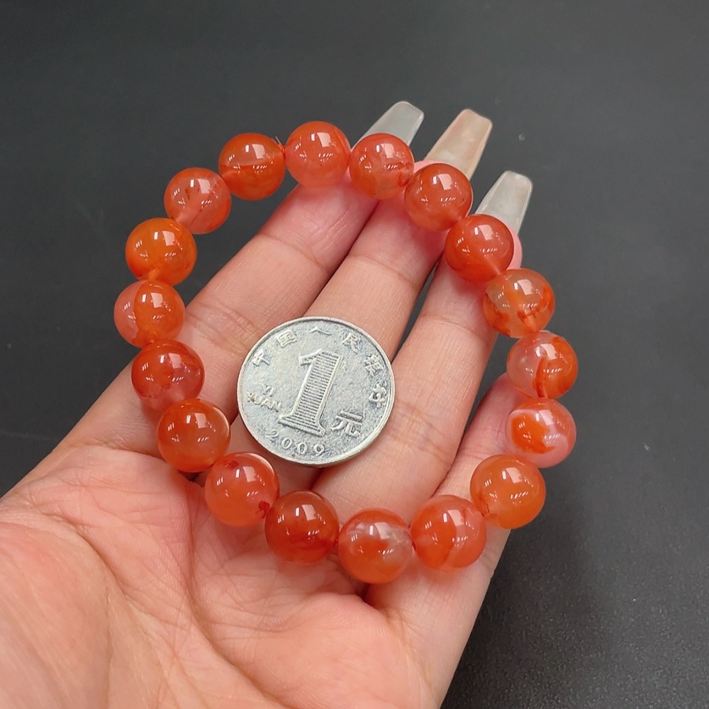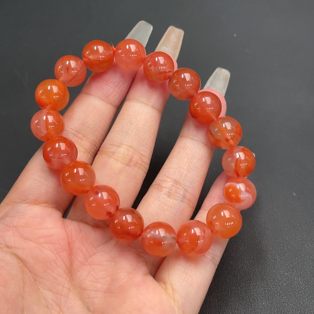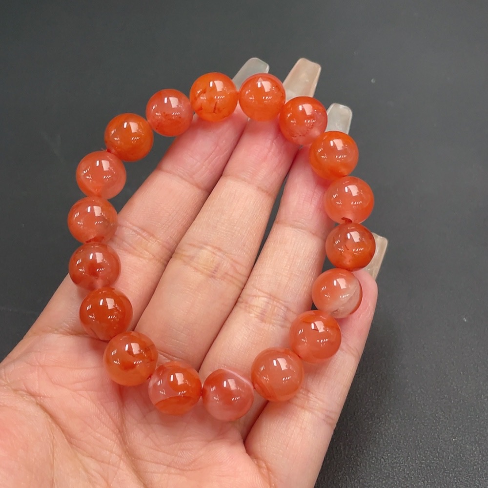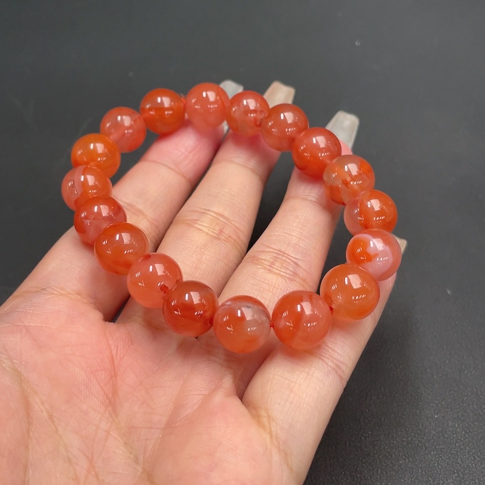 South Red Agate Bracelet, approx. 11.2mm, total weight approx. 34.71g, visible organic matter