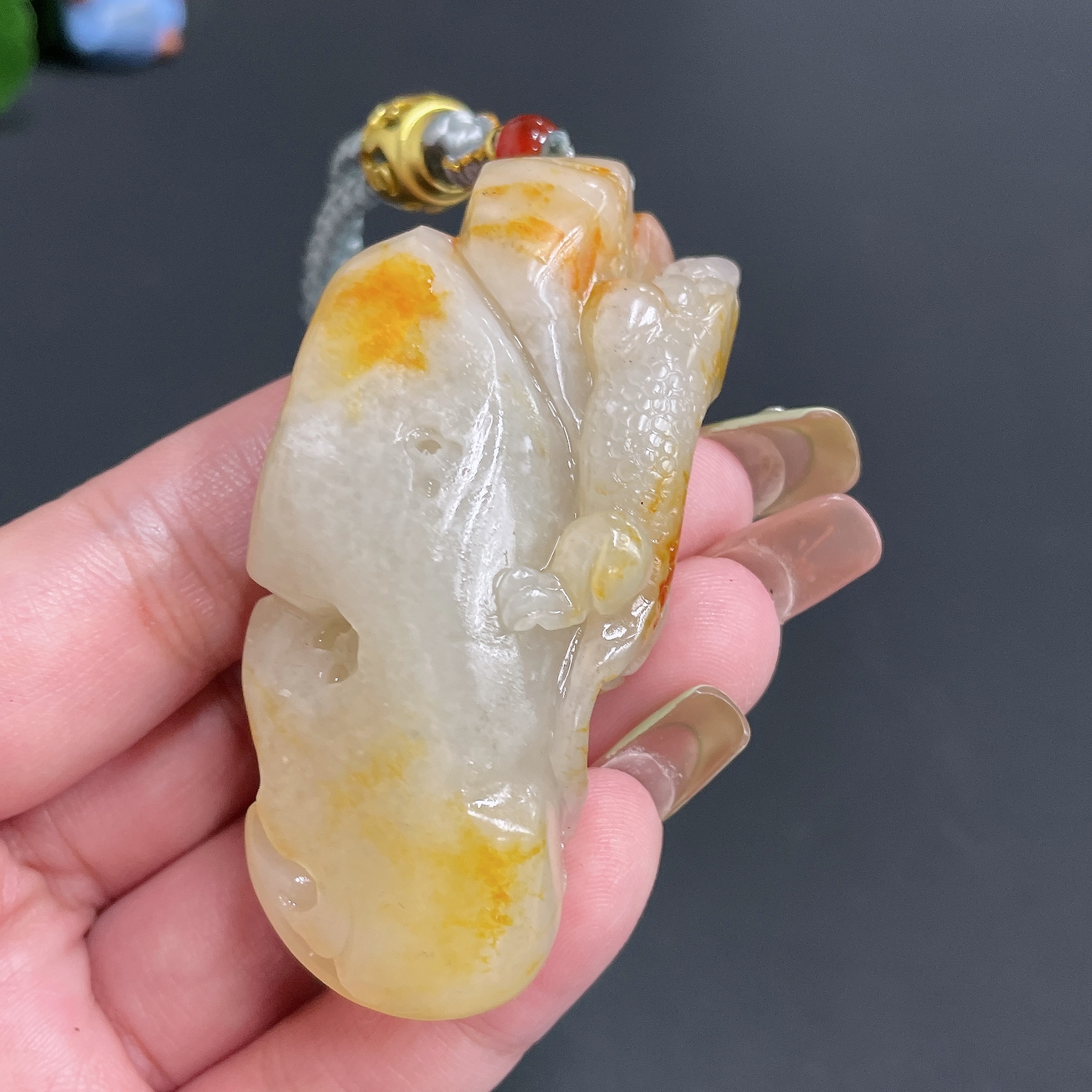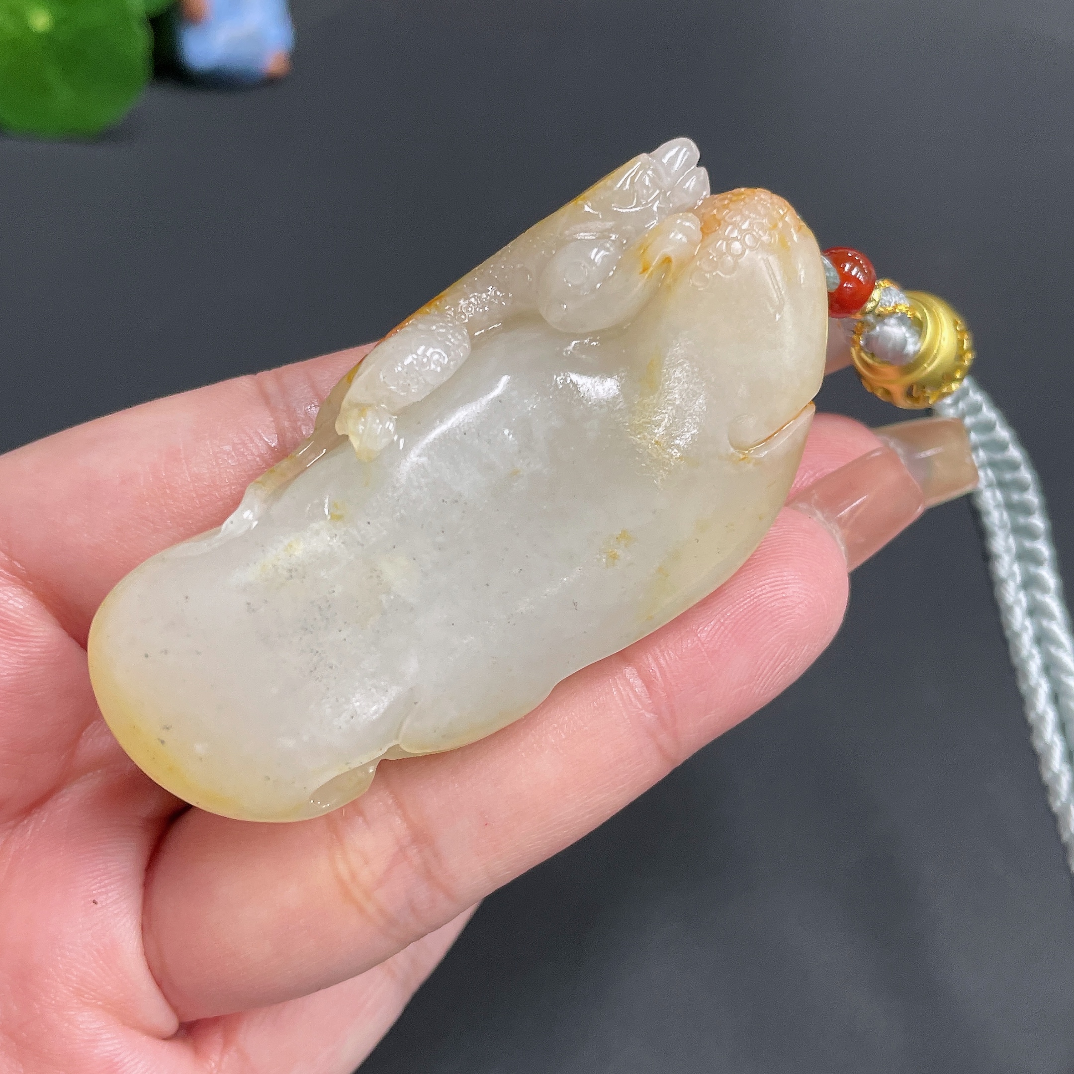 Hetian Jade Handheld Carving Lizard with Cord Total Weight 69.11g Undetermined Skin Color Origin