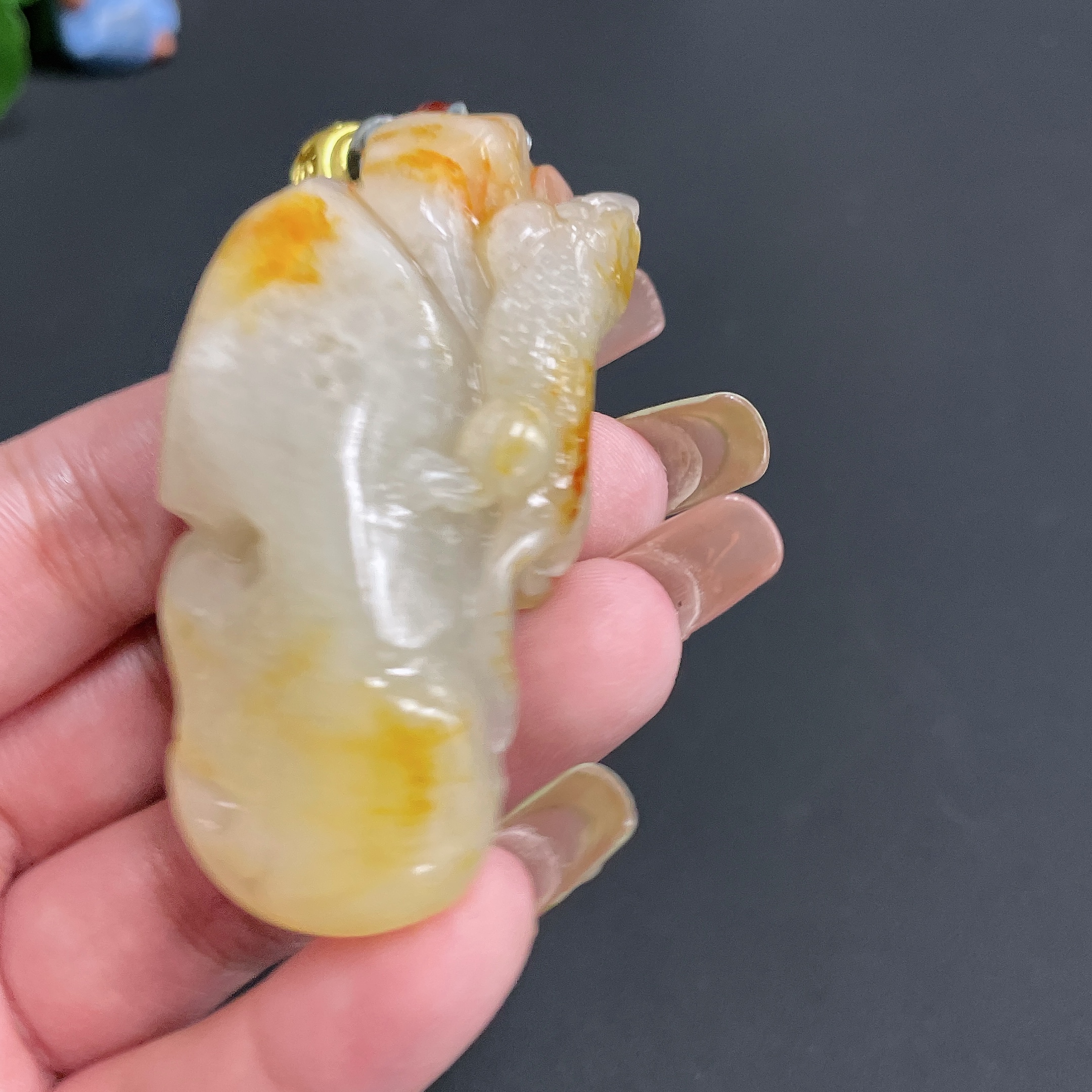 Trezaar - Hetian Jade Handheld Carving Lizard with Cord Total Weight 69.11g Undetermined Skin Color Origin