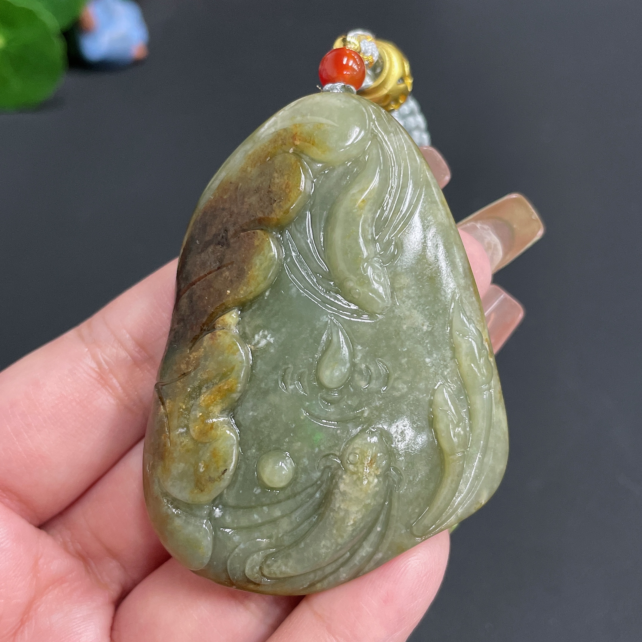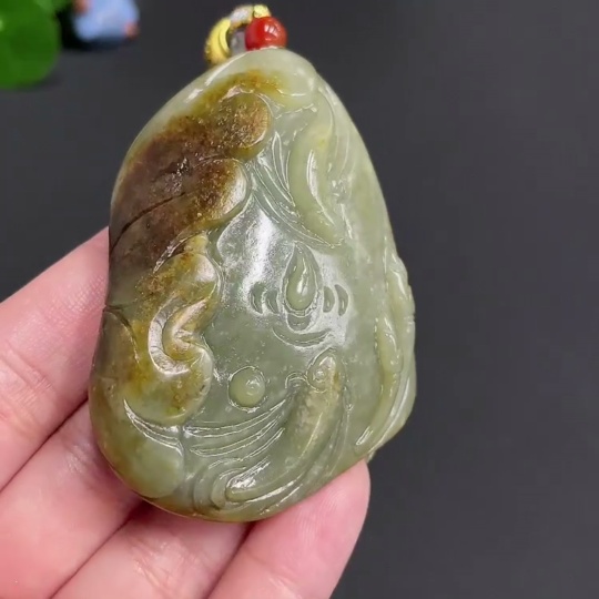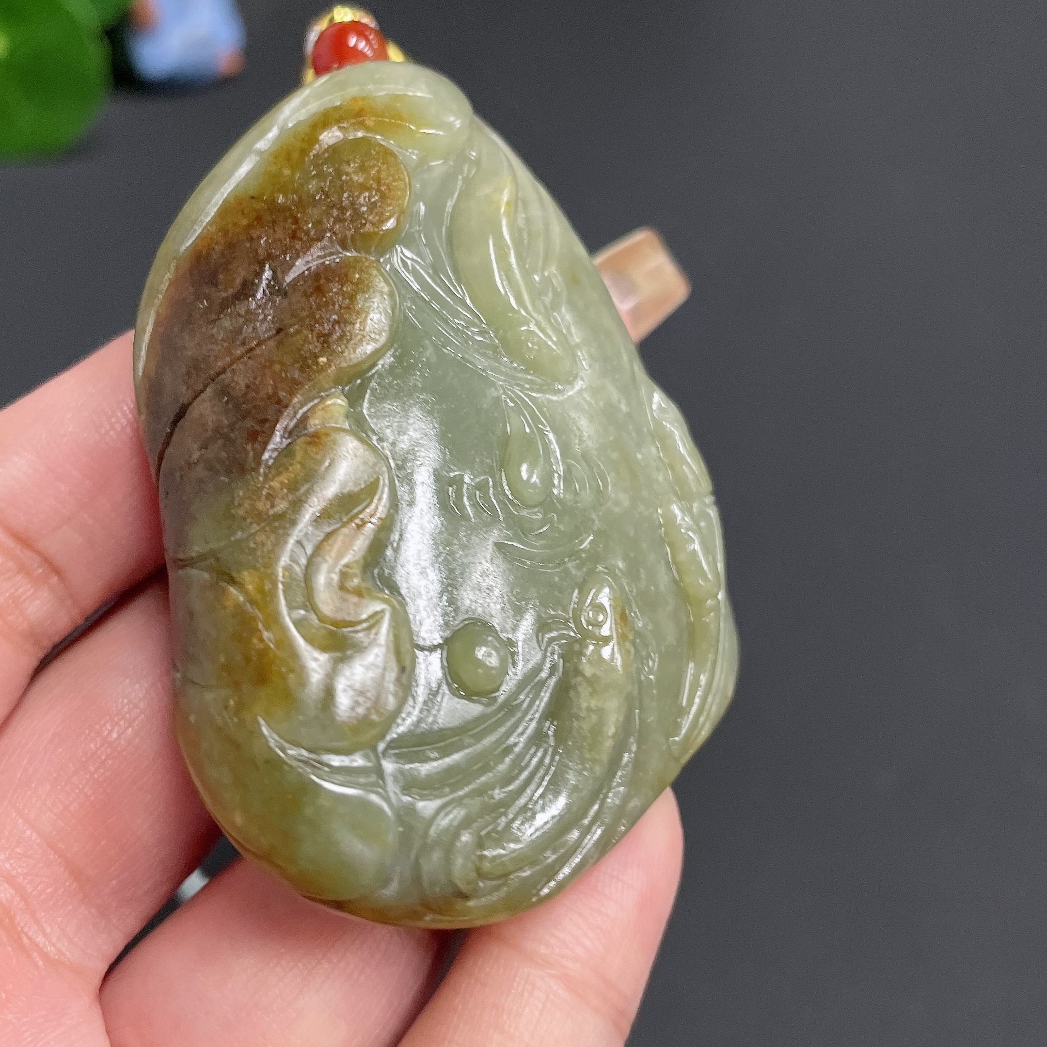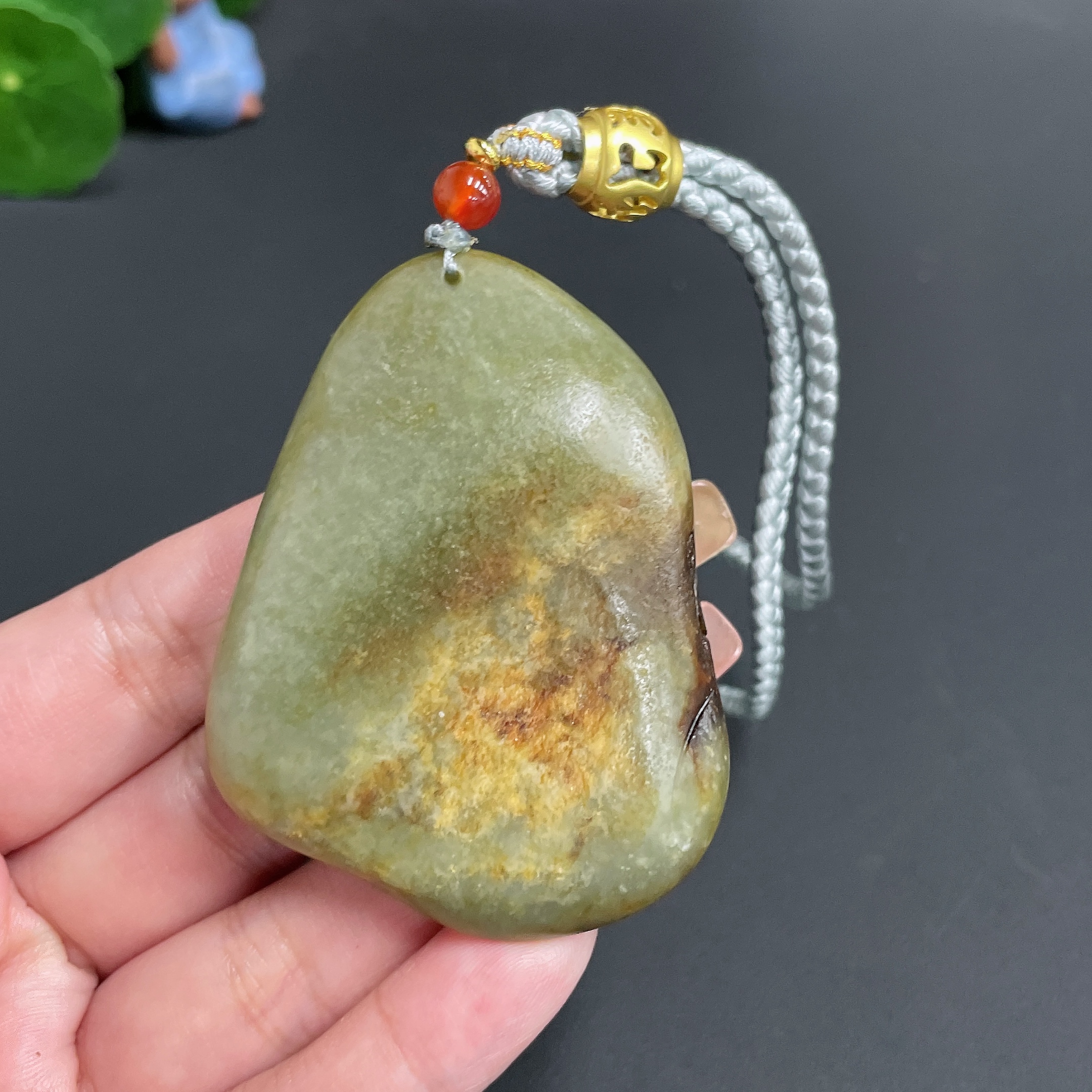 Trezaar - Hetian Jade Handheld Piece 'Abundance Year After Year' with Cord, Total Weight 84.88g, Undetermined Skin Color Origin
