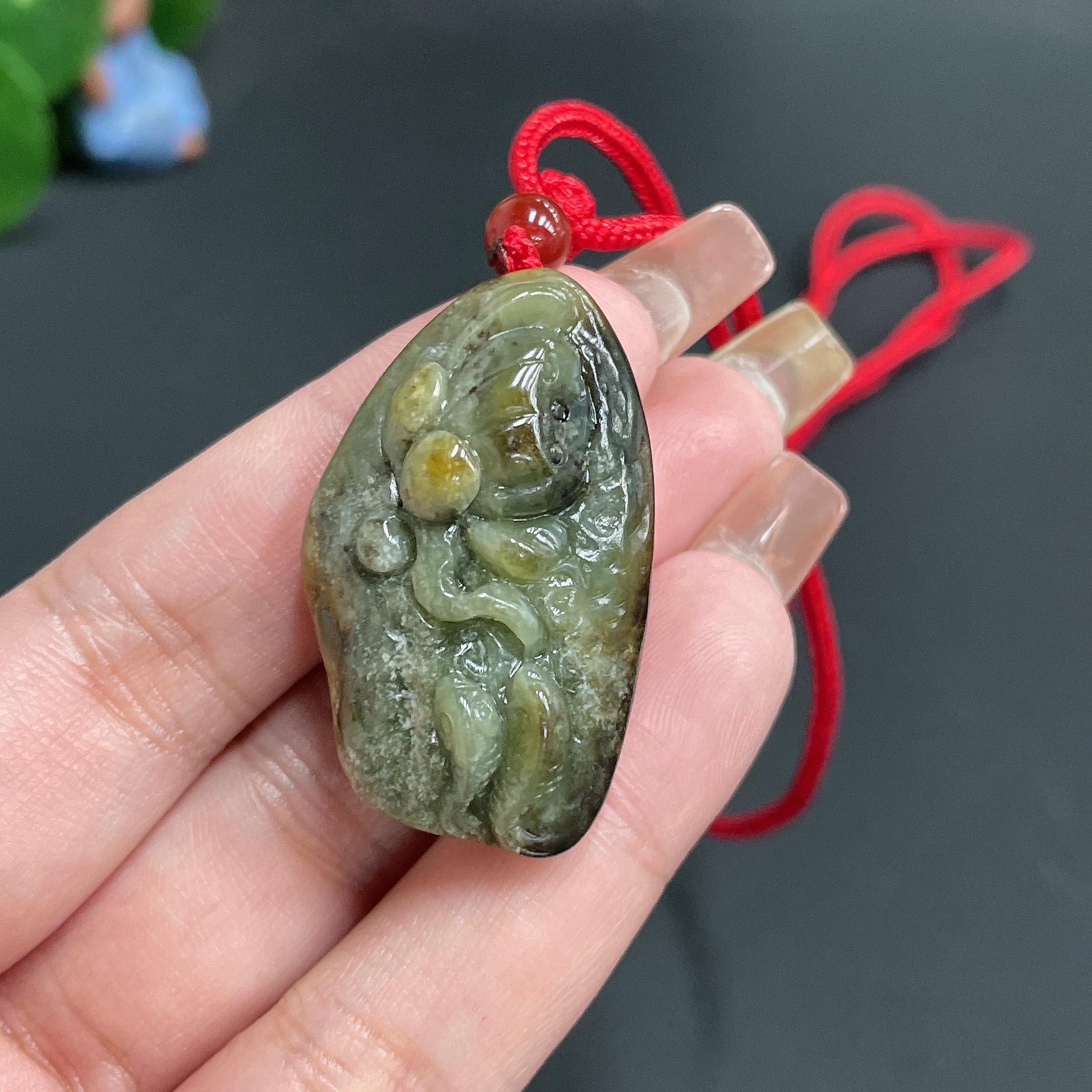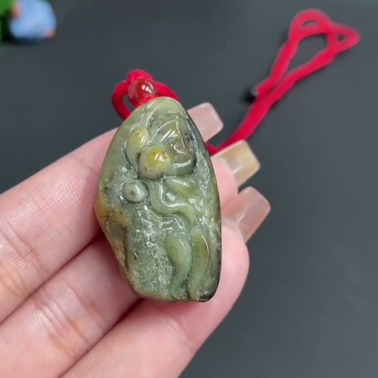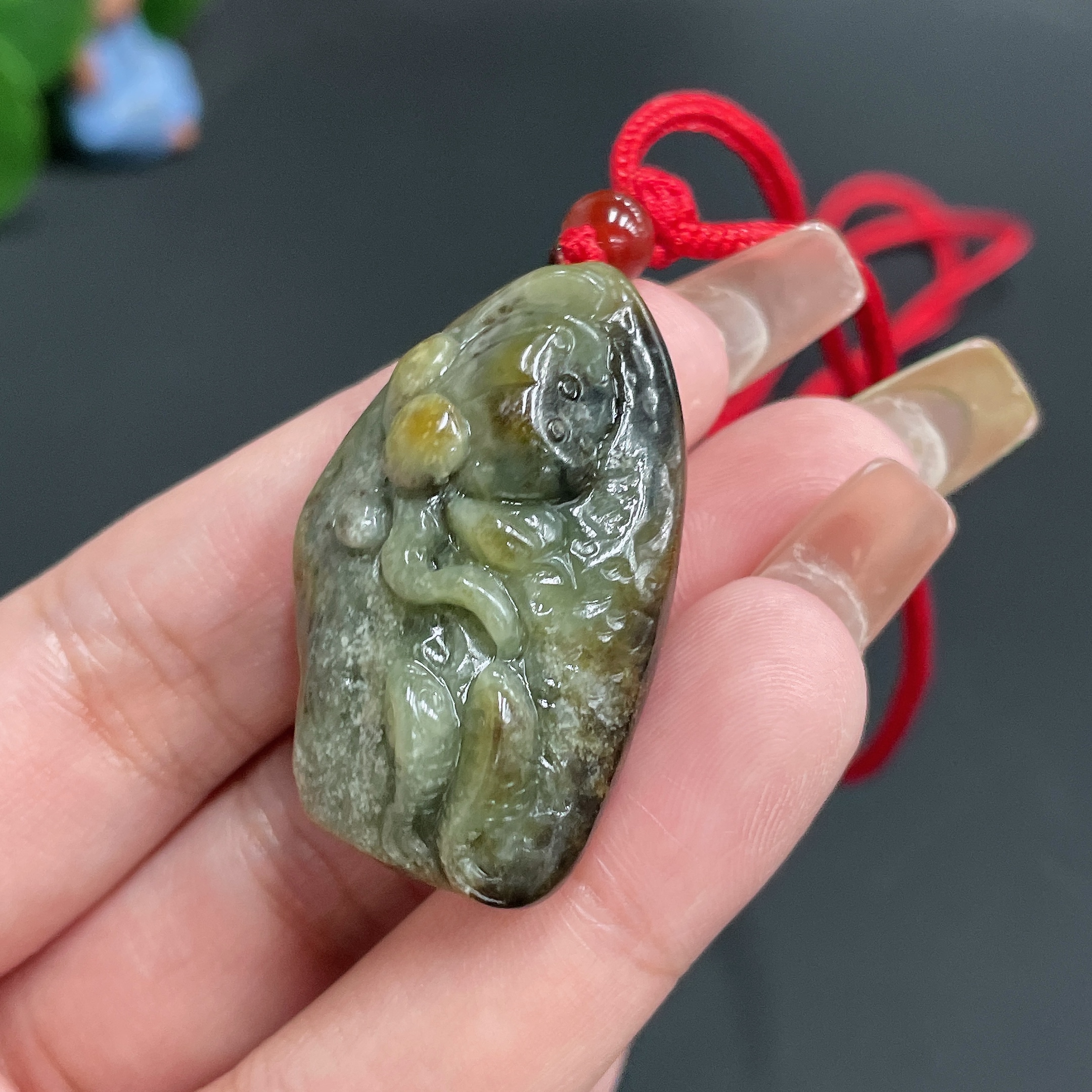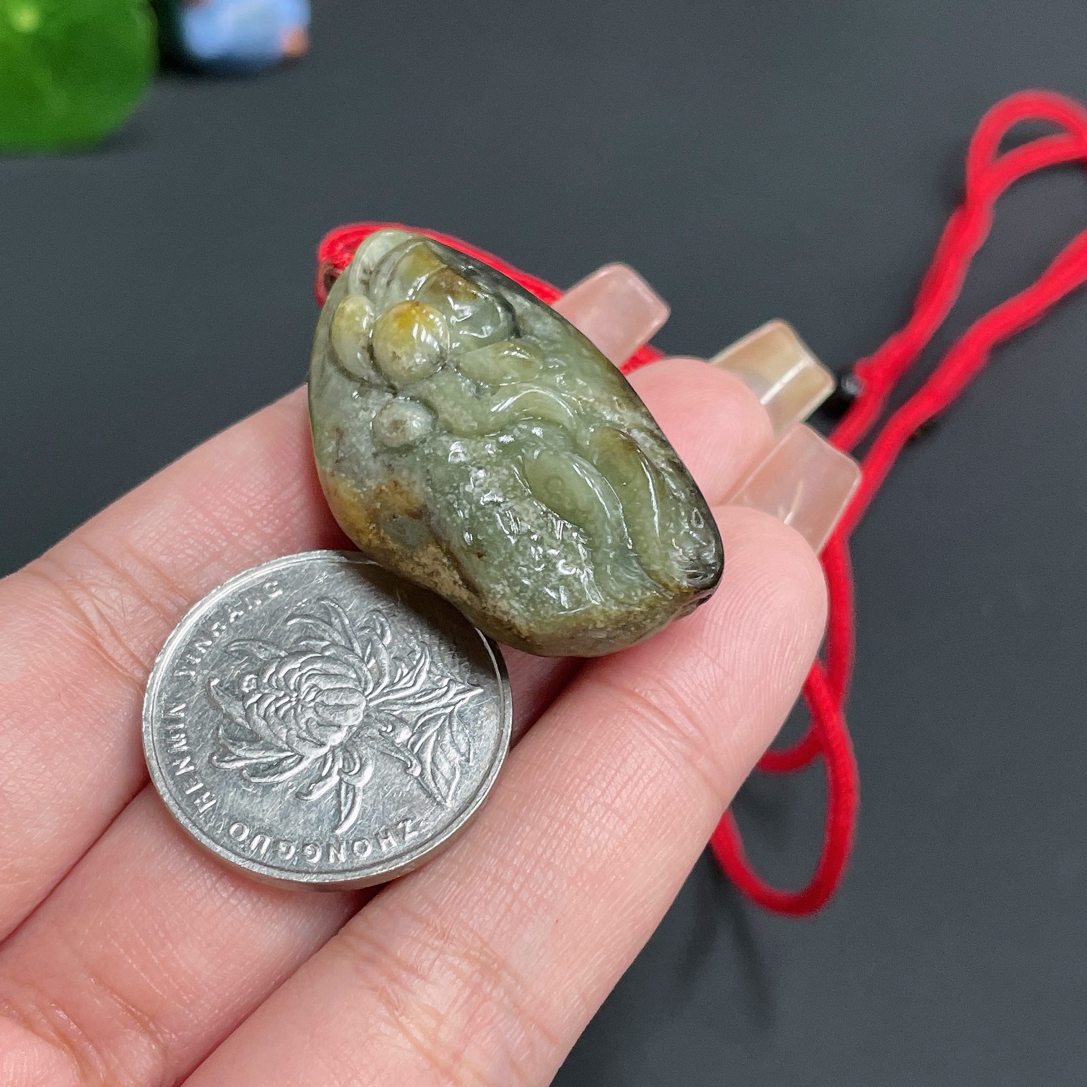 Hetian Jade Pendant 'Abundance Year after Year' with Cord Total Weight 24.05g Undetermined Skin Color Origin