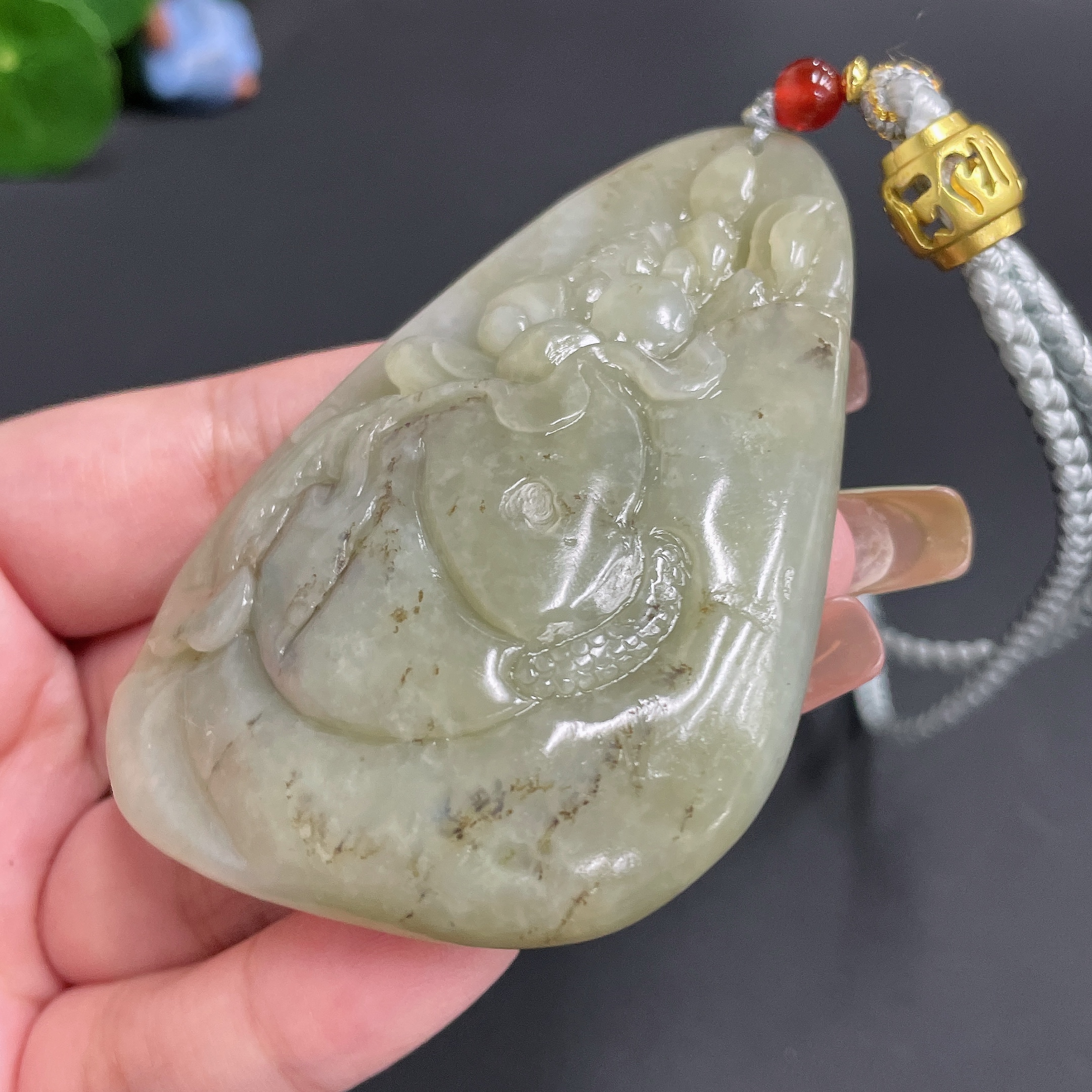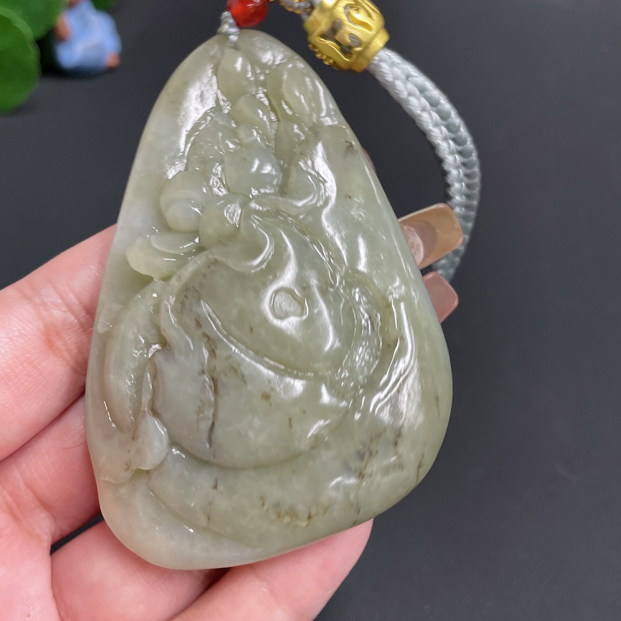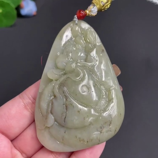 Hetian Jade Handheld Piece 'Abundance Year after Year' with Cord, Total Weight 91.36g