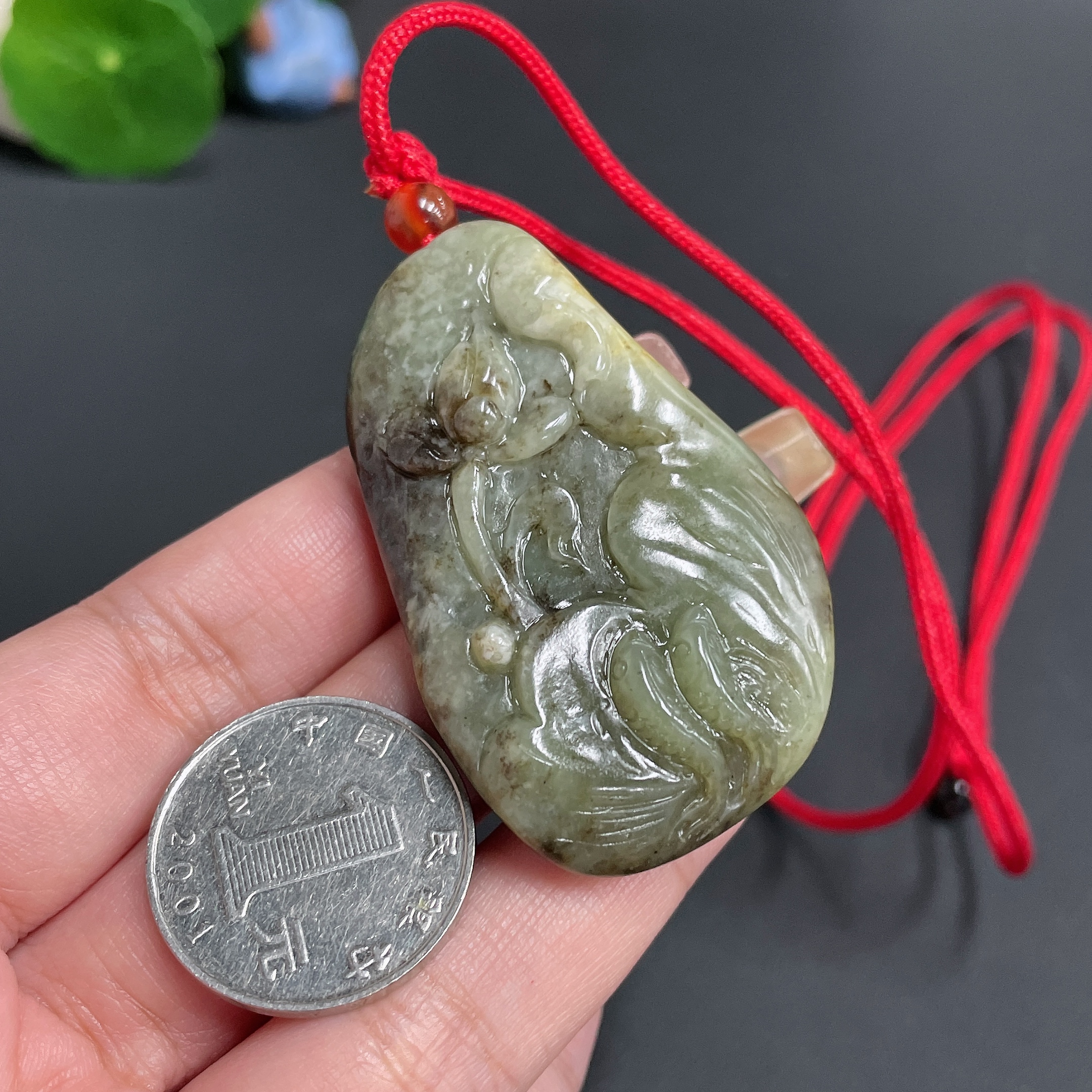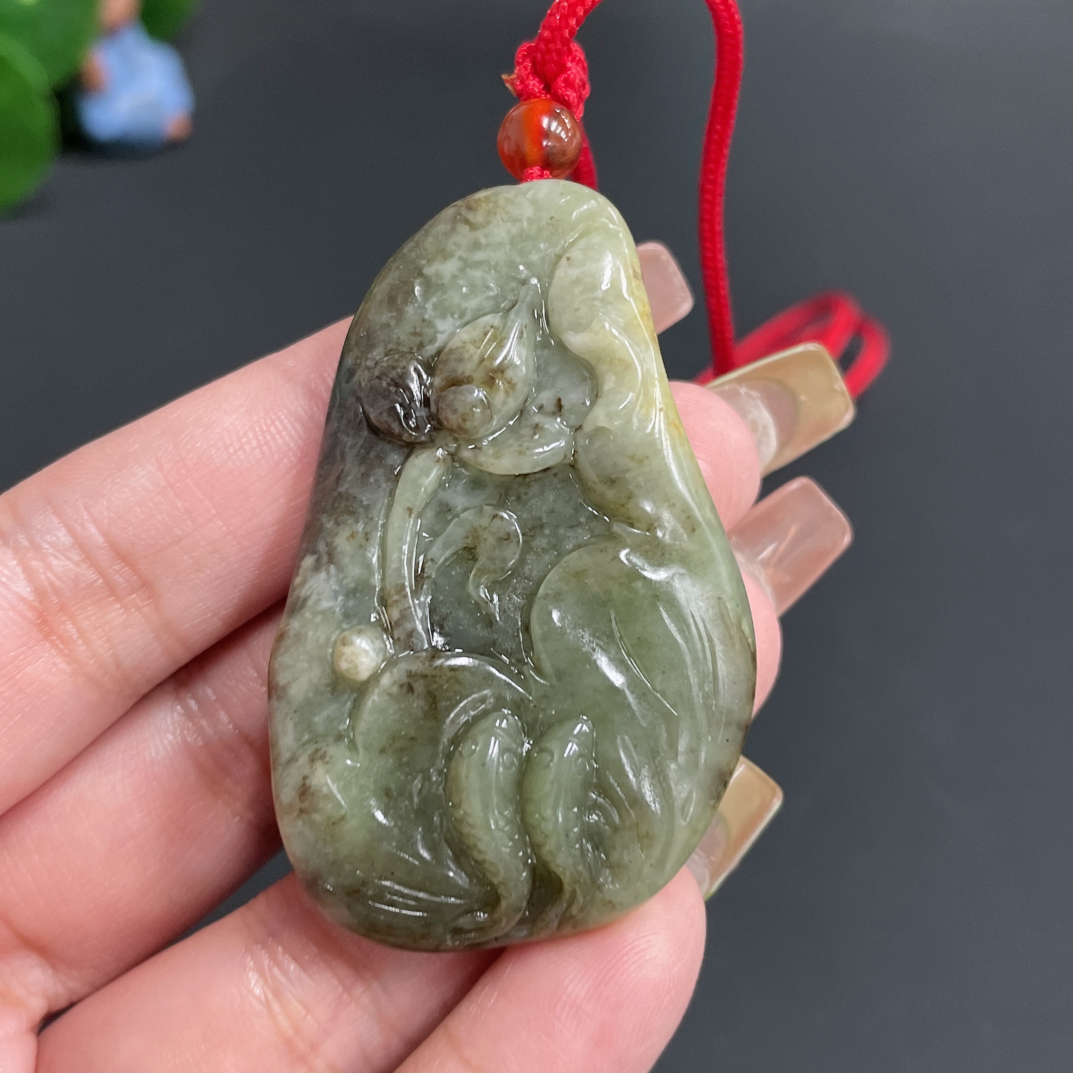 Hetian Jade Pendant Abundance Year After Year with rope 46.22g