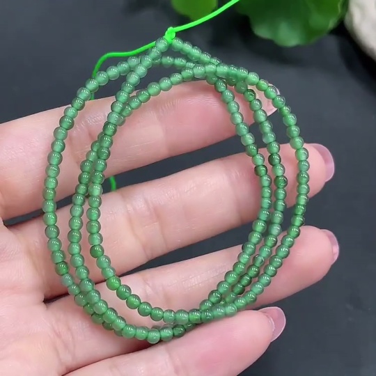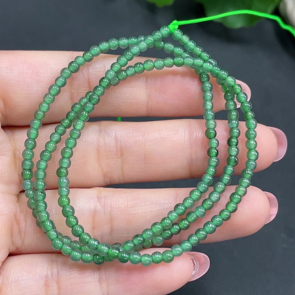 Jadeite Bead Necklace Approximately 3mm in Diameter Total Weight 7.102g