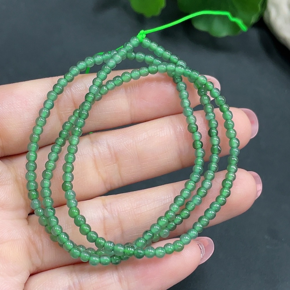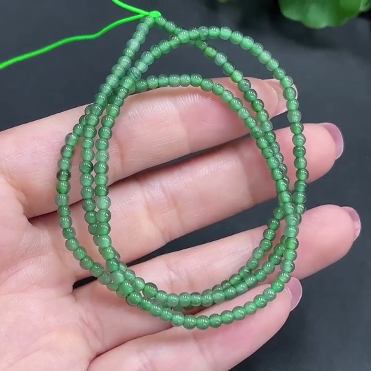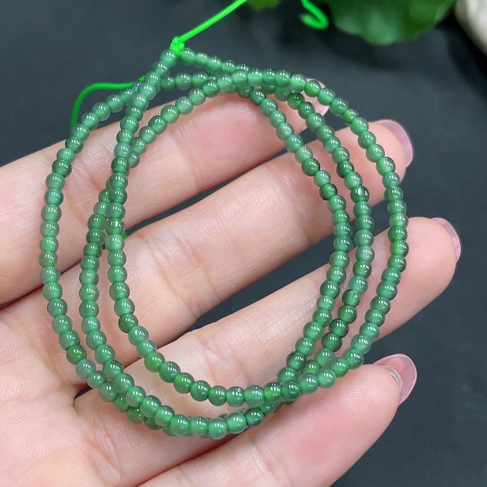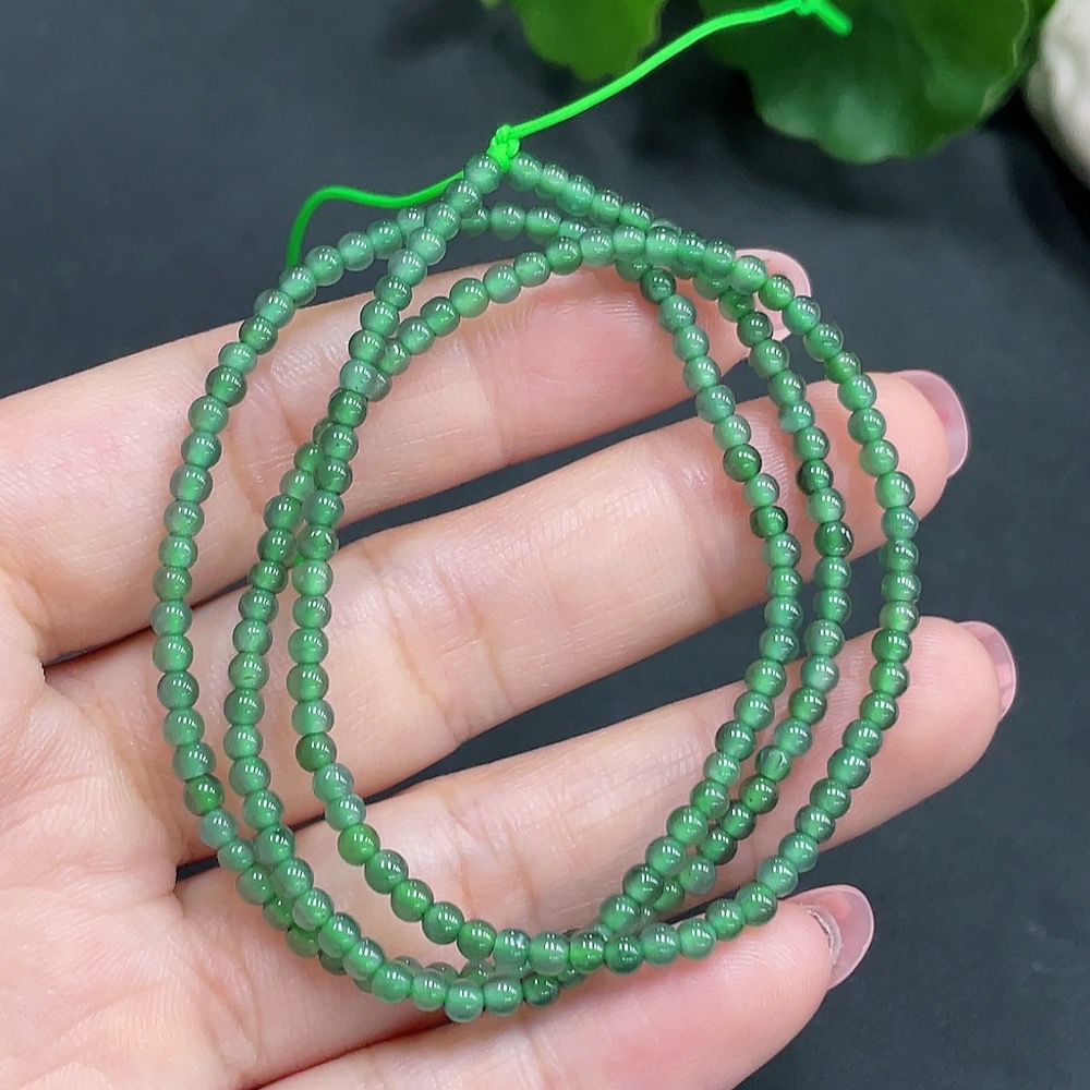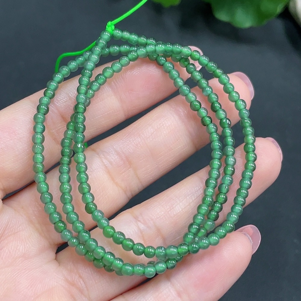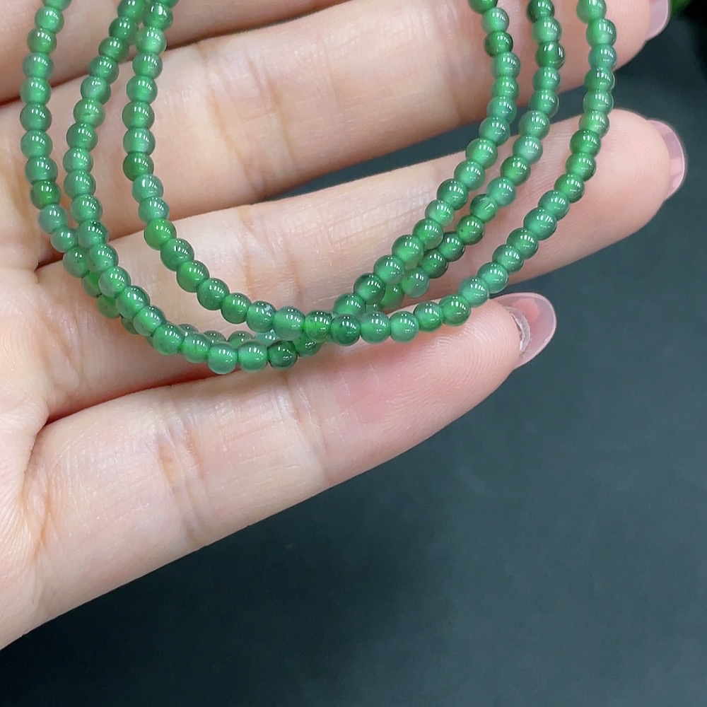 Jadeite Bead Necklace Approximately 3mm in Diameter Total Weight 7.140g