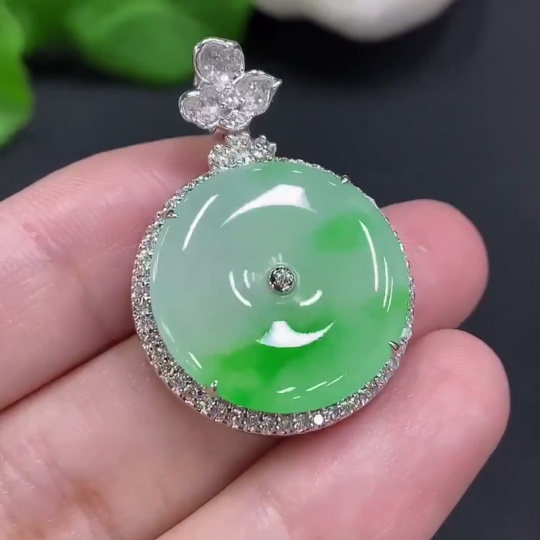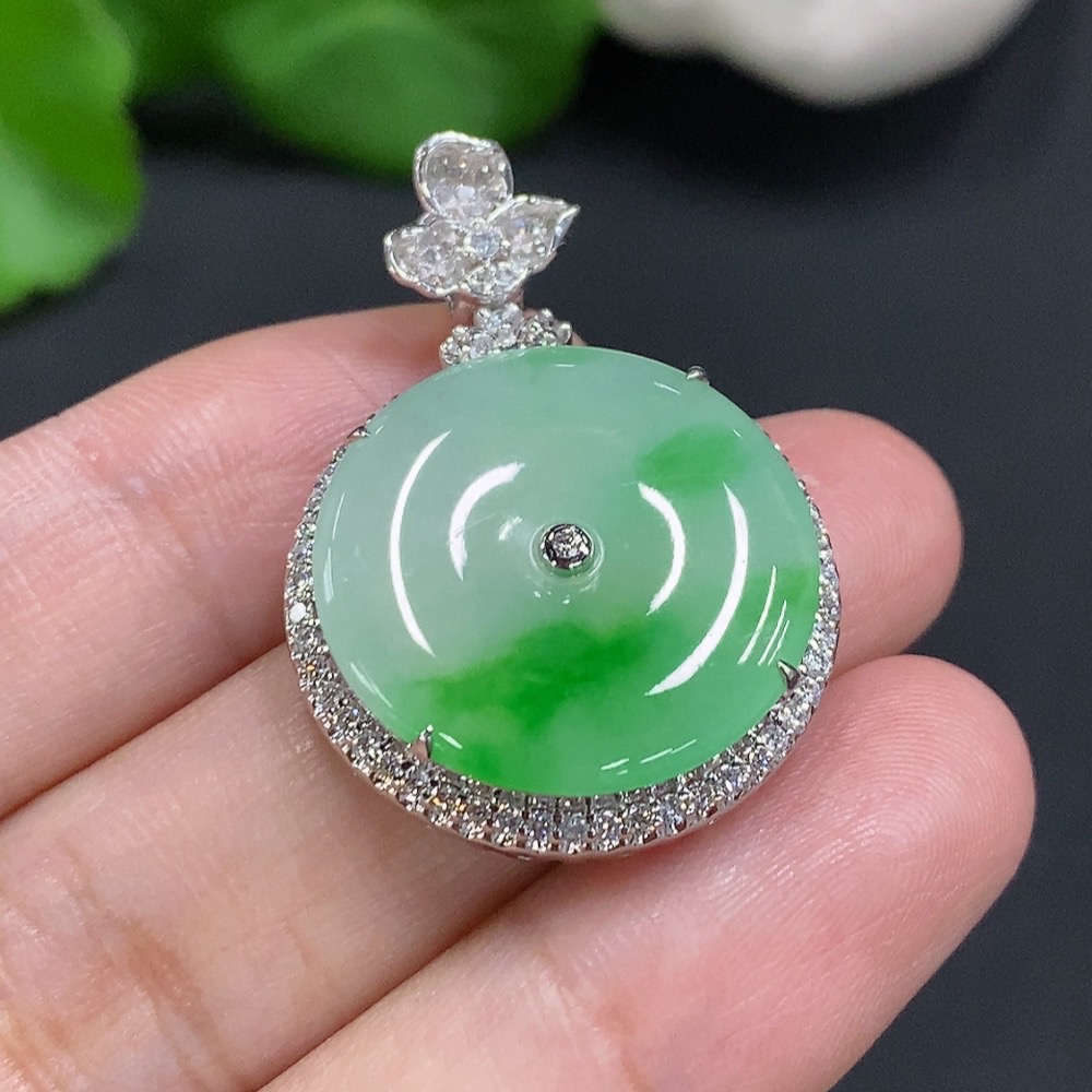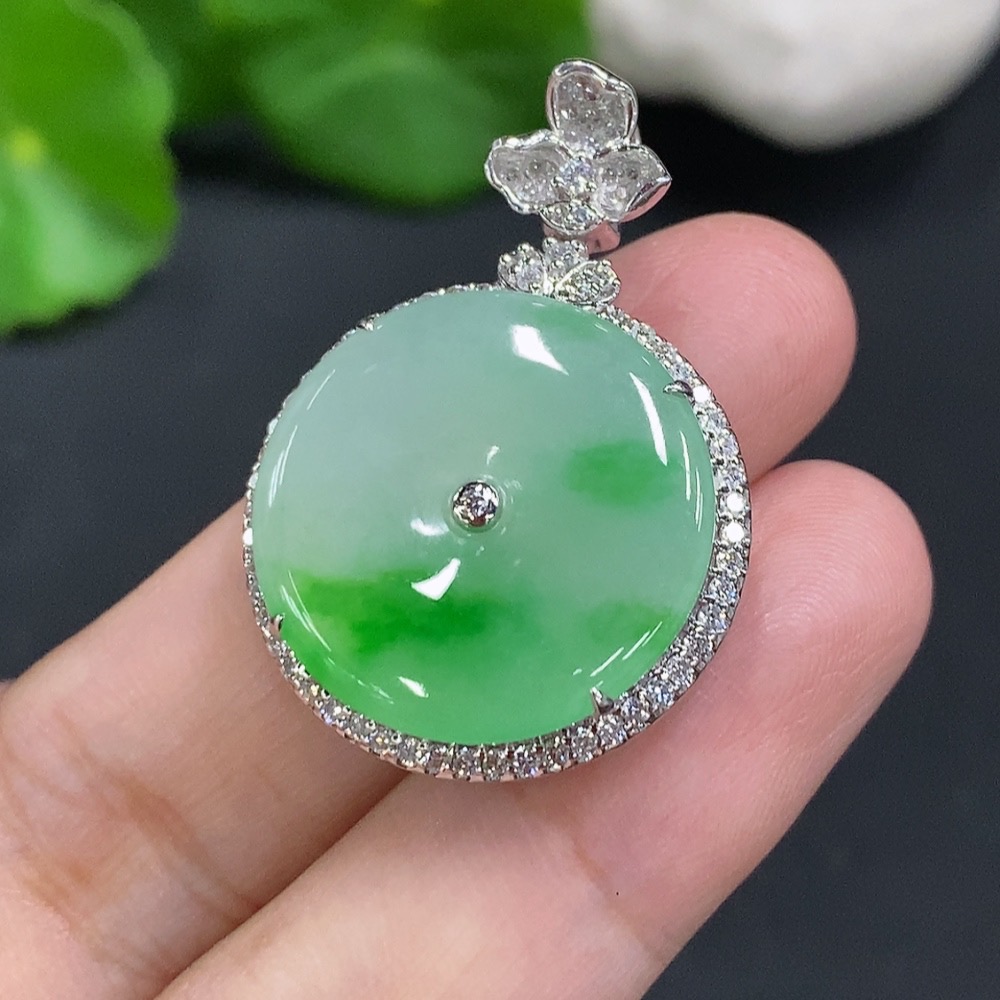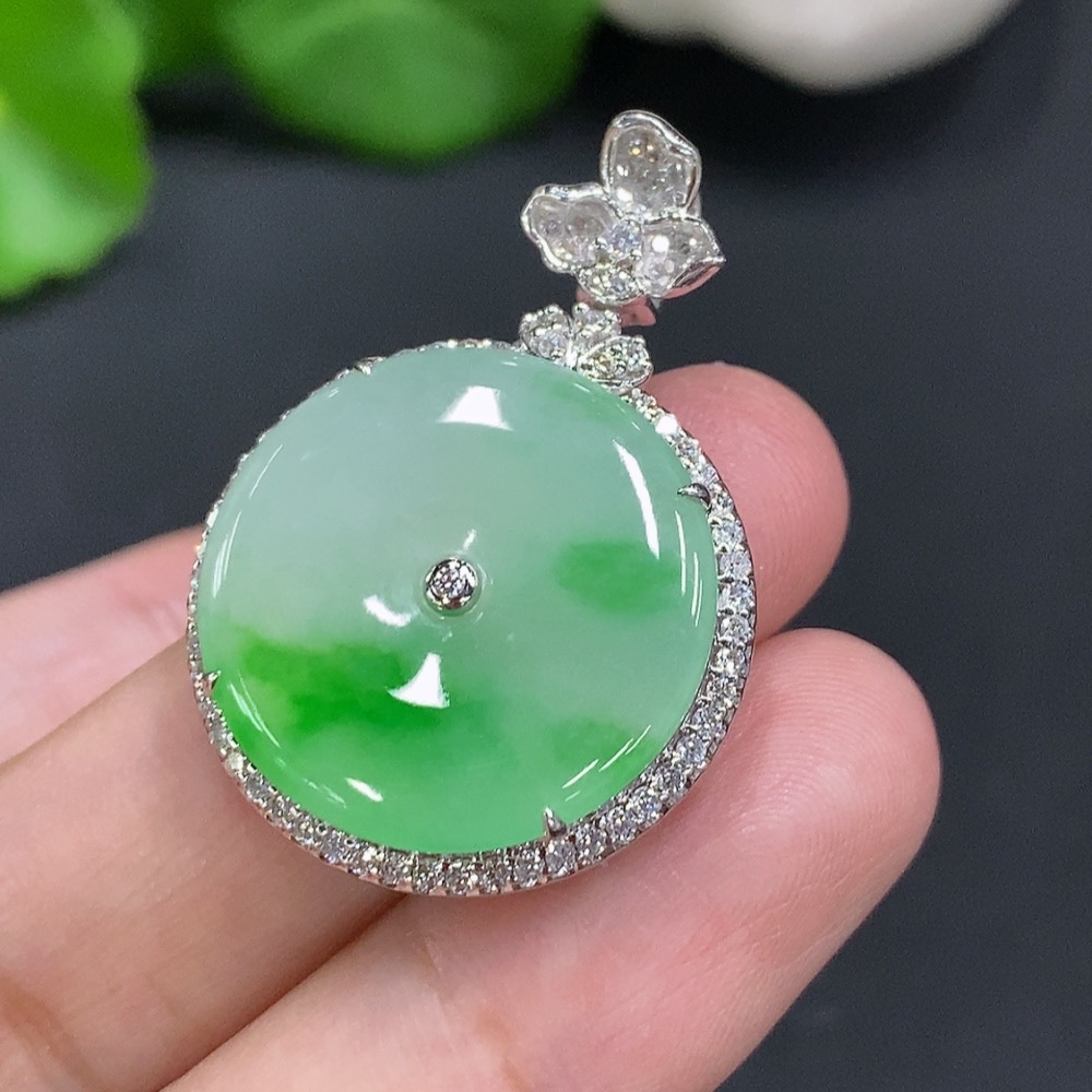 Jadeite Safety Buckle Inlaid Pendant 18K Gold Total Weight Approx. 8.4g