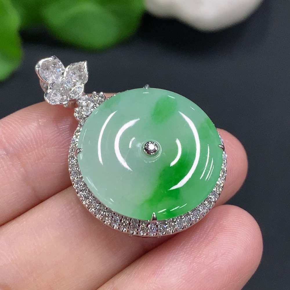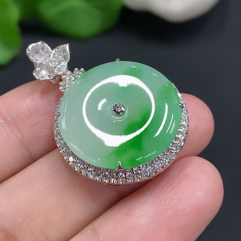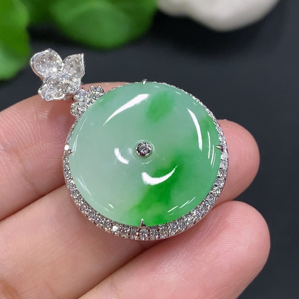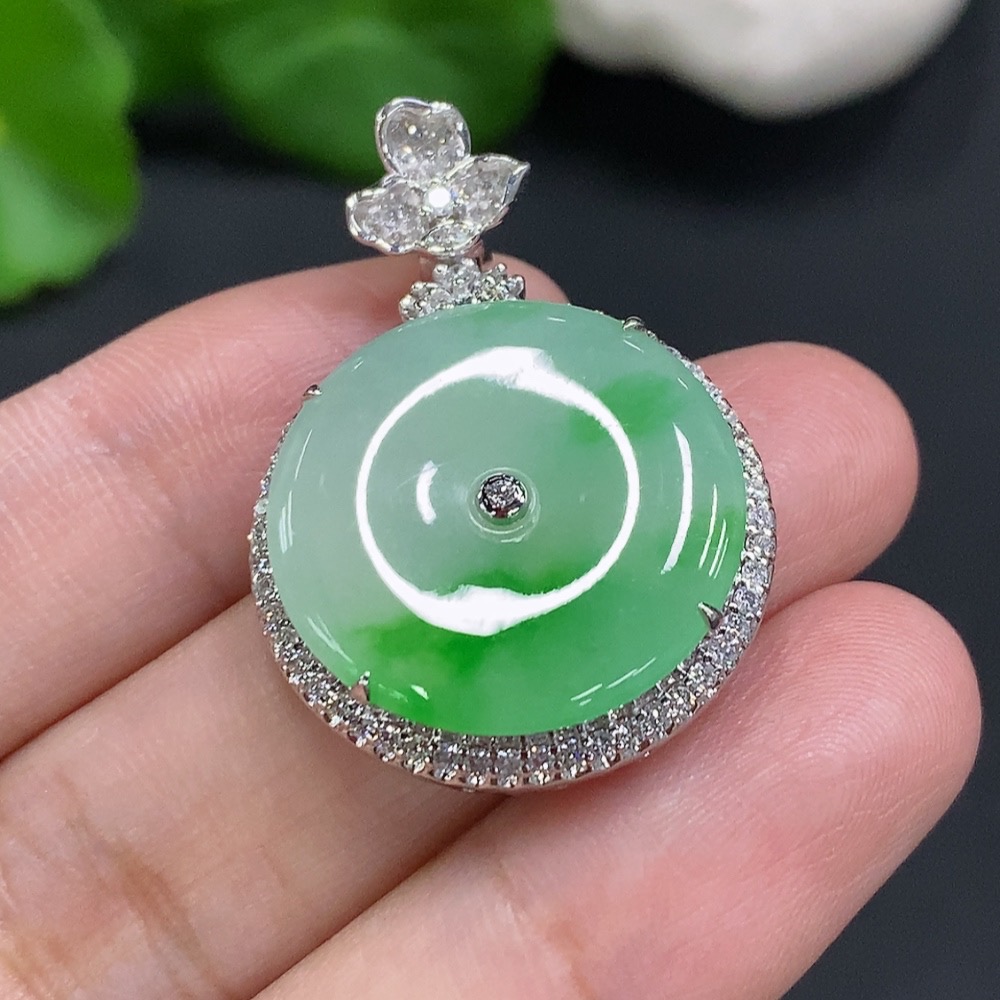 Jadeite Safety Buckle Inlaid Pendant 18K Gold Total Weight Approx. 8.4g