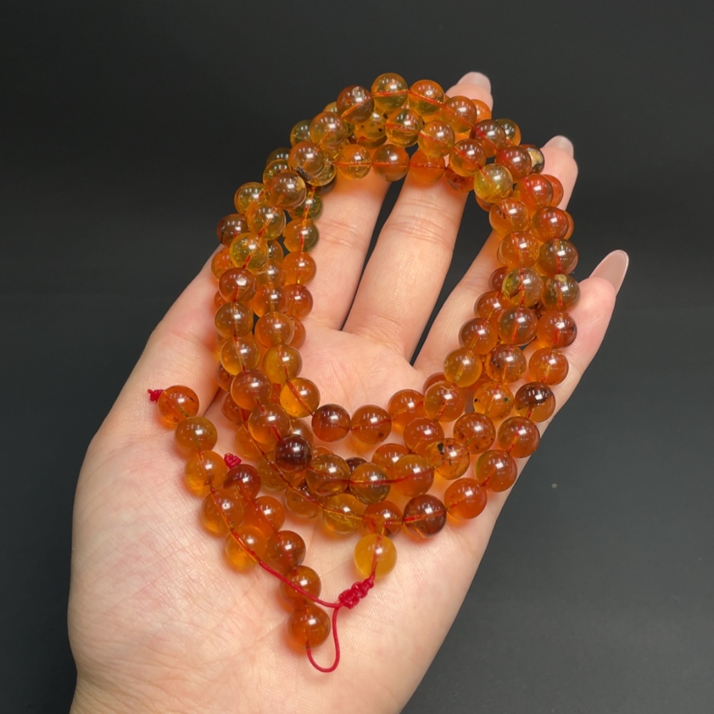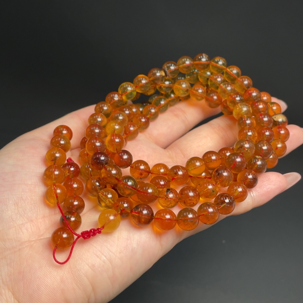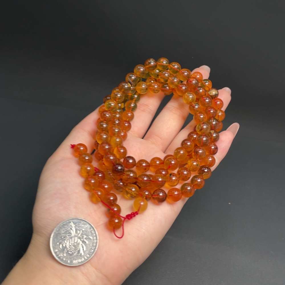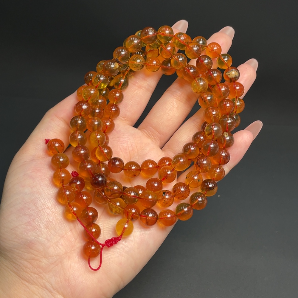 Amber Beeswax Bead Necklace, Total Weight Approx. 43.00g, Size About 8.4mm